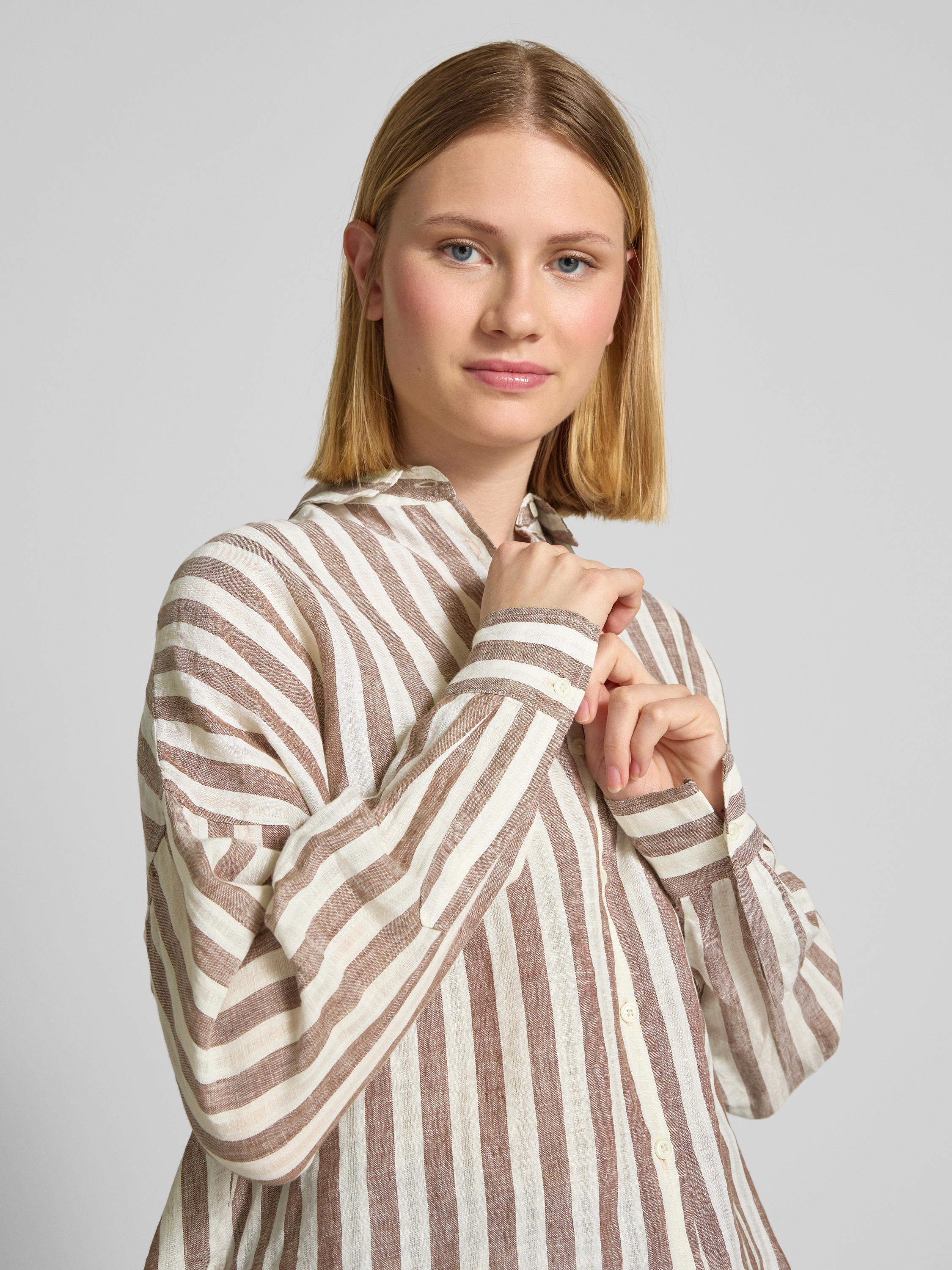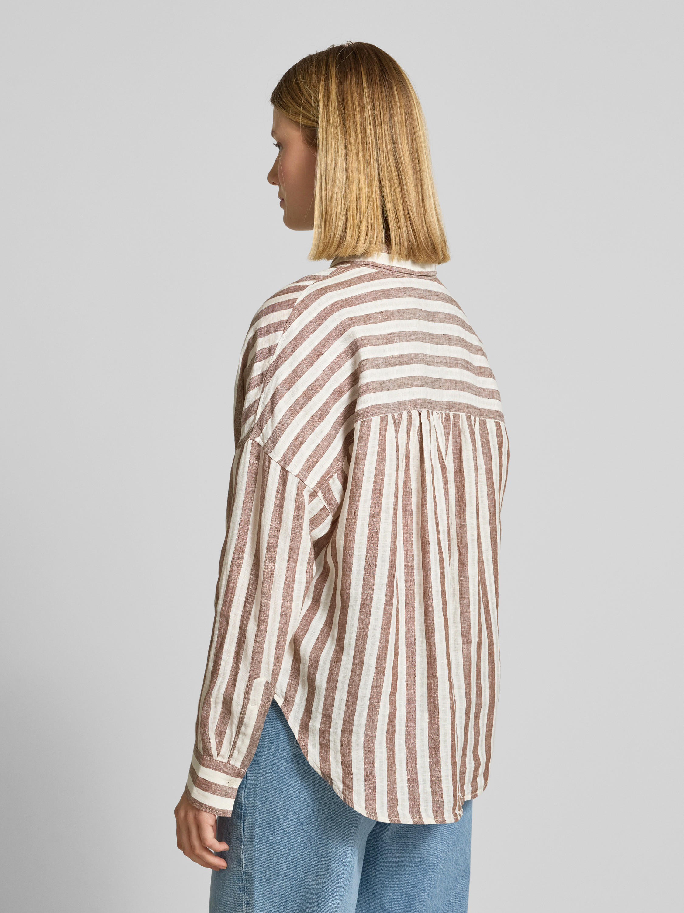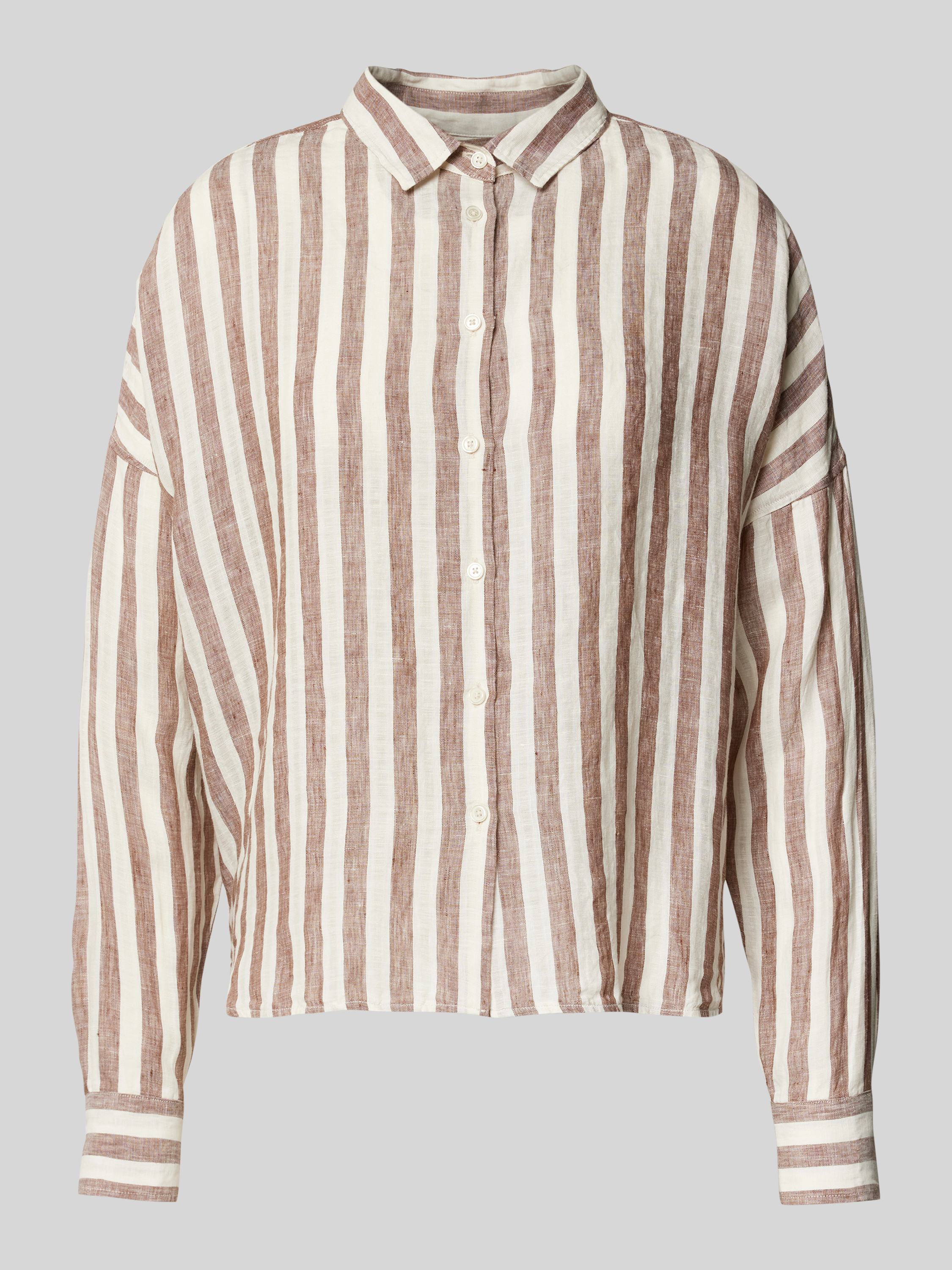 Bluzka lniana o kroju regular fit z obniżonymi ramionami - czekoladowy
