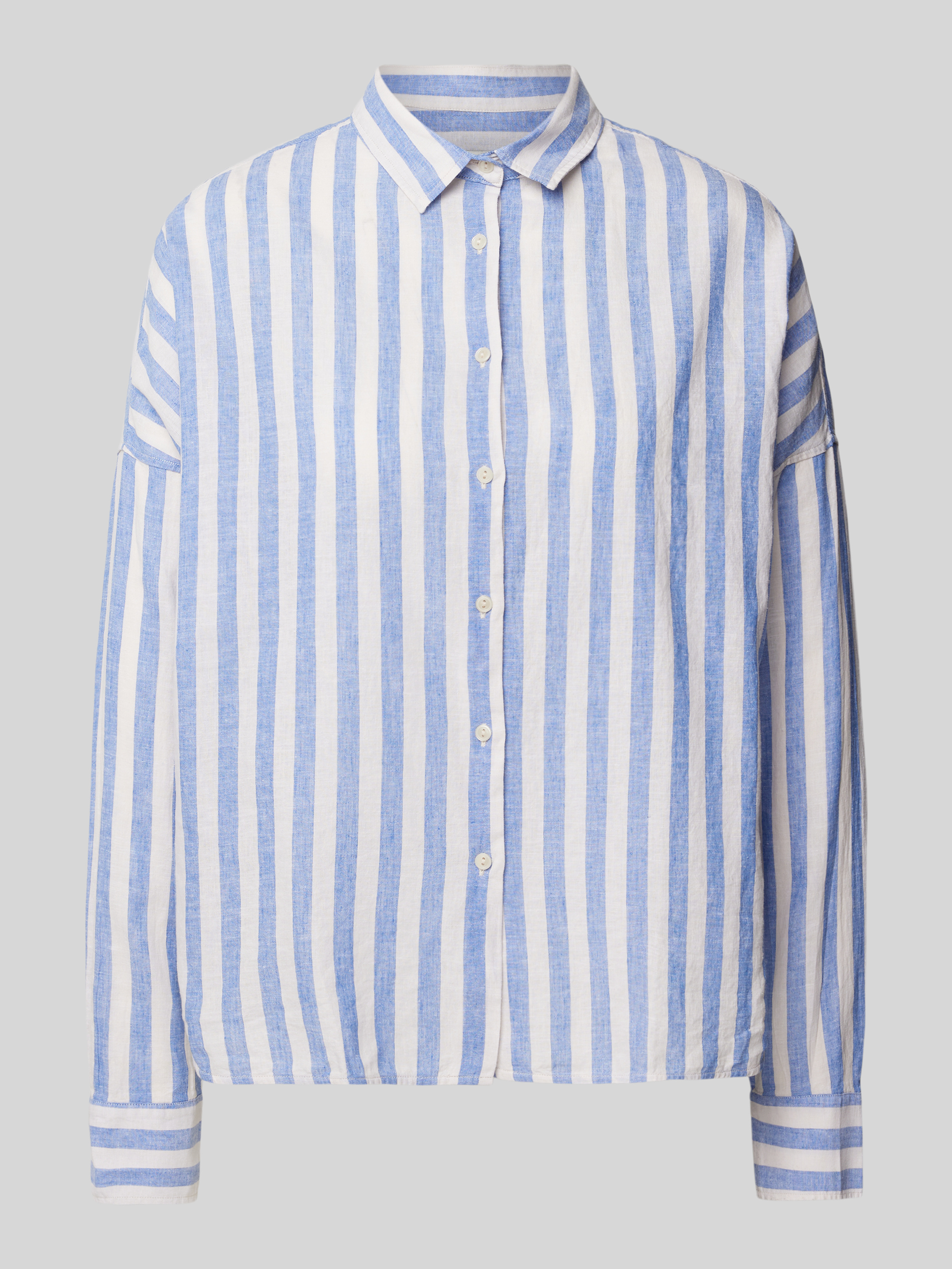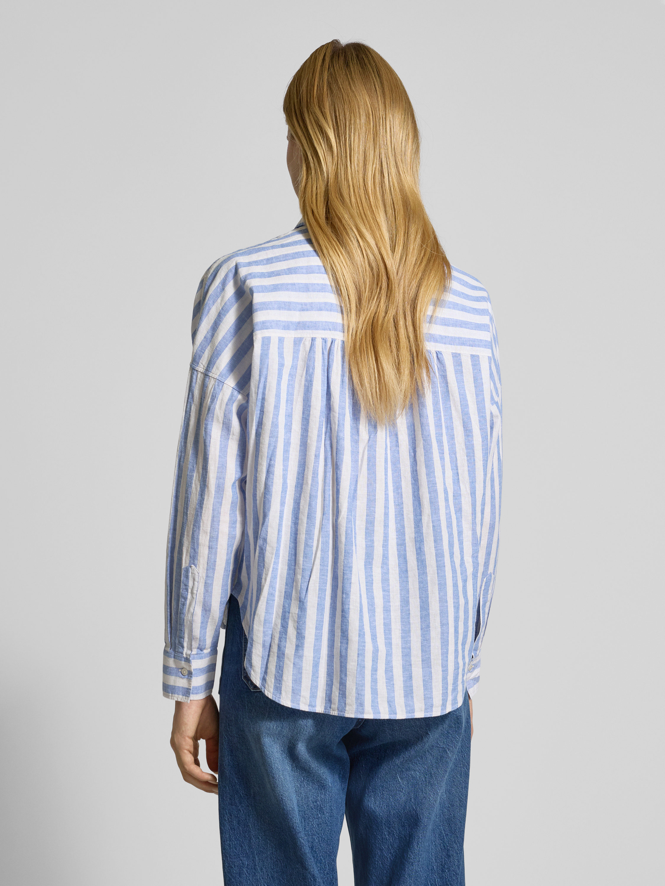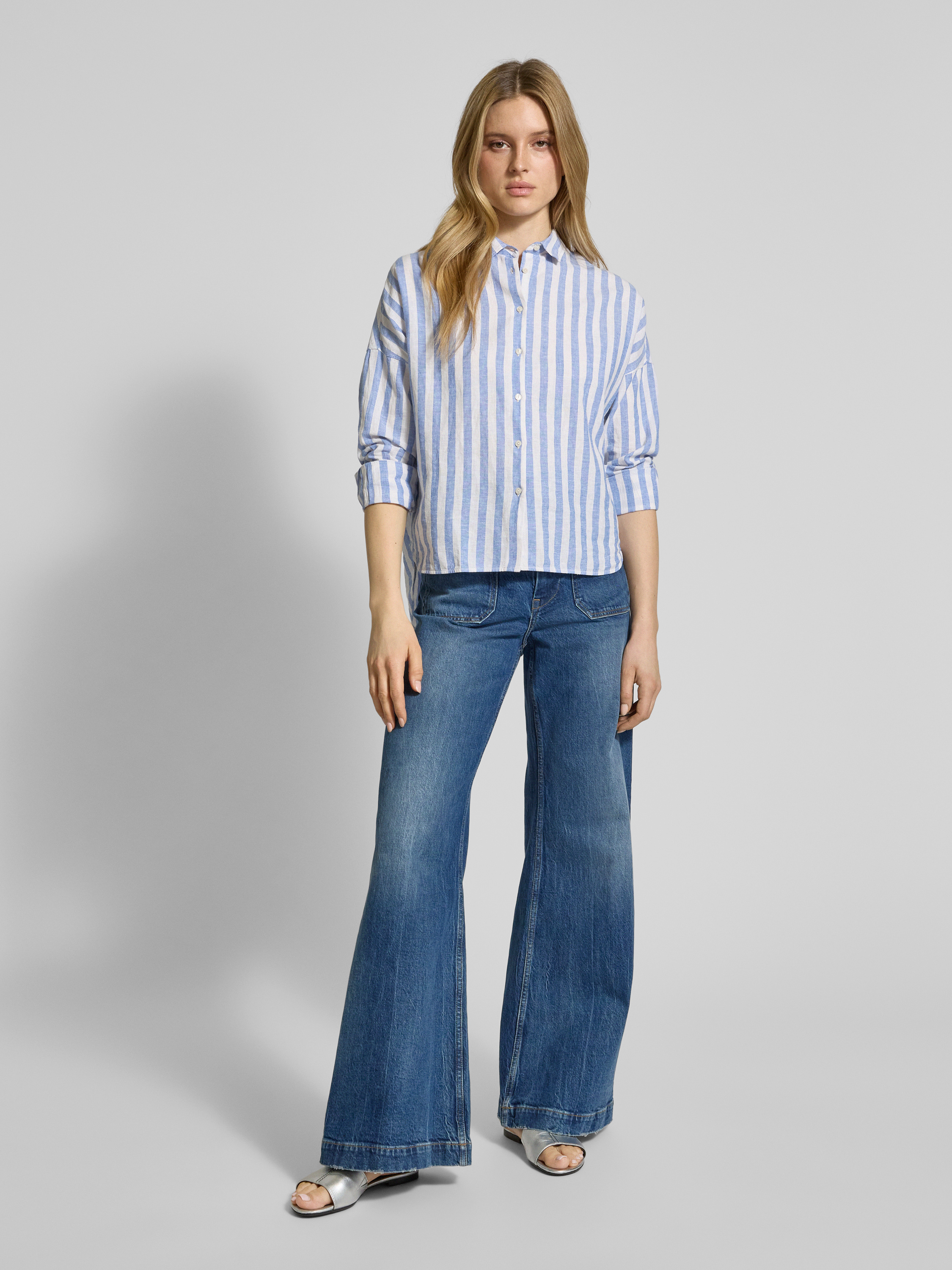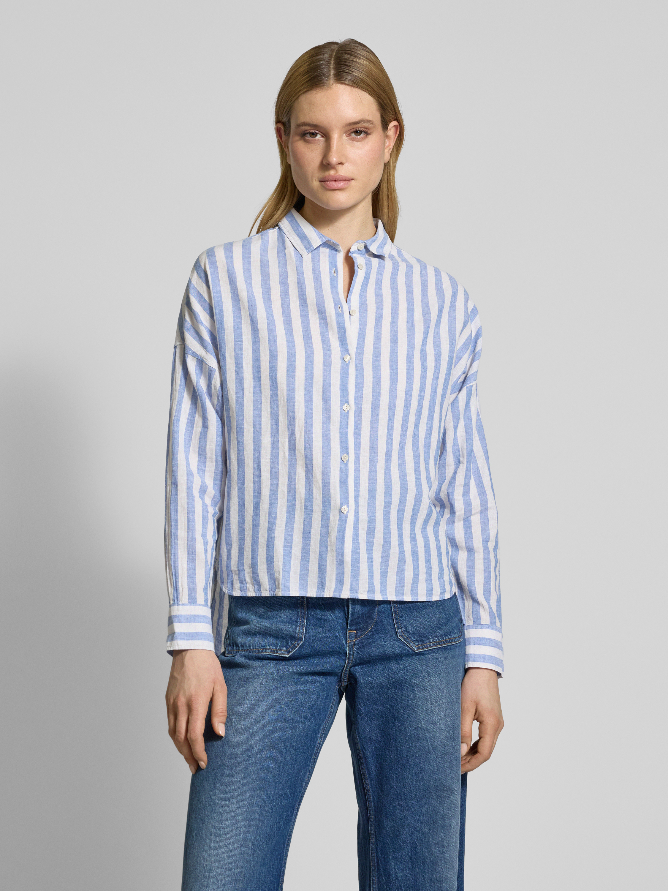 Bluzka lniana o kroju regular fit z obniżonymi ramionami - niebieski
