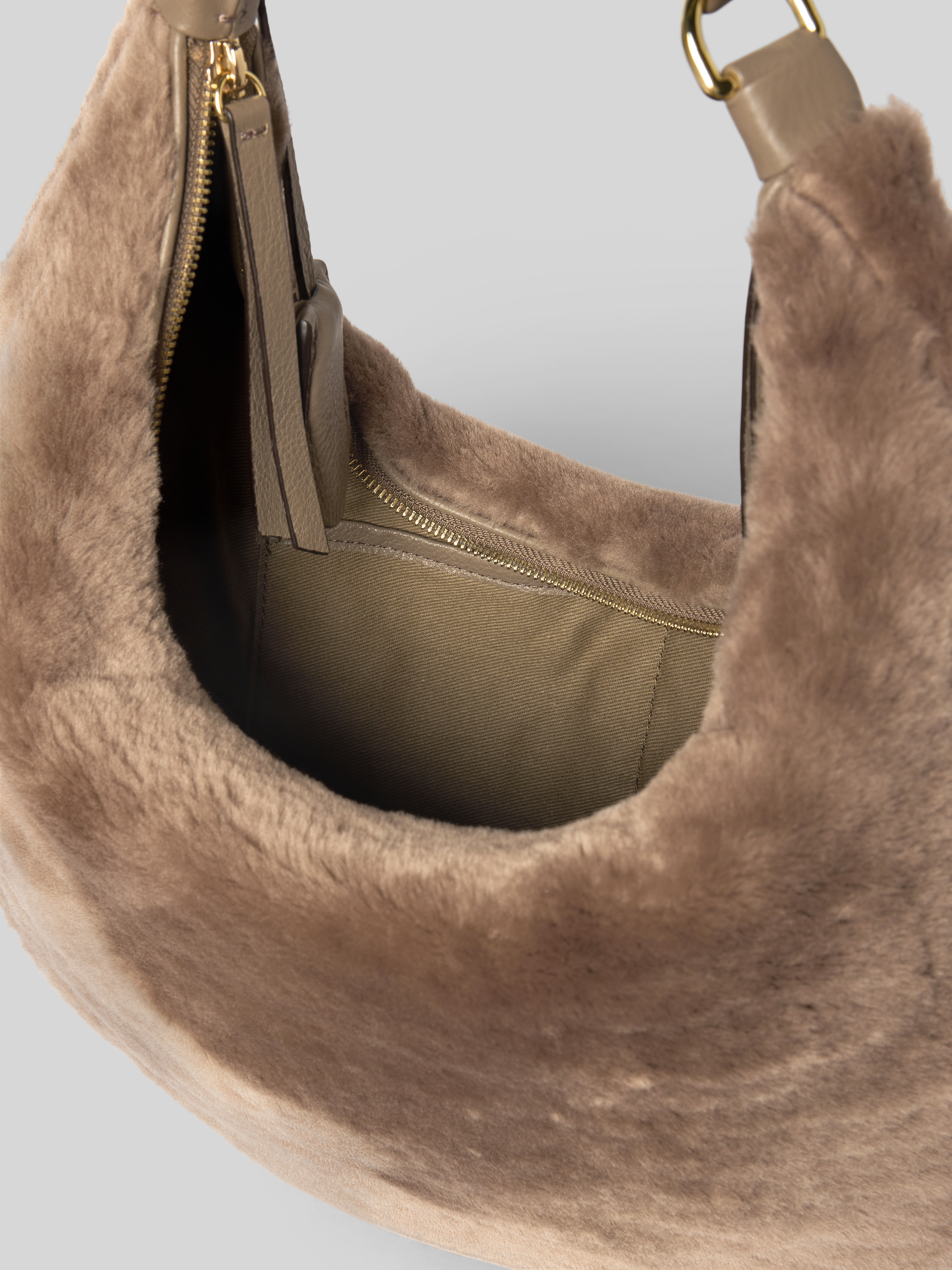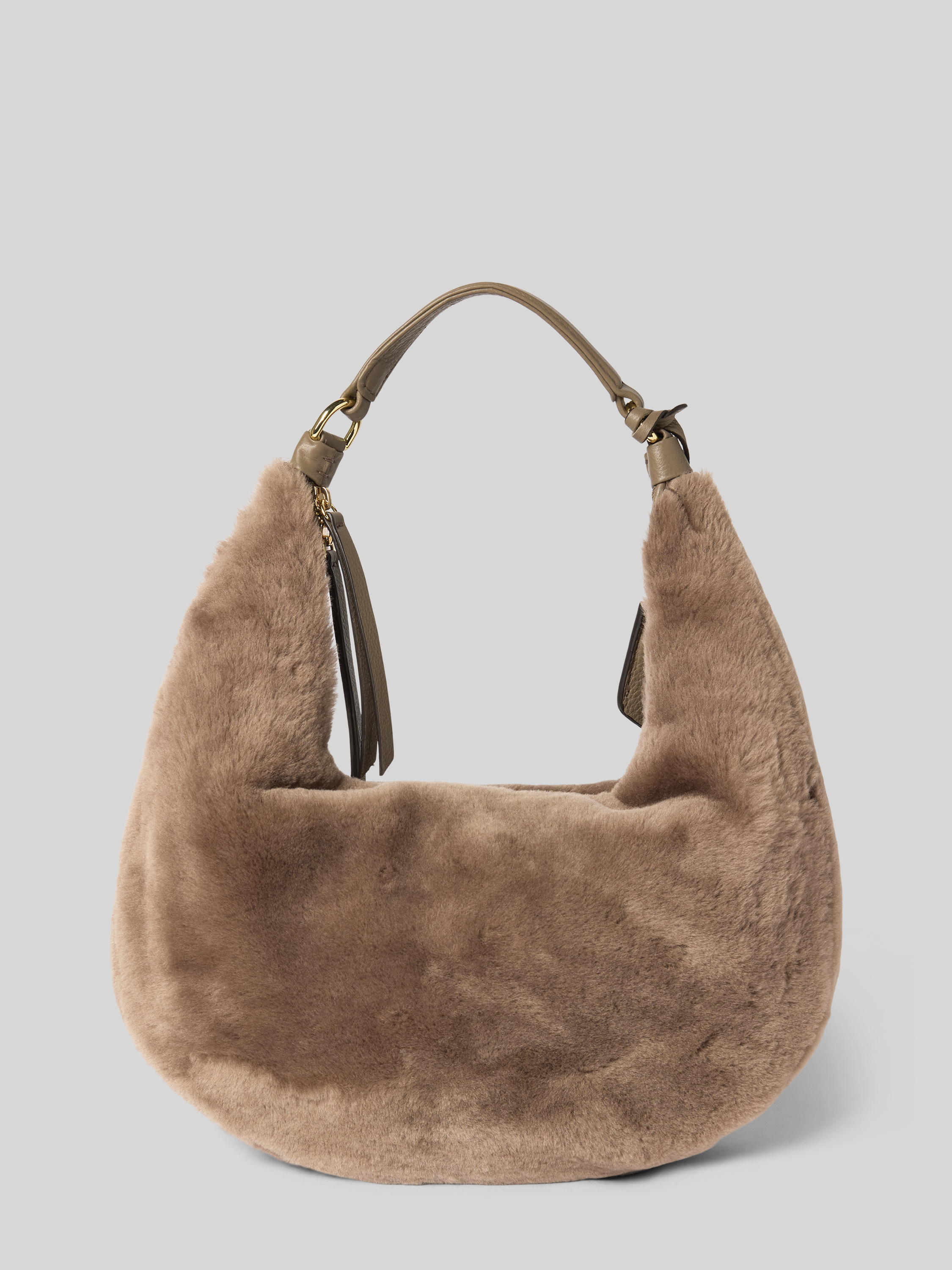 Torebka skórzana z imitacją futra model ‘NANA’ - błotnisty