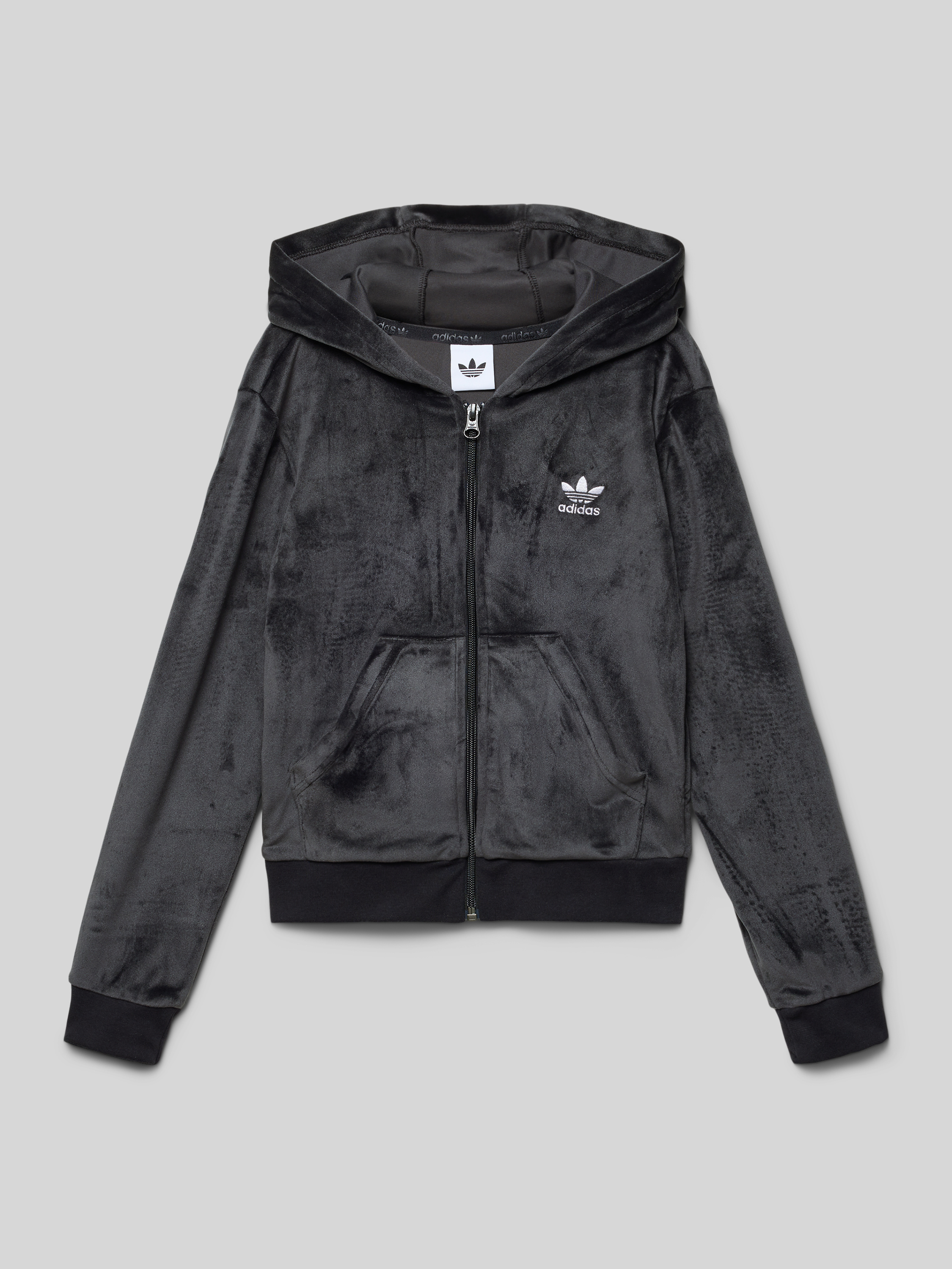 Bluza rozpinana z weluru z wyhaftowanym logo - czarny