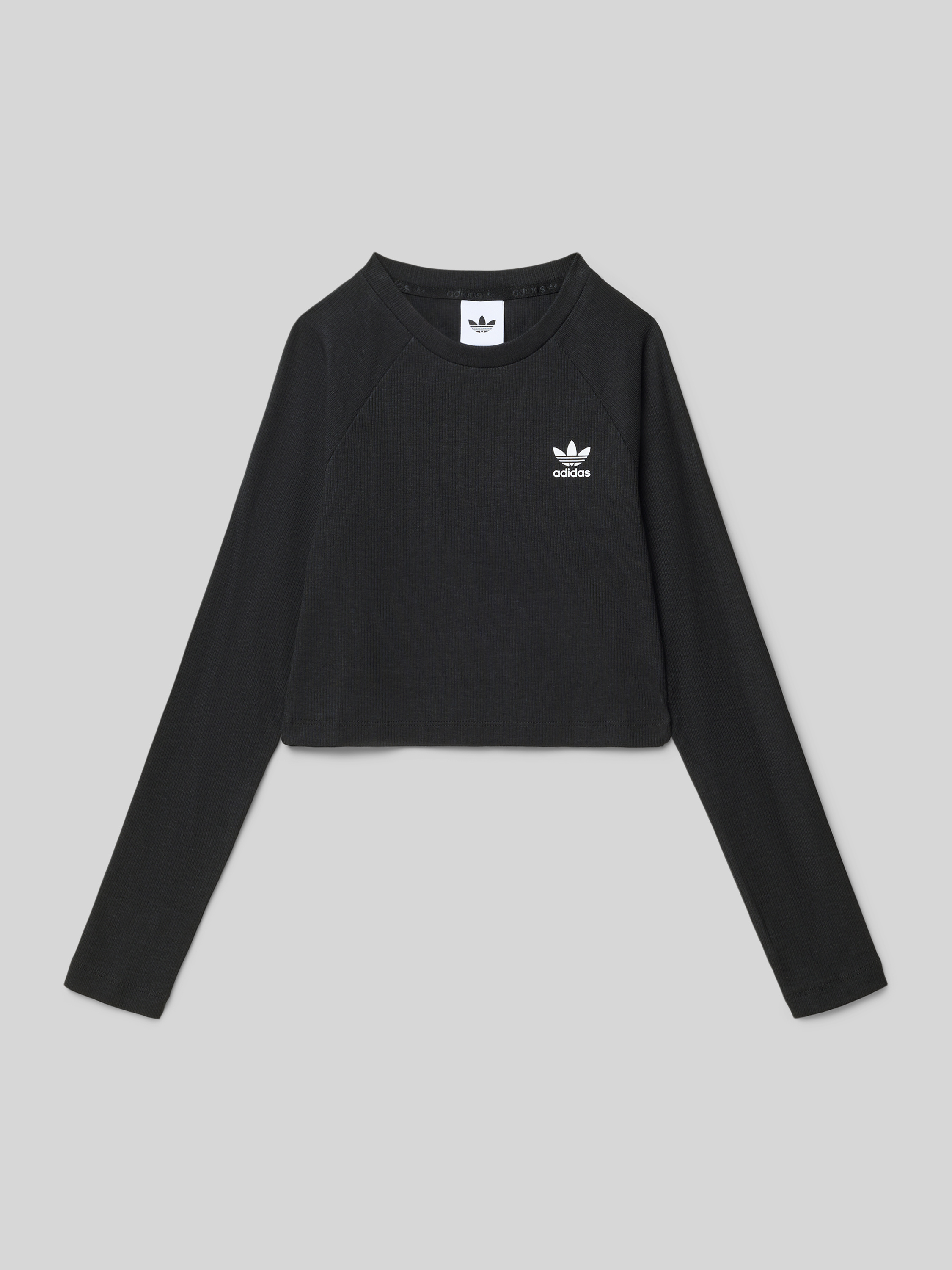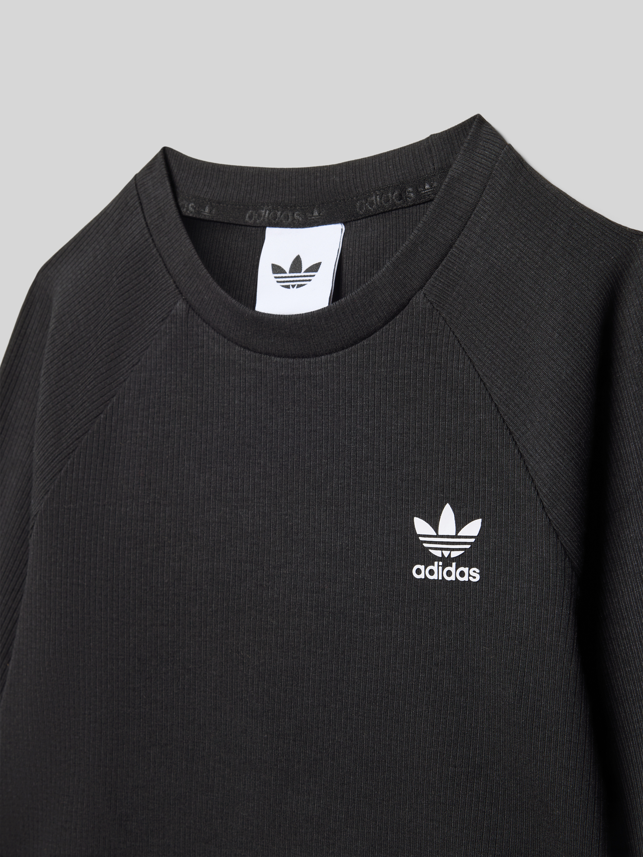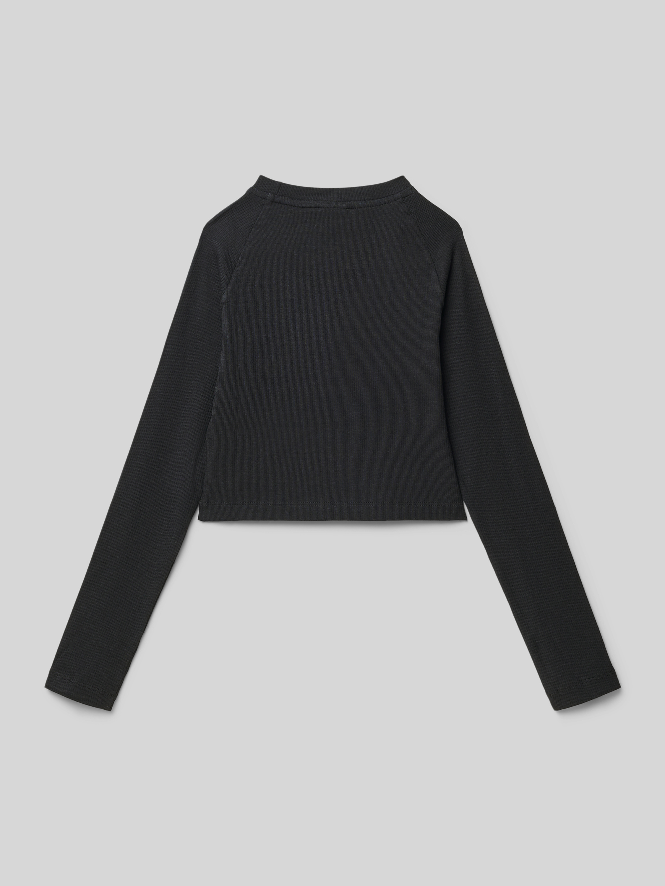 Bluzka z długim rękawem i drobnym prążkowaniem - czarny