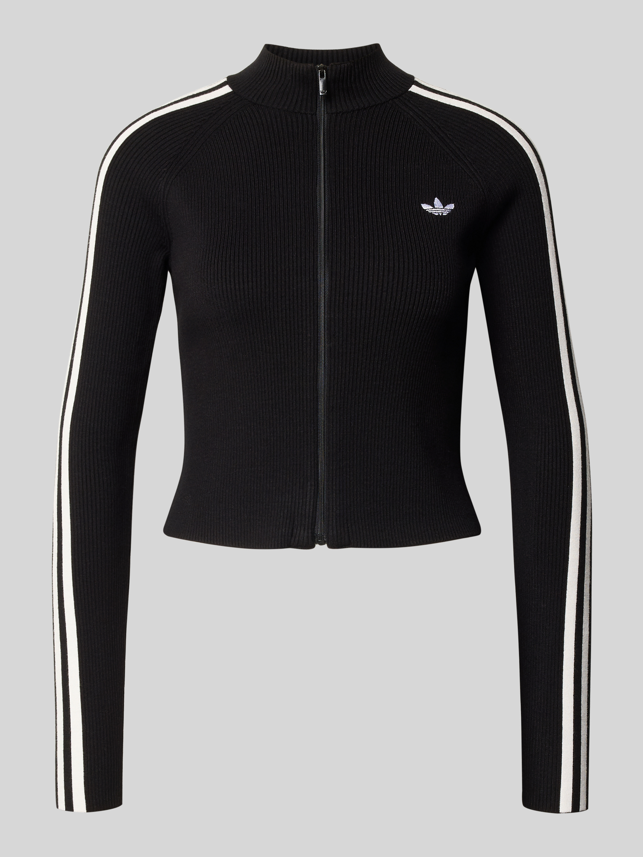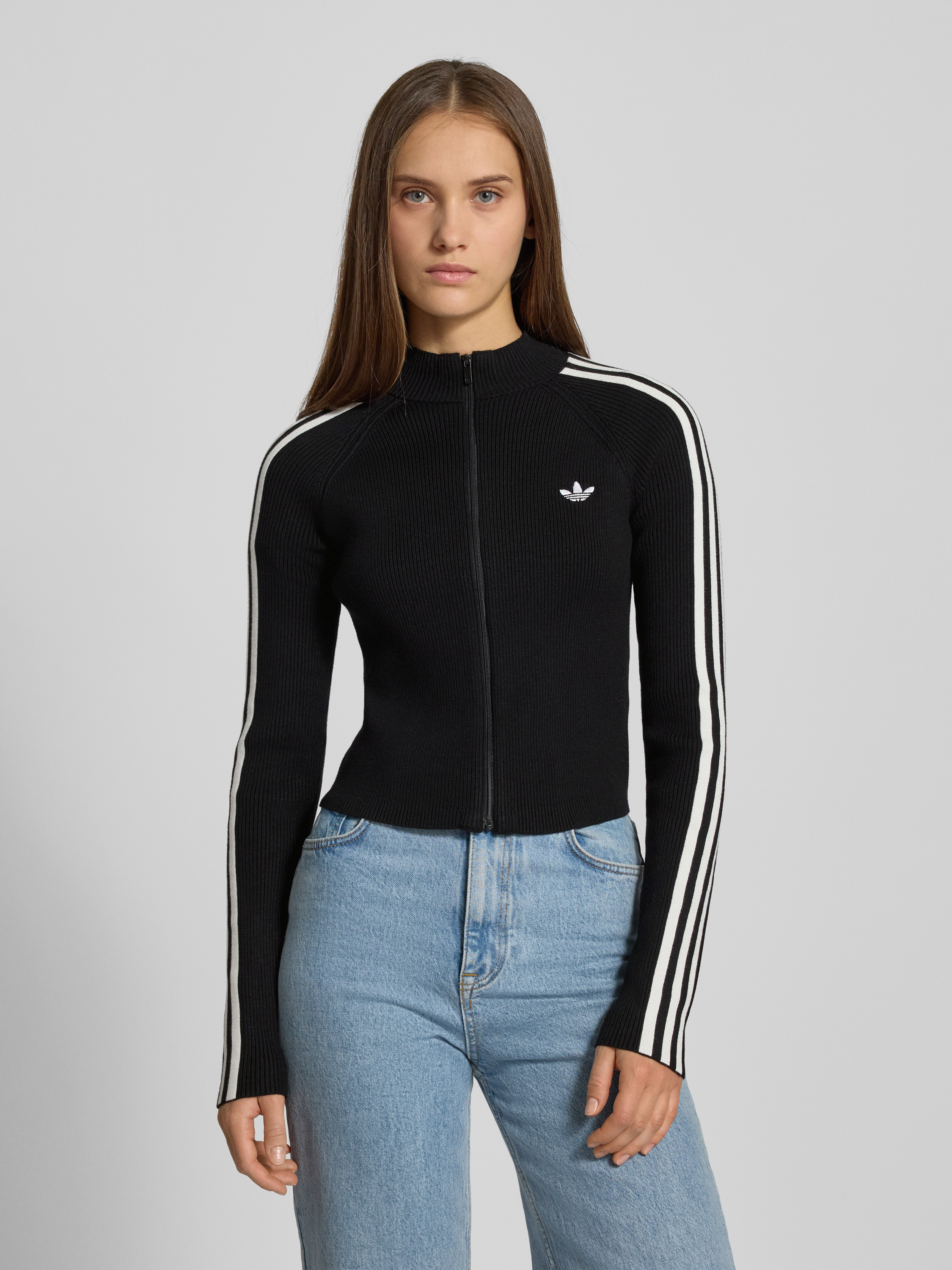 Kurtka z dzianiny o kroju slim fit z wyhaftowanym logo - czarny
