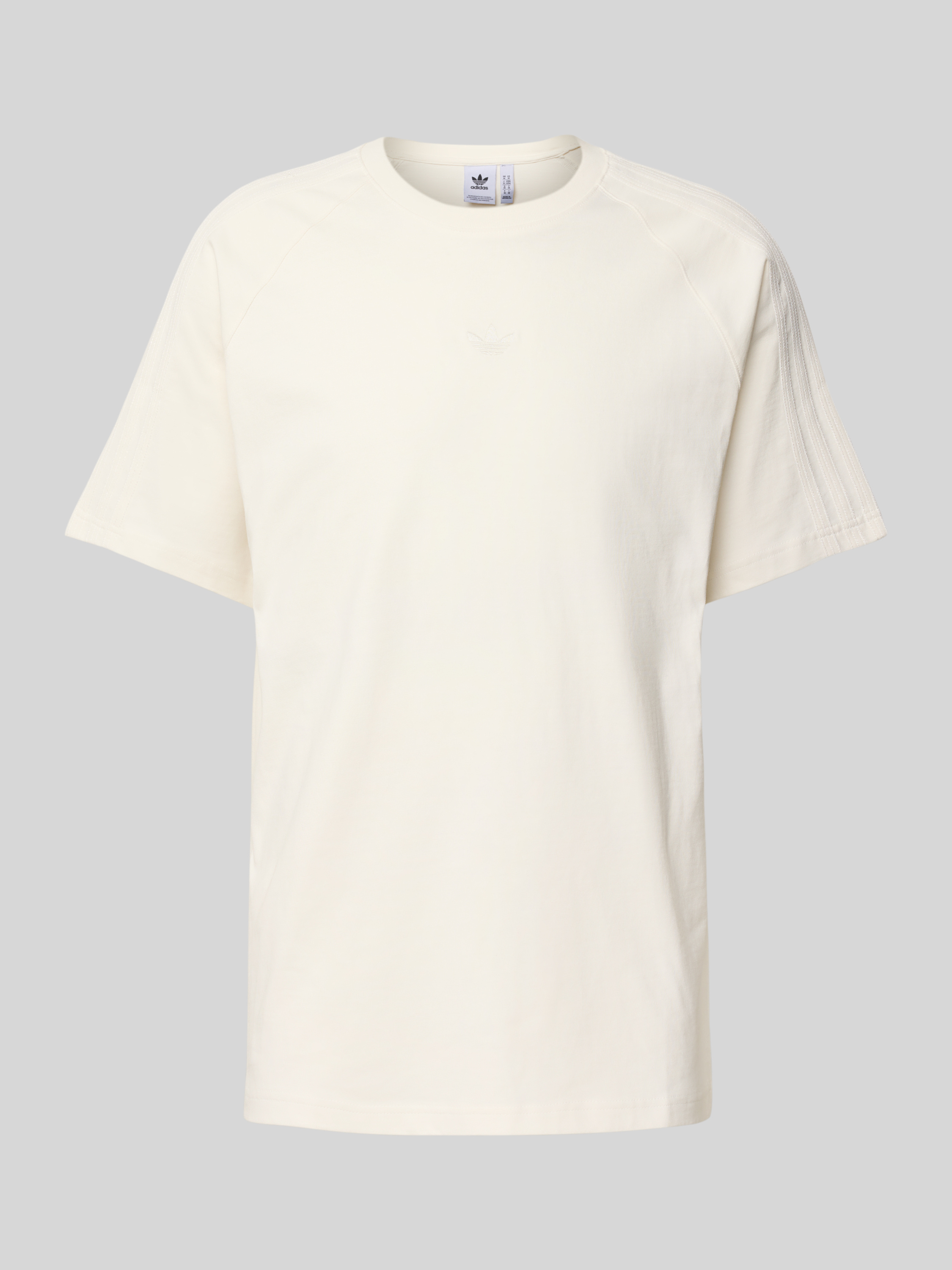 T-shirt z prążkowanym okrągłym dekoltem - złamany biały