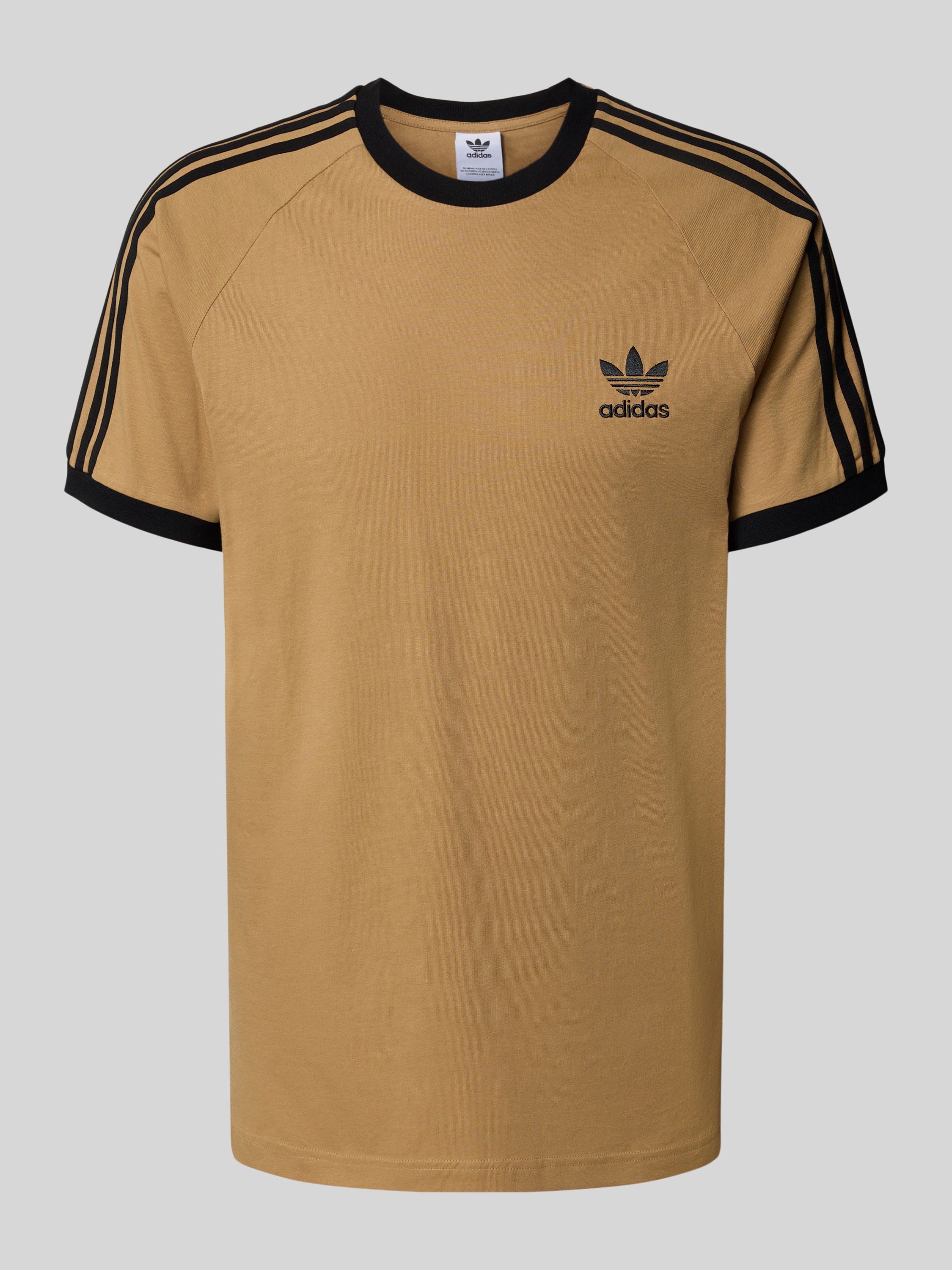 T-shirt z wyhaftowanym logo i okrągłym dekoltem - średniobrązowy