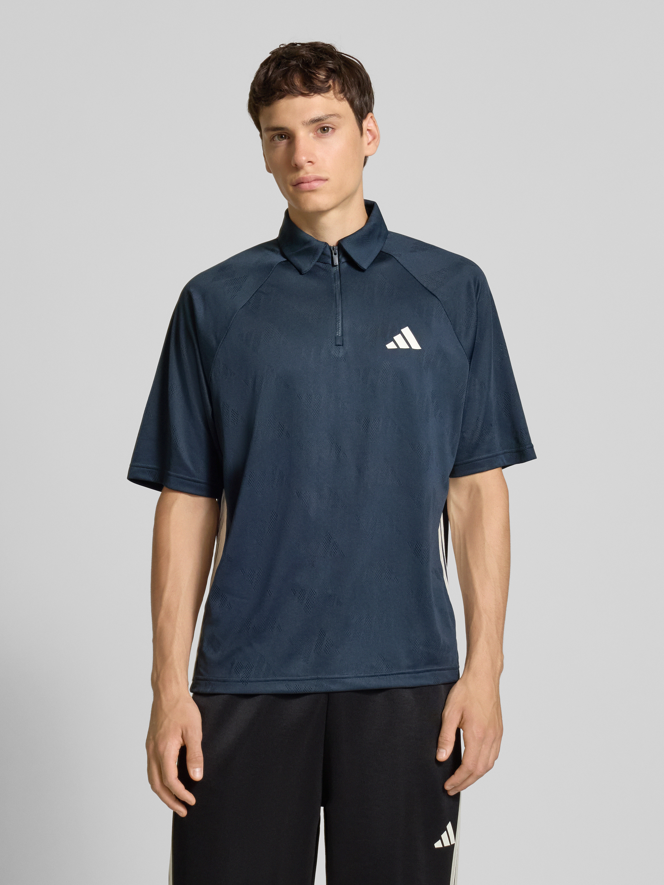 Koszulka polo o kroju regular fit z logo i zamkiem błyskawicznym - ciemnoniebieski