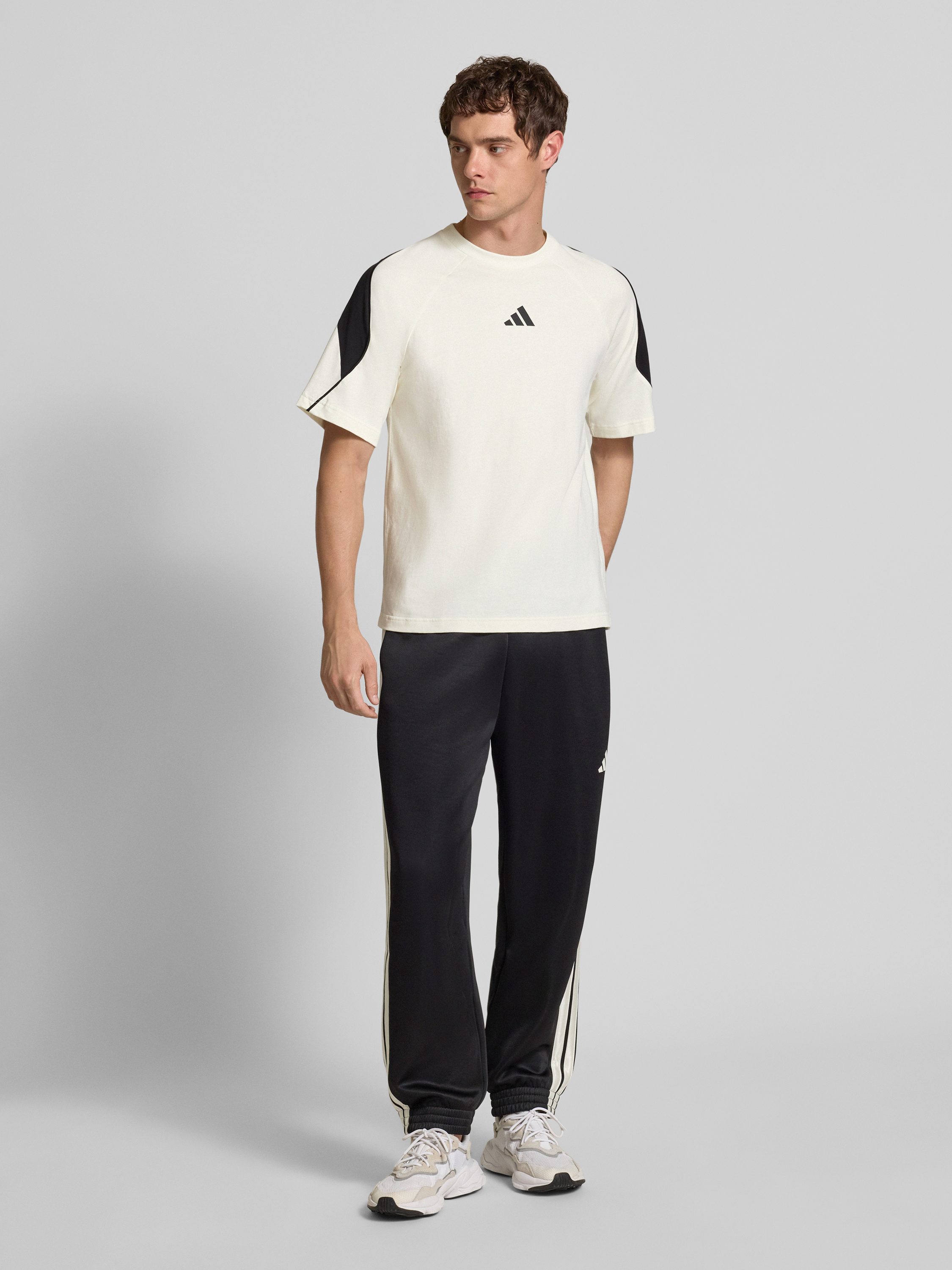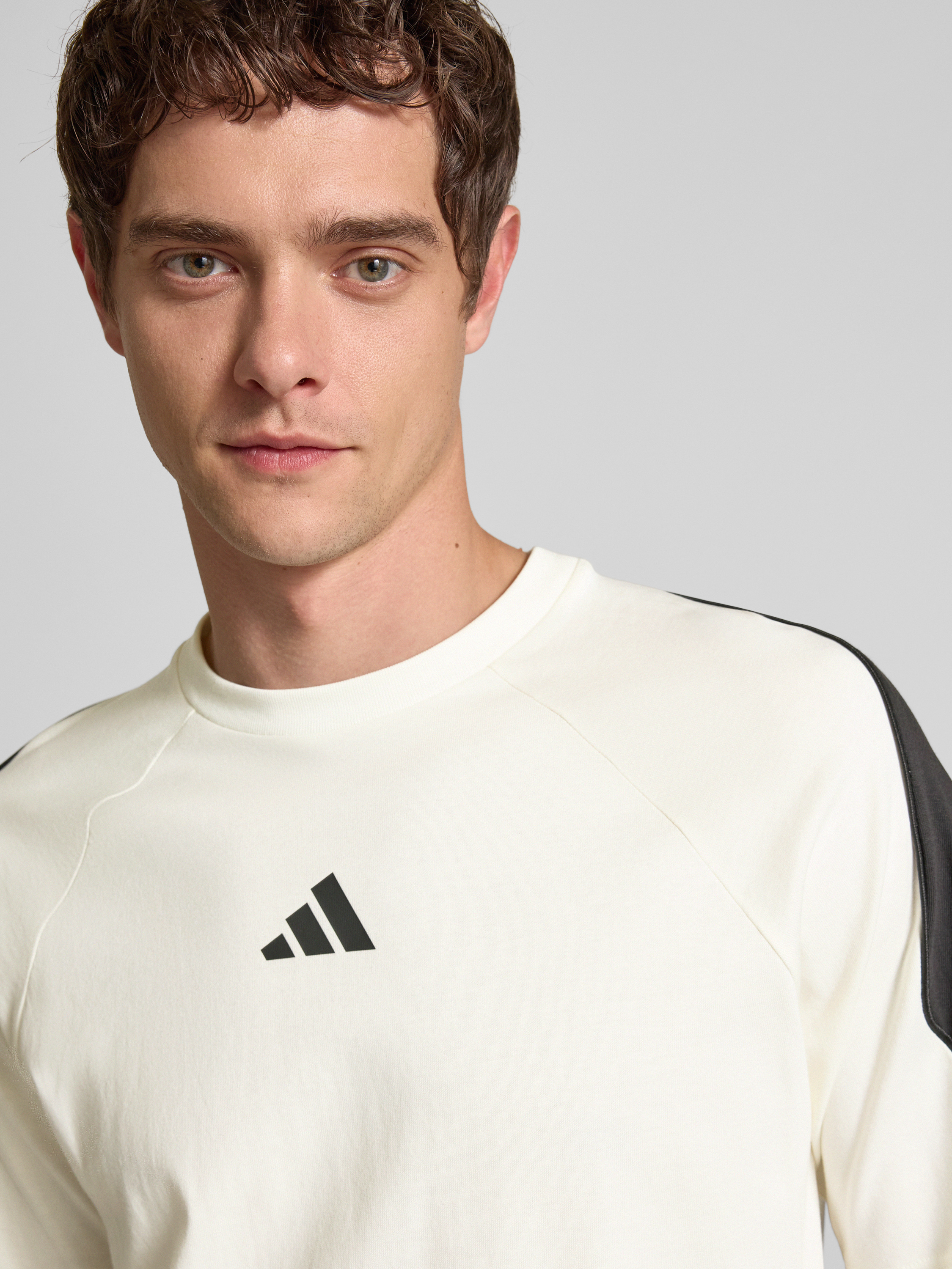 T-shirt z logo i okrągłym dekoltem - złamany biały