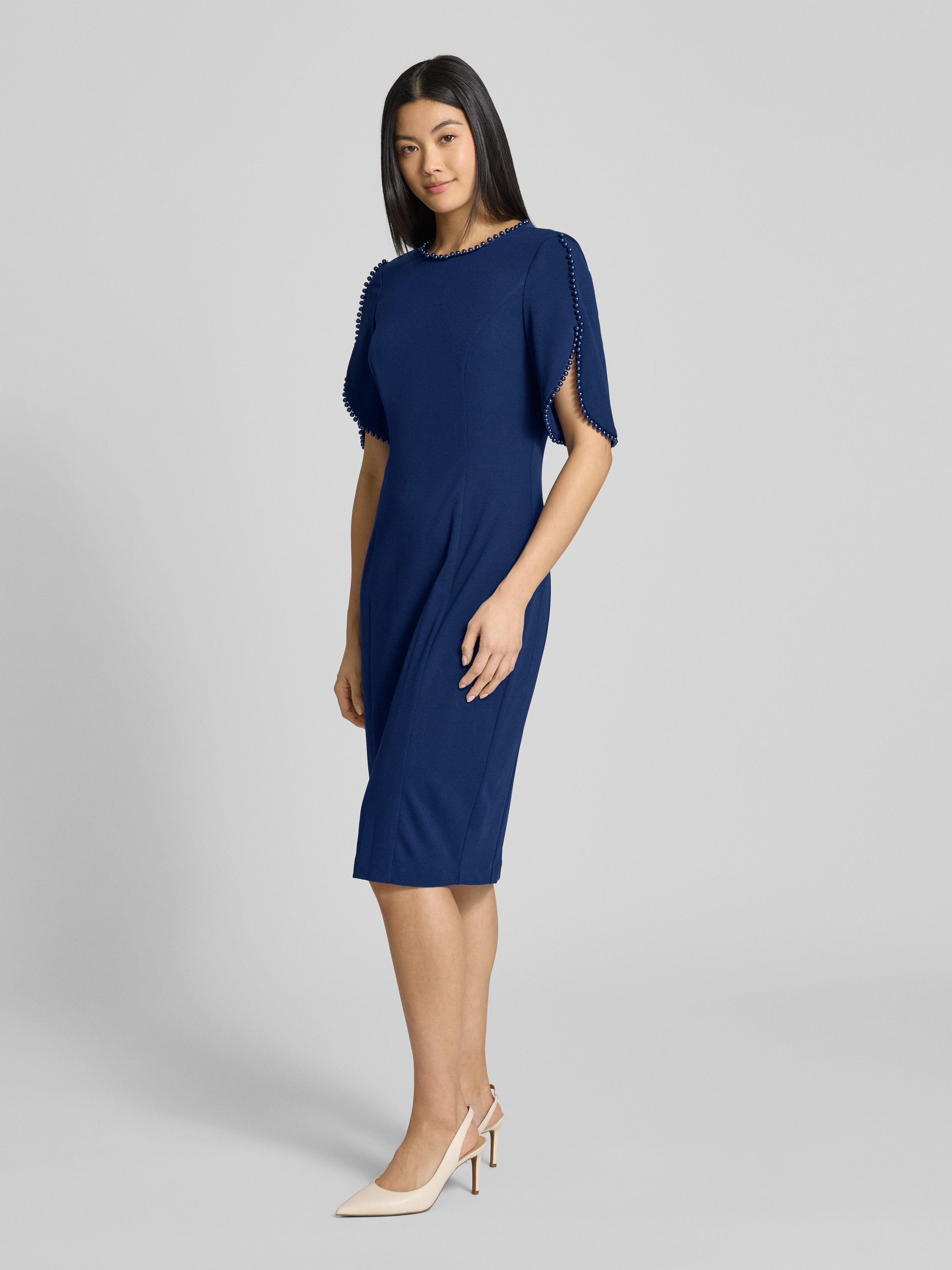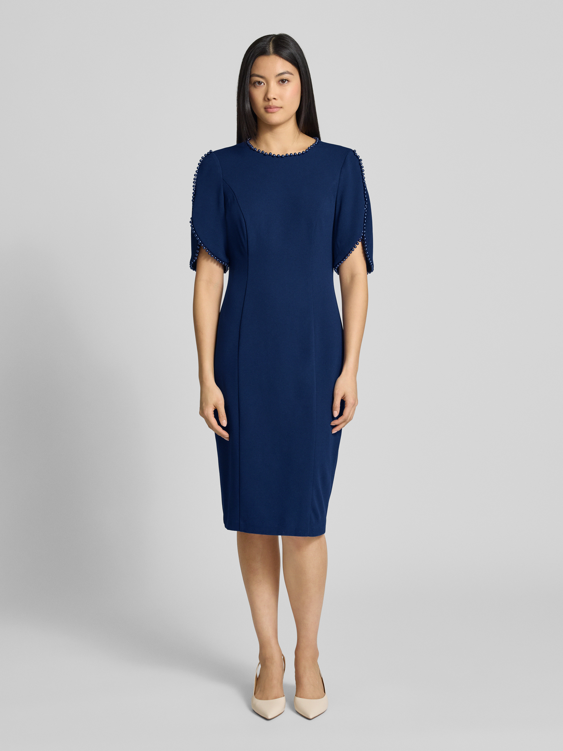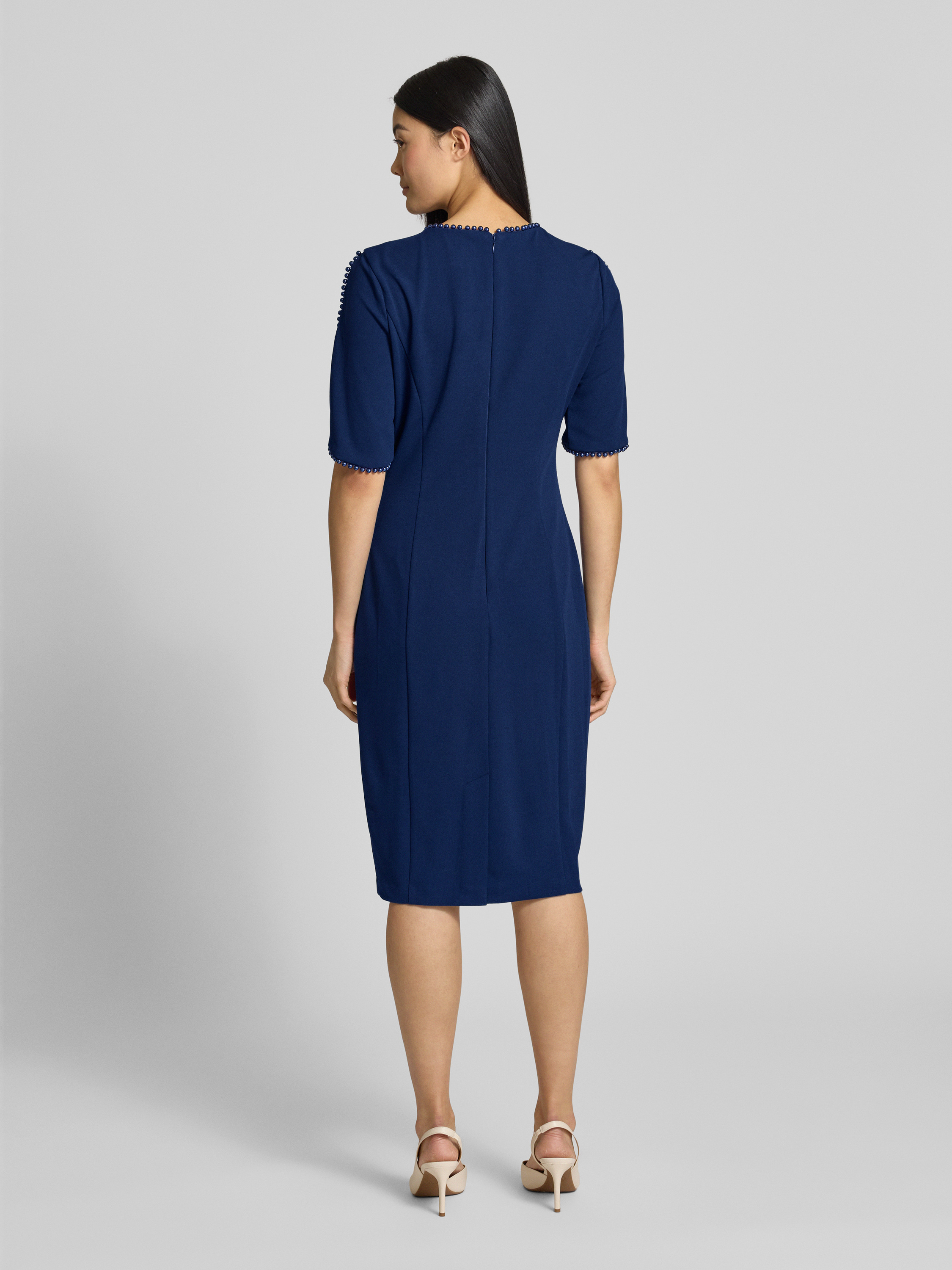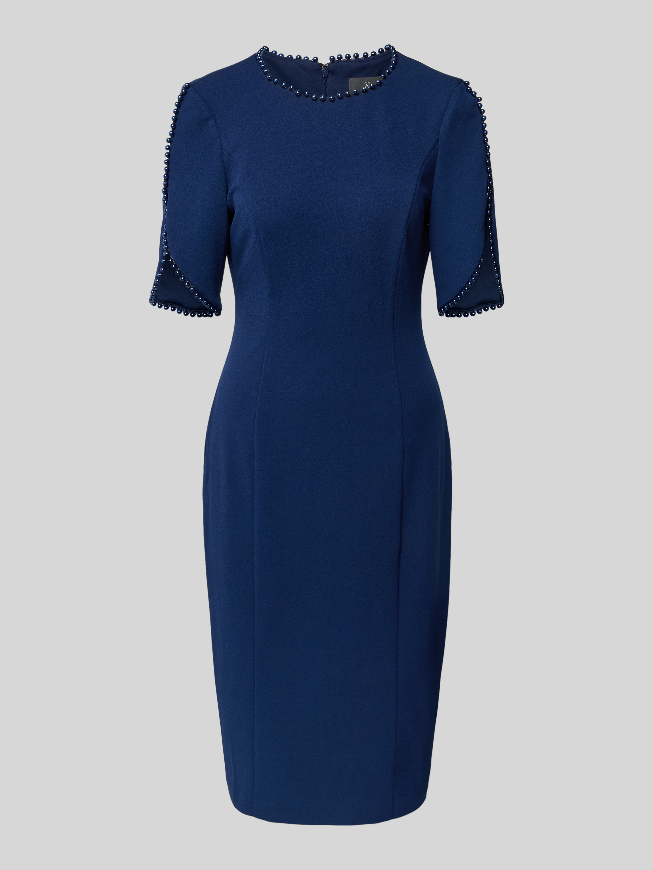 Sukienka koktajlowa o długości do kolan z perełkami - ciemnoniebieski