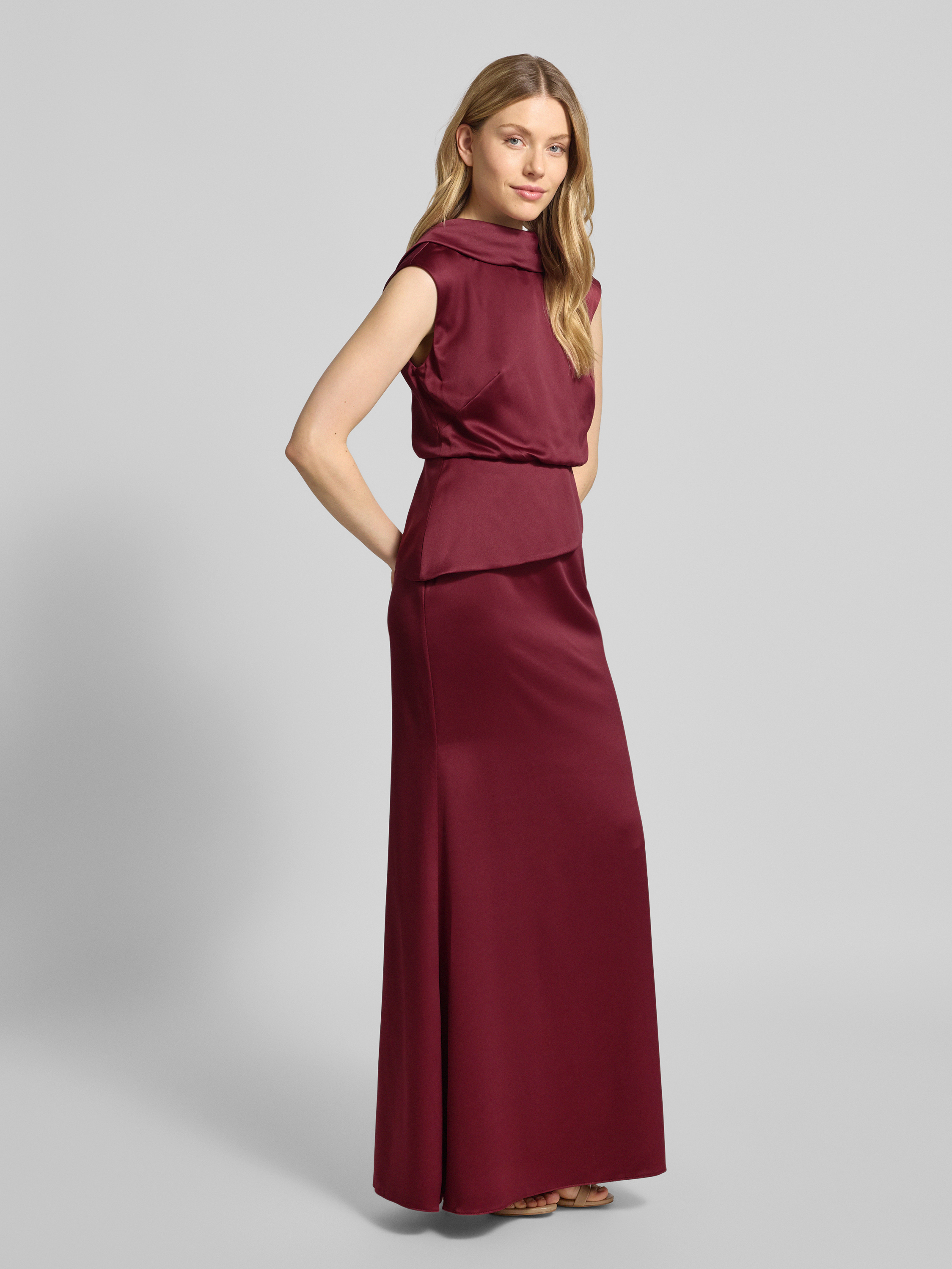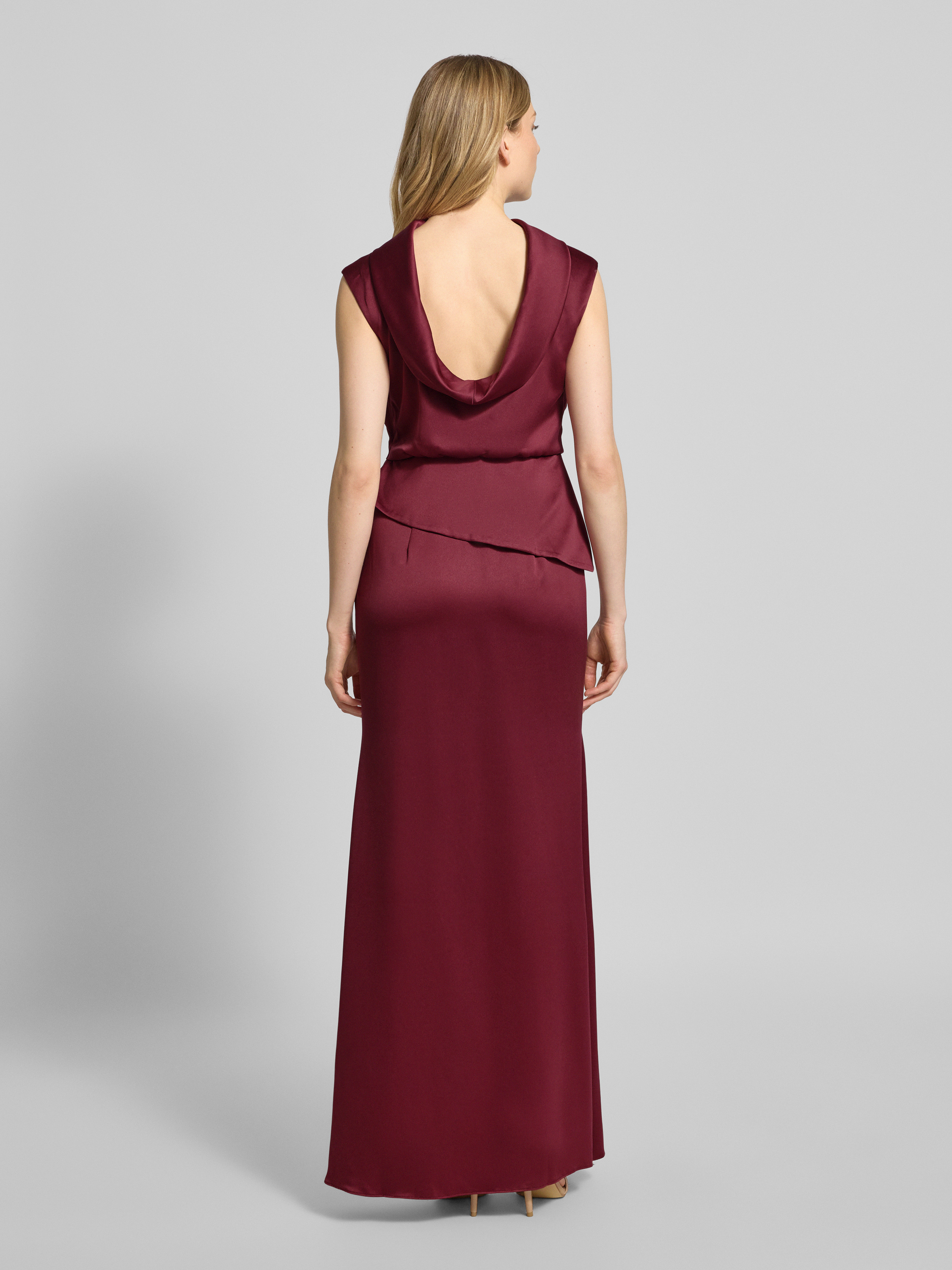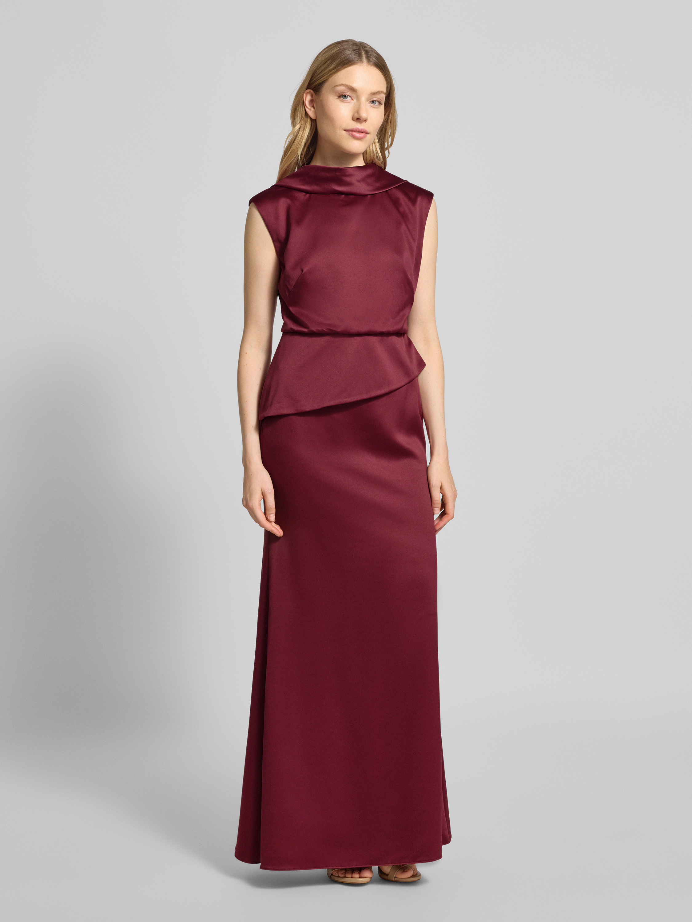 Sukienka wieczorowa ze stójką z efektem stopniowania - bordowy