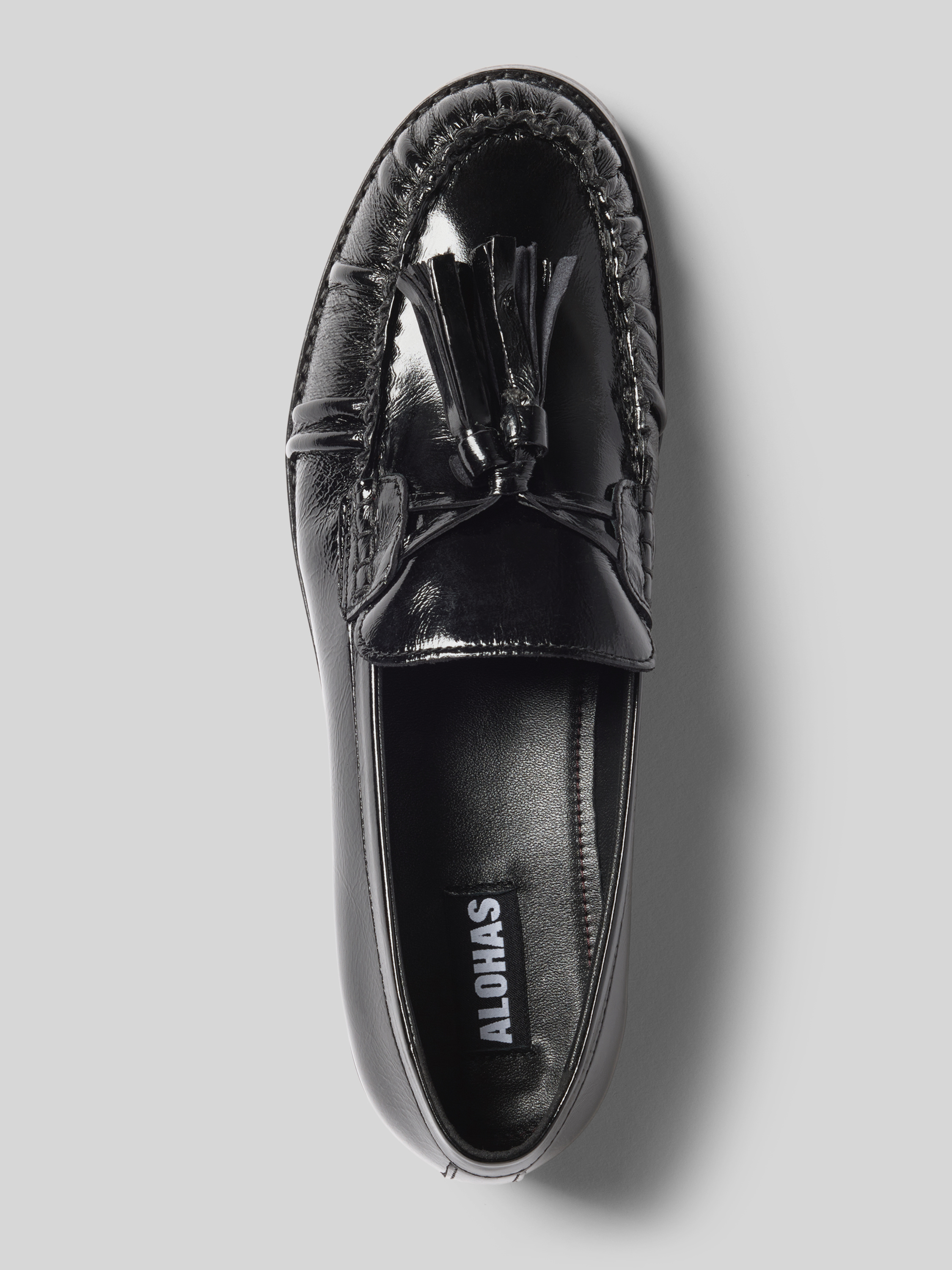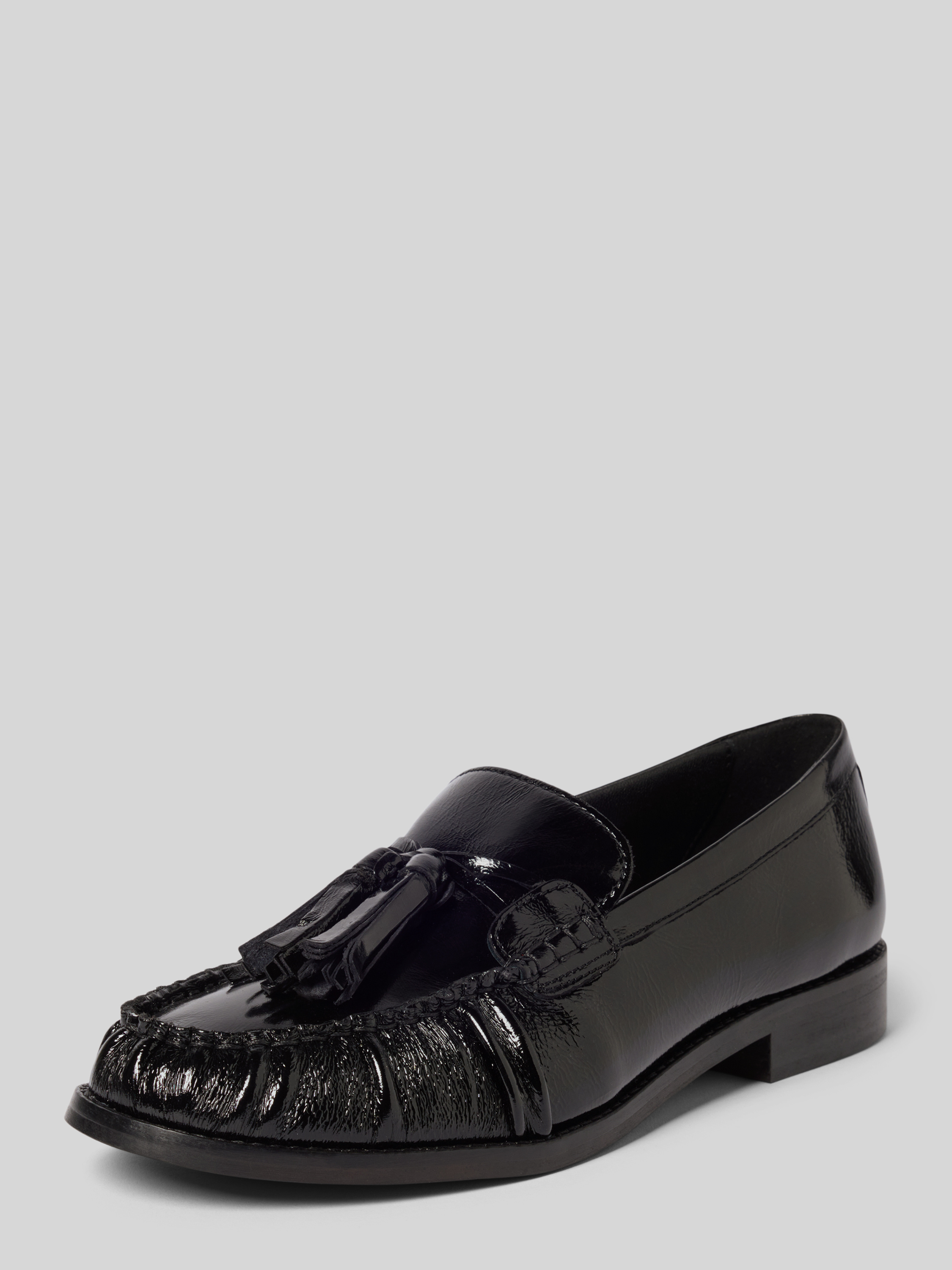 Mokasyny ze skóry naturalnej z ozdobnymi chwostami model ‘Marietta’ - czarny