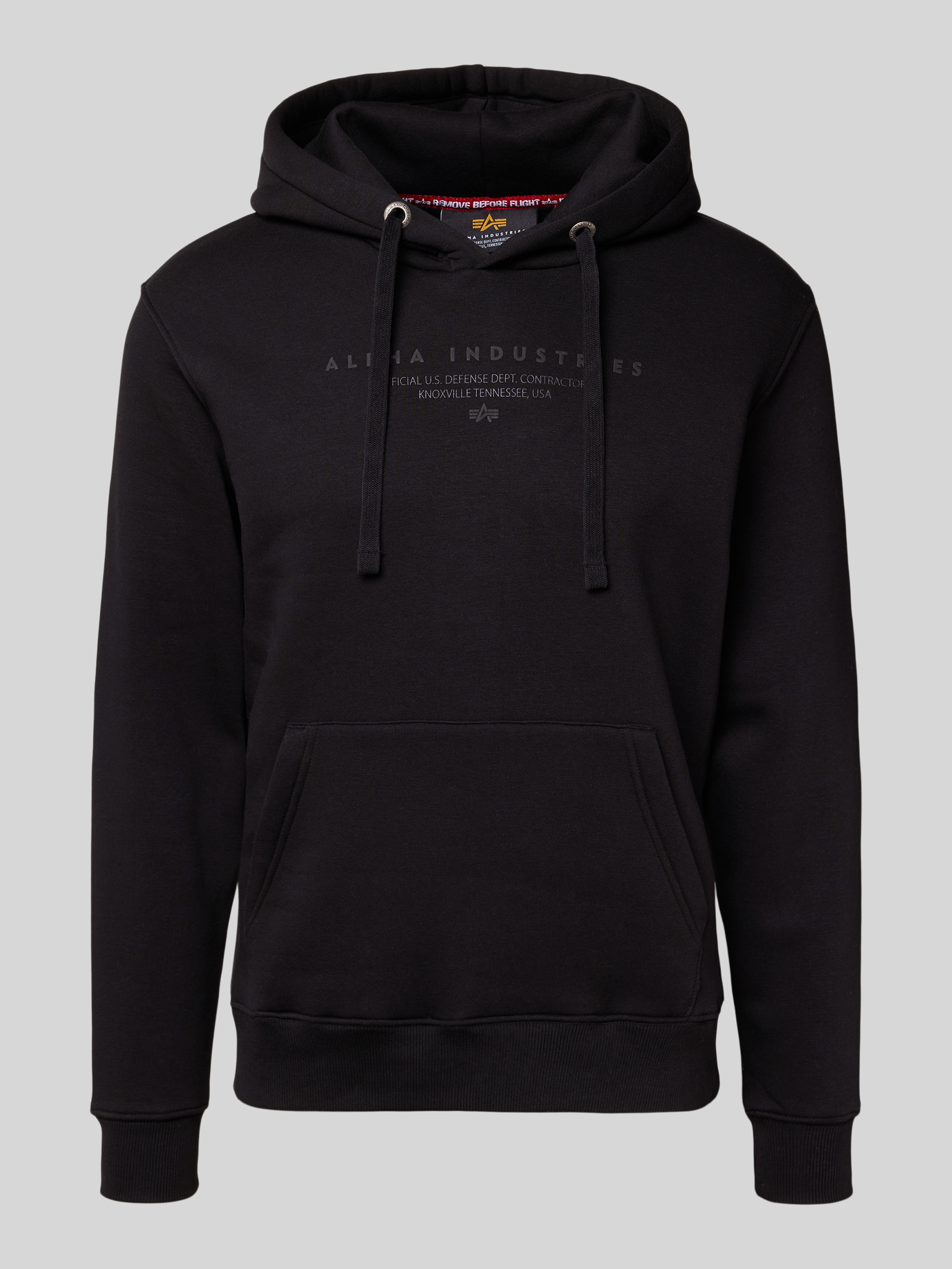 Bluza z kapturem, nadrukiem z logo i kieszenią kangurką - czarny