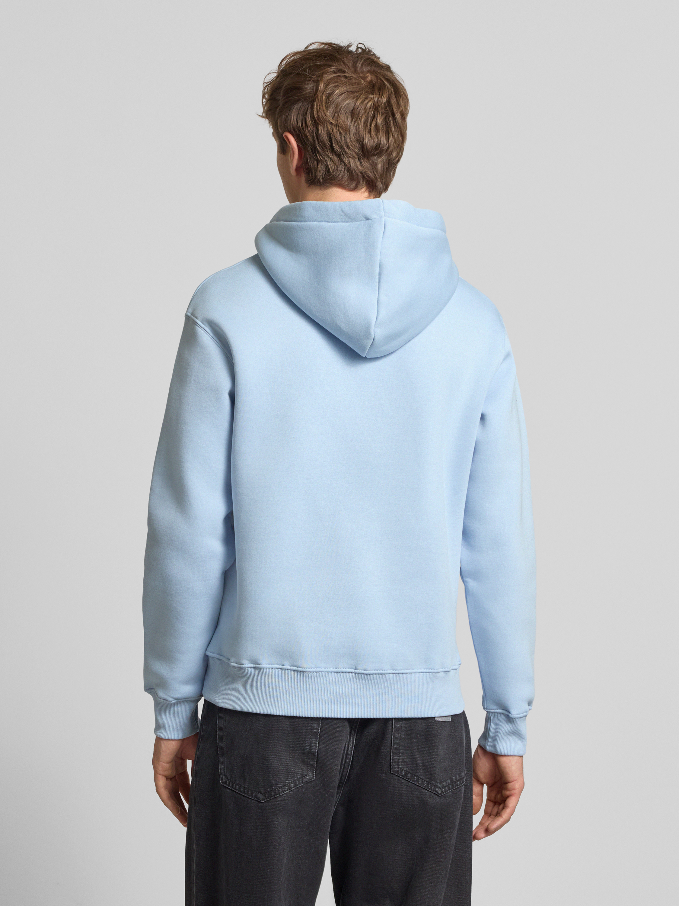 Bluza z kapturem, nadrukiem z logo i kieszenią kangurką - jasnoniebieski