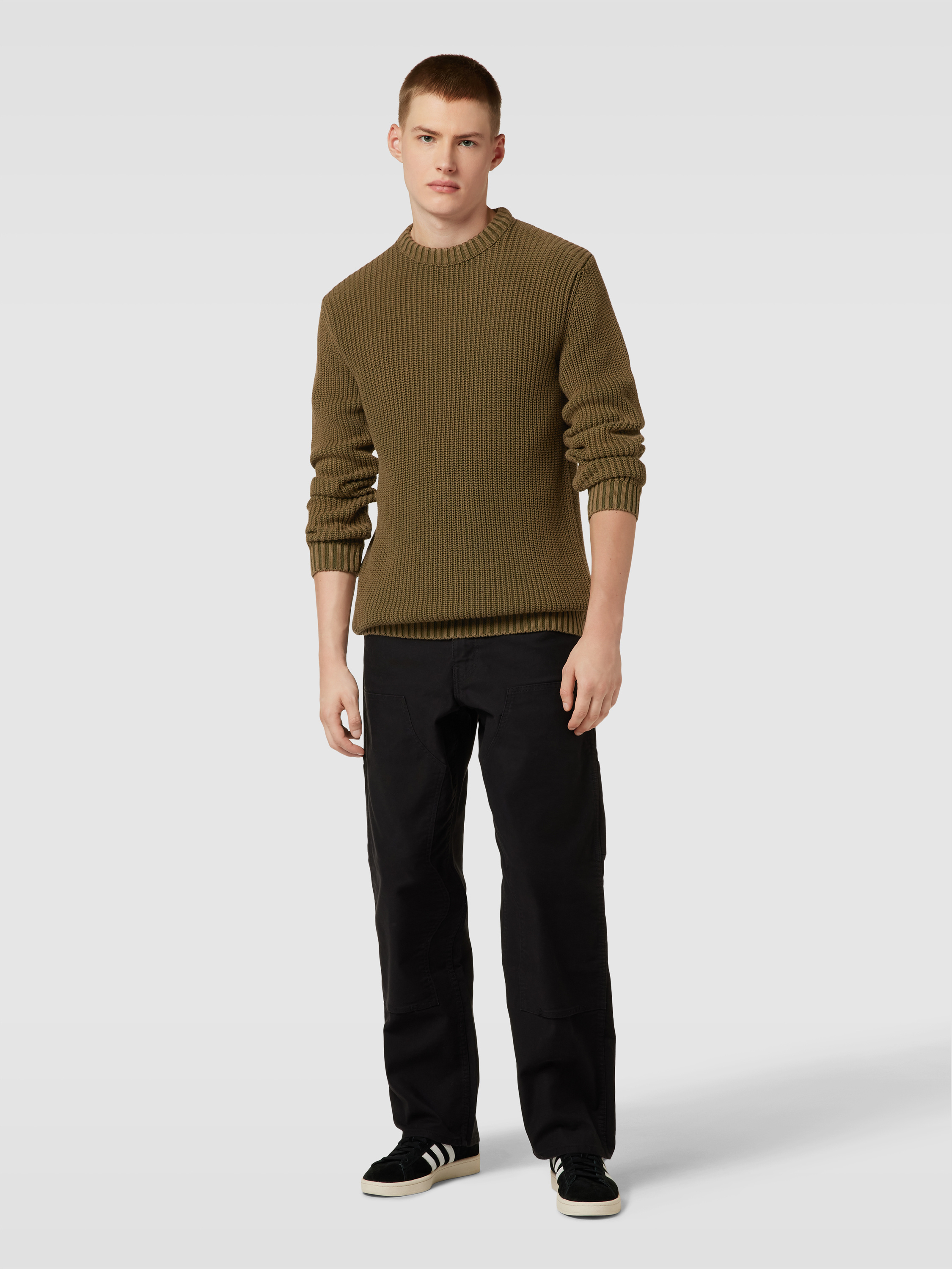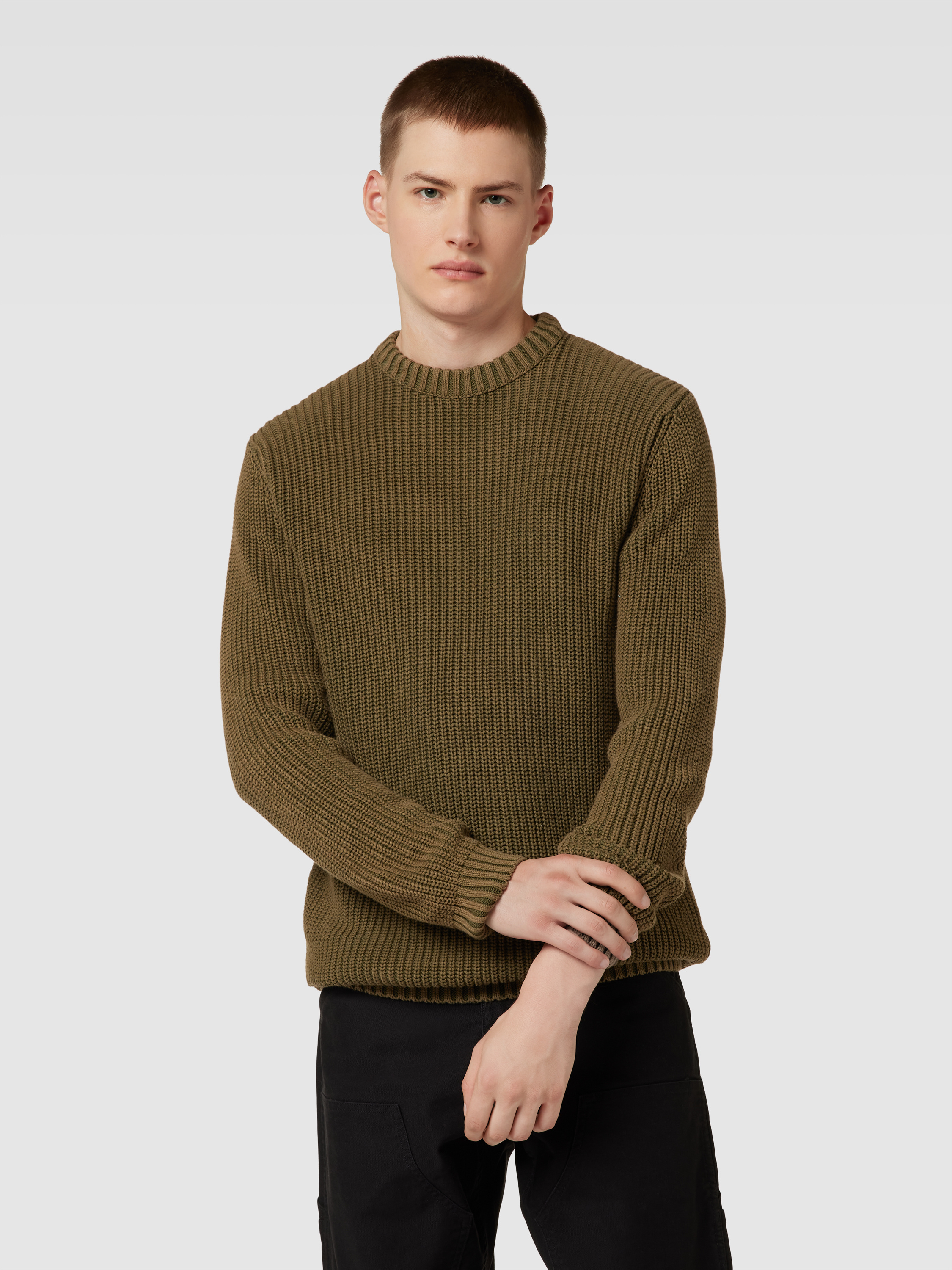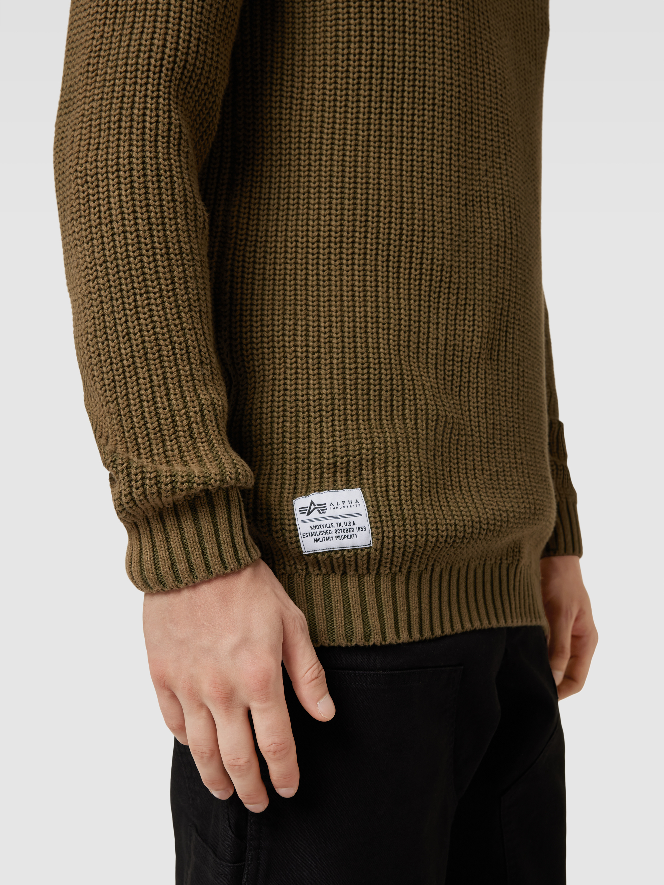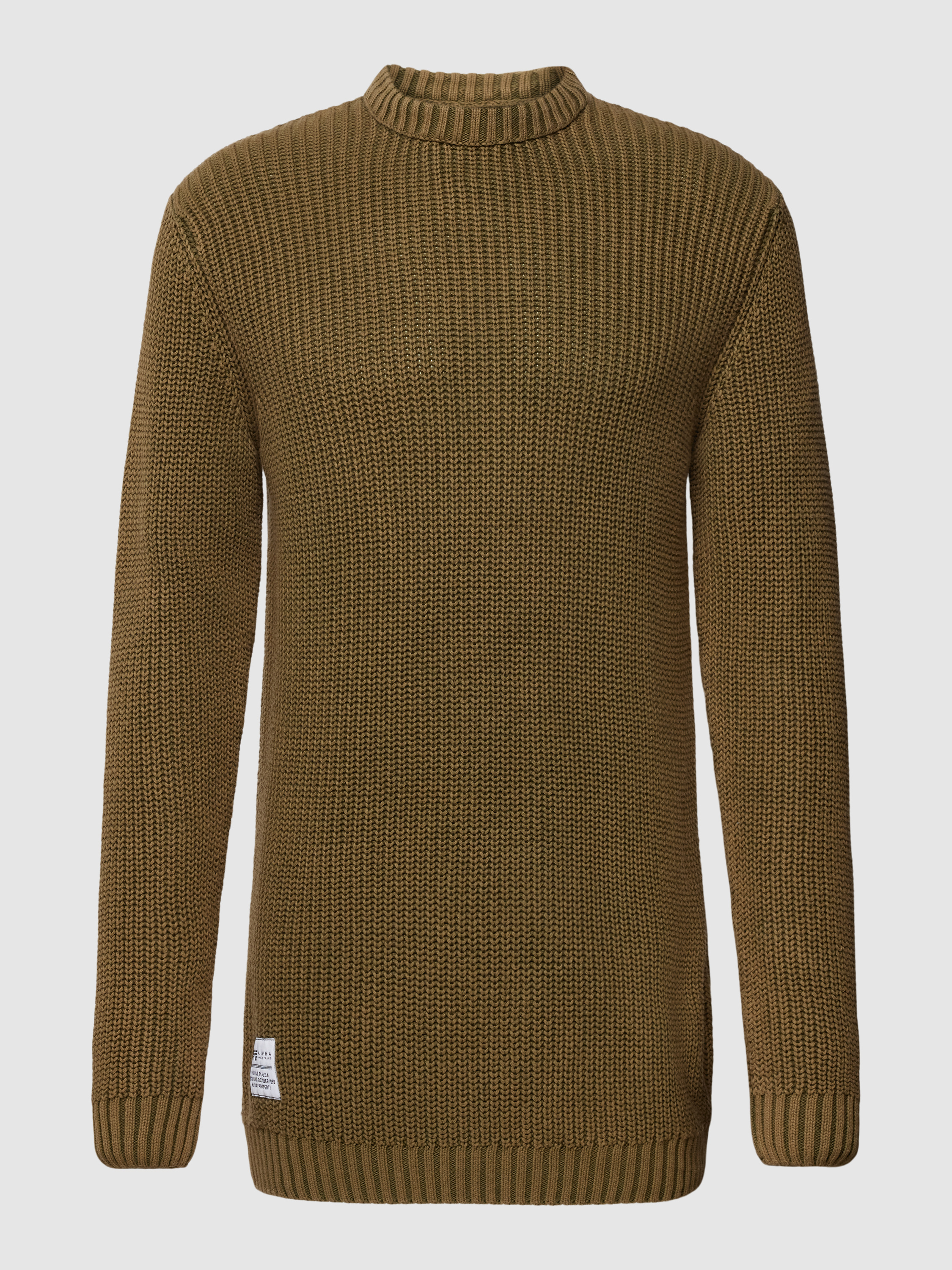 Sweter z dzianiny z detalem z logo model ‘Acid’ - oliwkowy