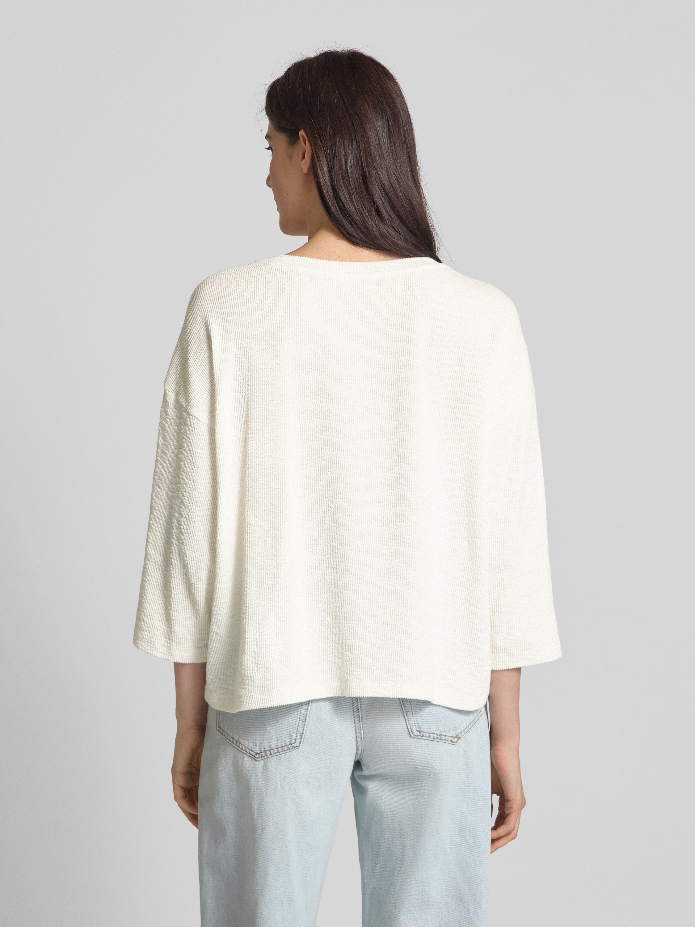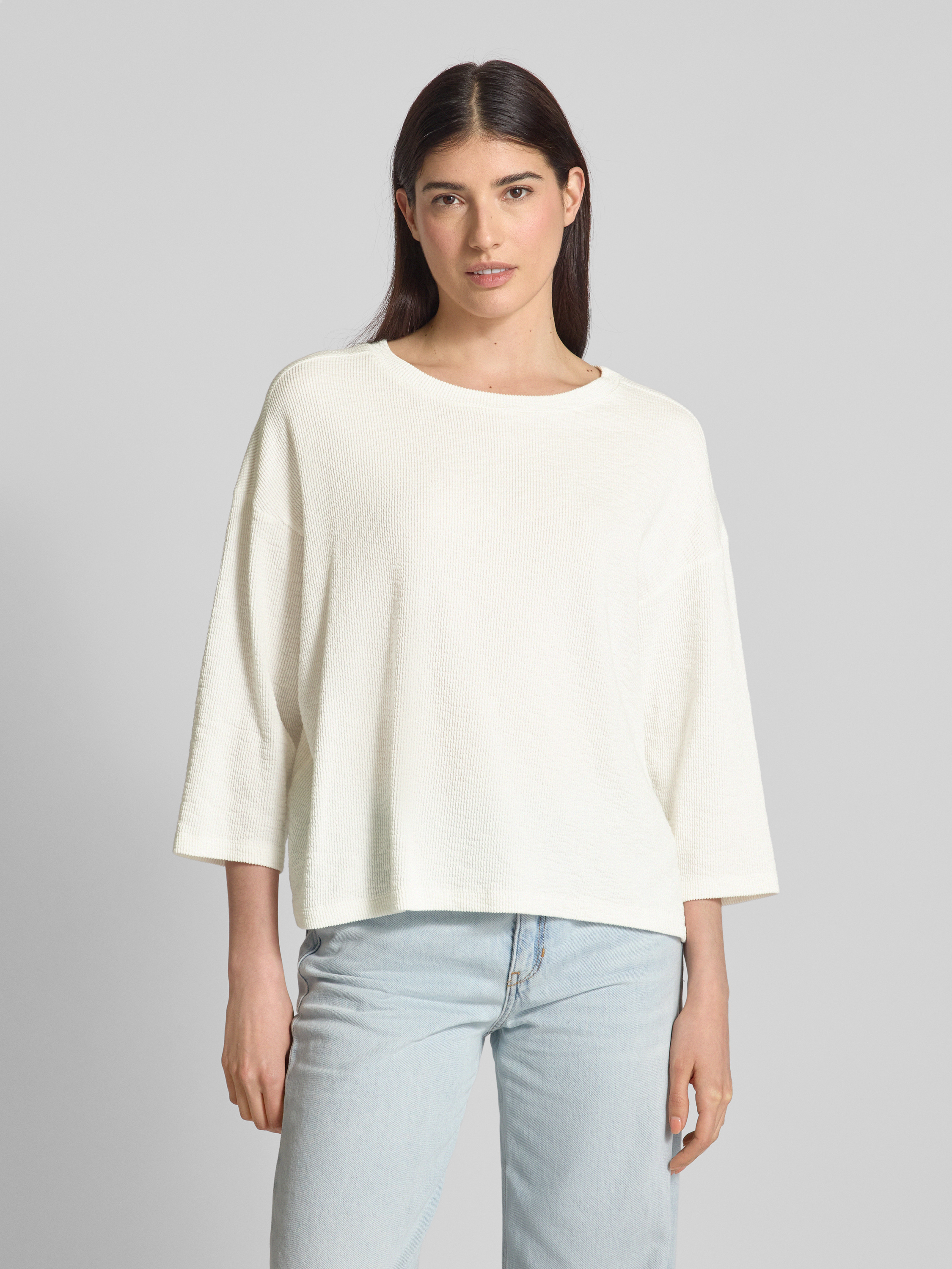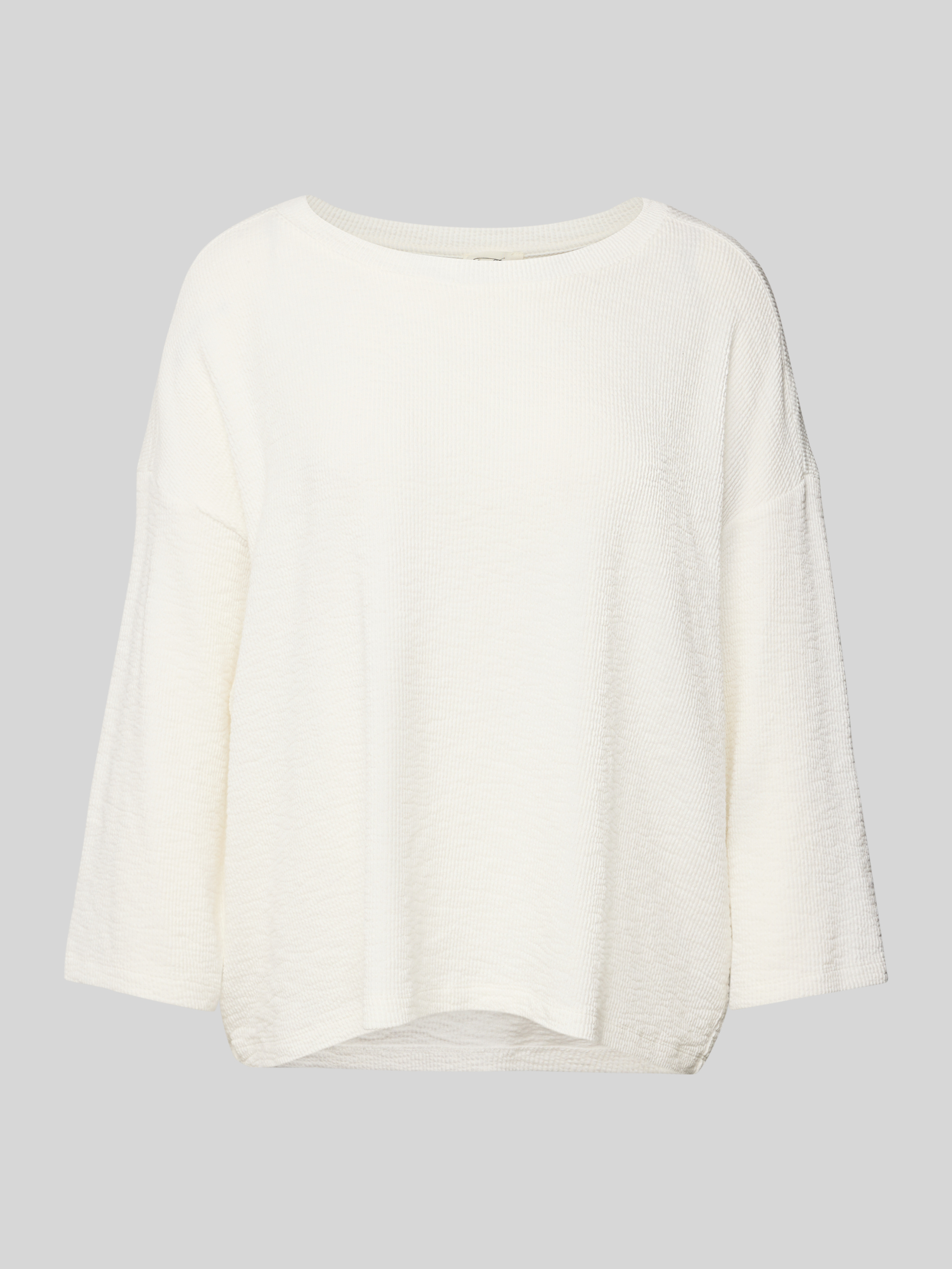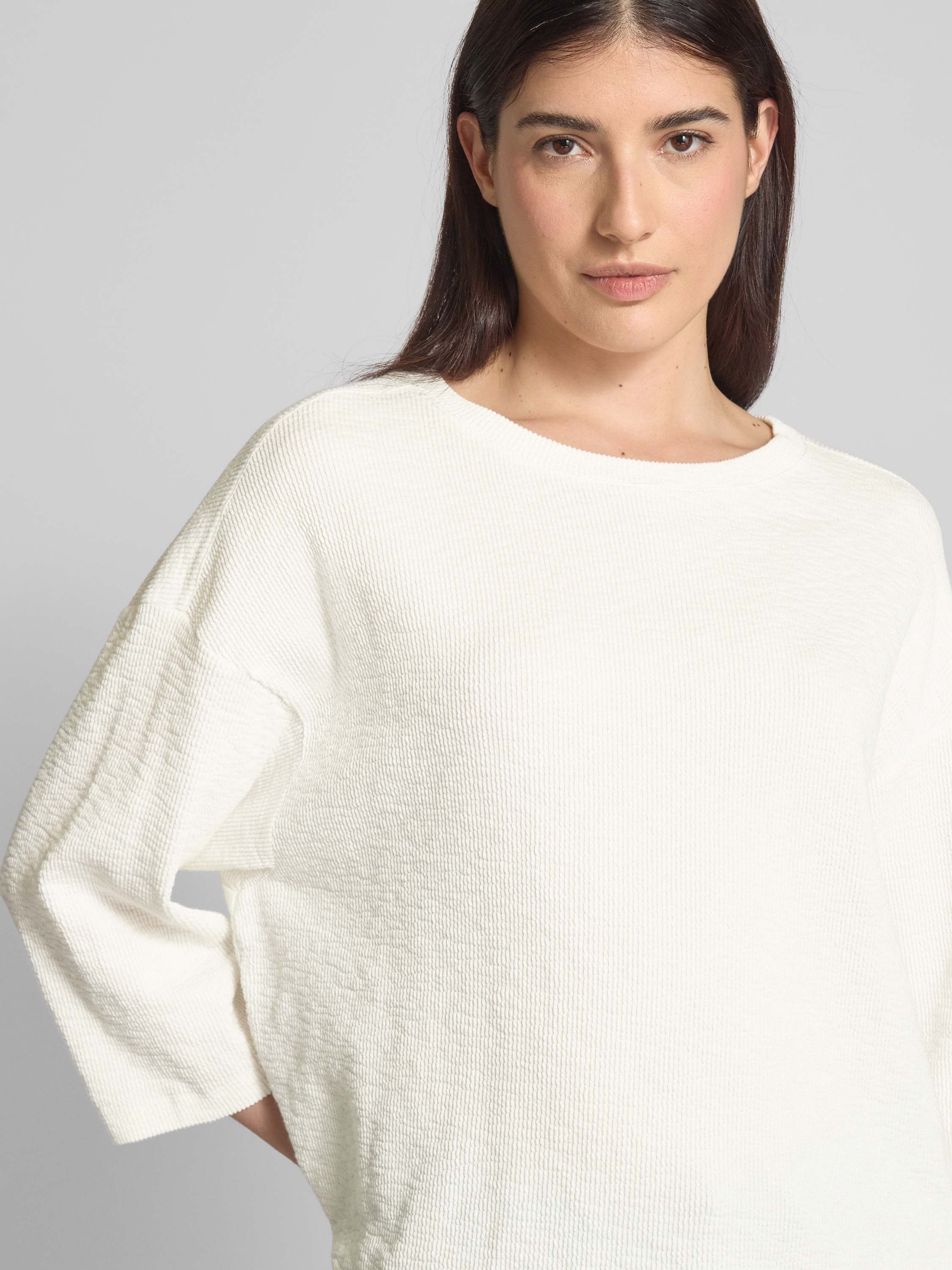 Bluzka z długim rękawem i prążkowanym, okrągłym dekoltem model ‘YRUKI’ - biały