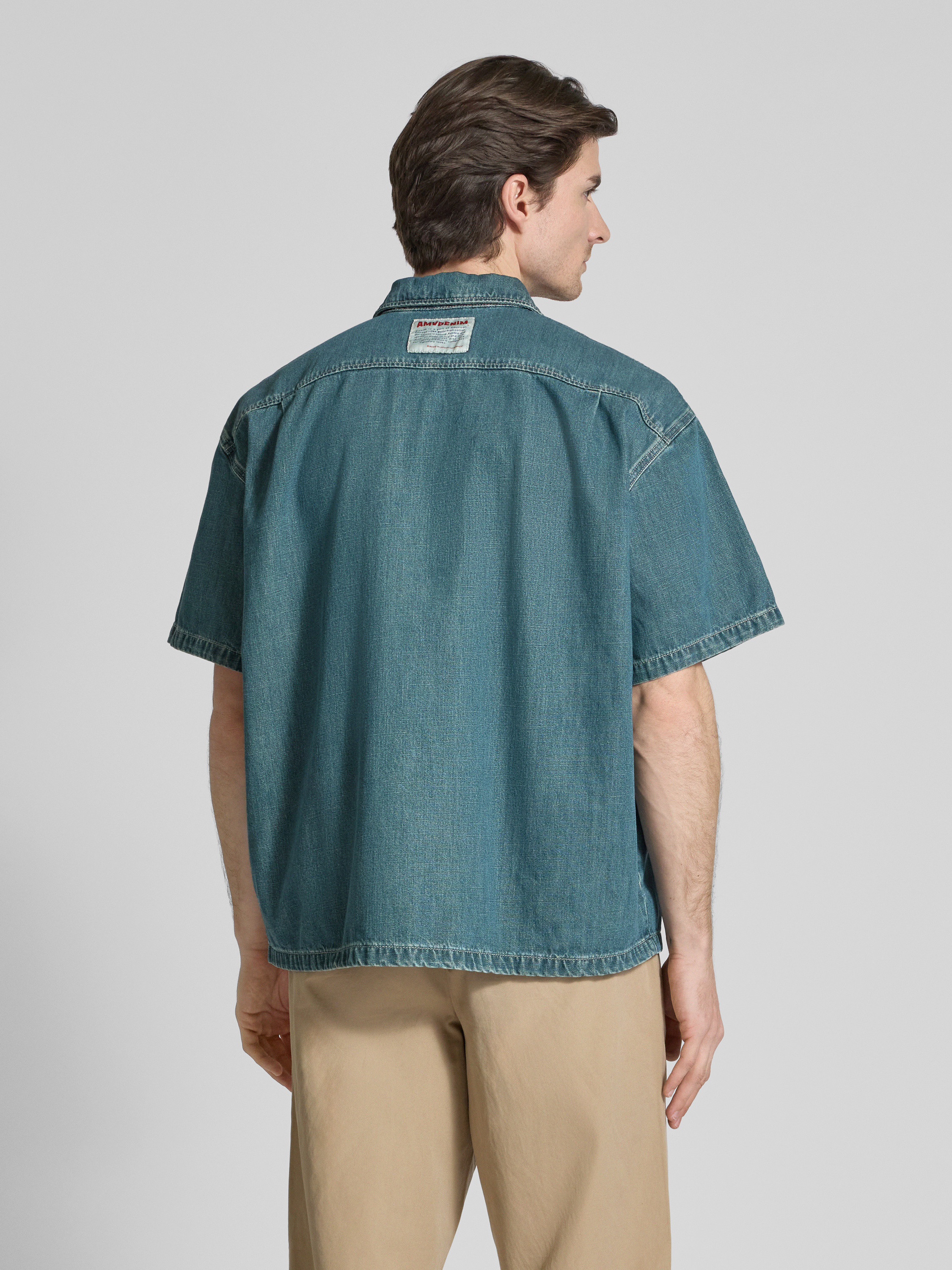 Koszula casualowa z imitacji denimu model ‘OZYR’ - ciemnoniebieski