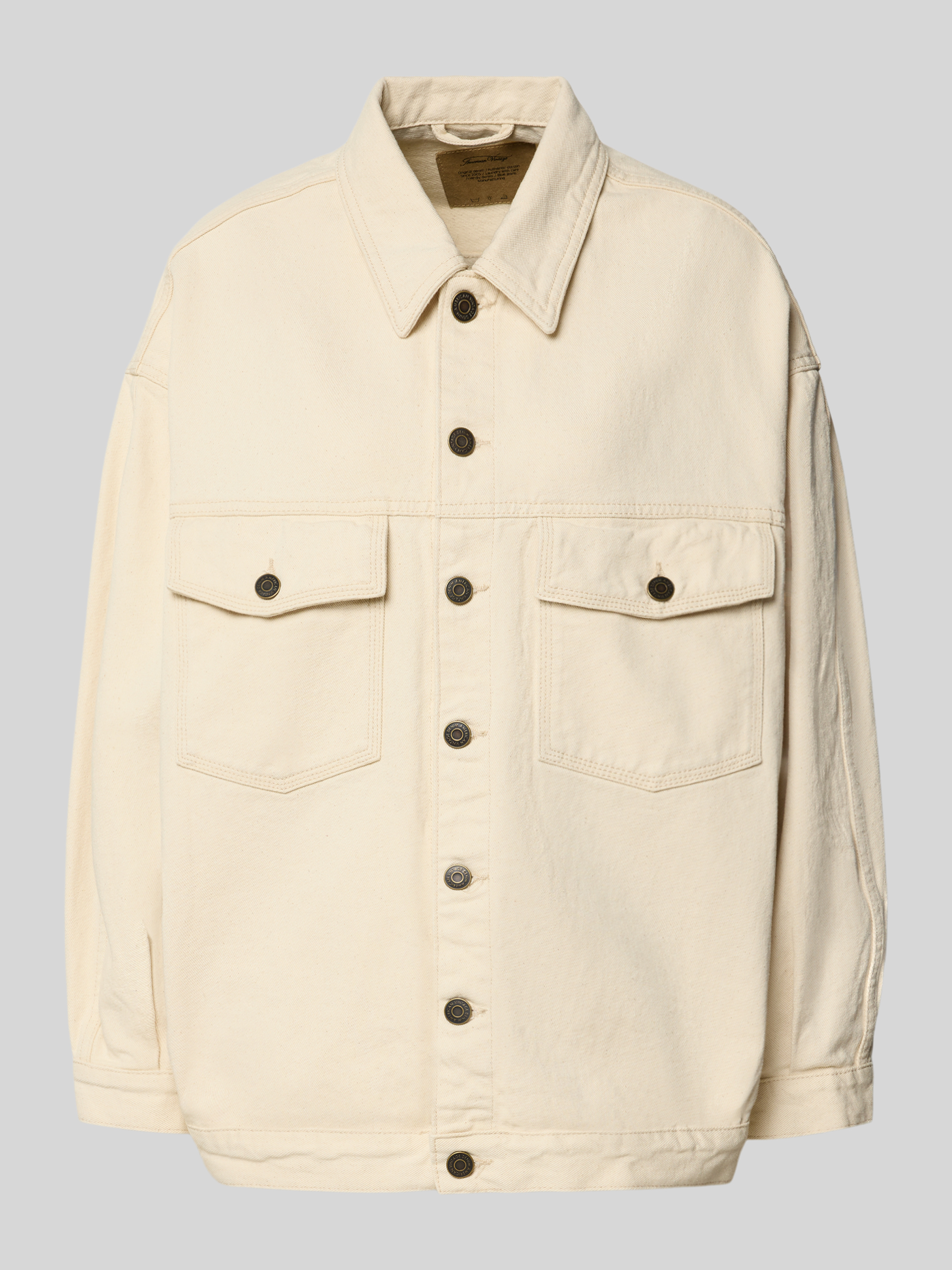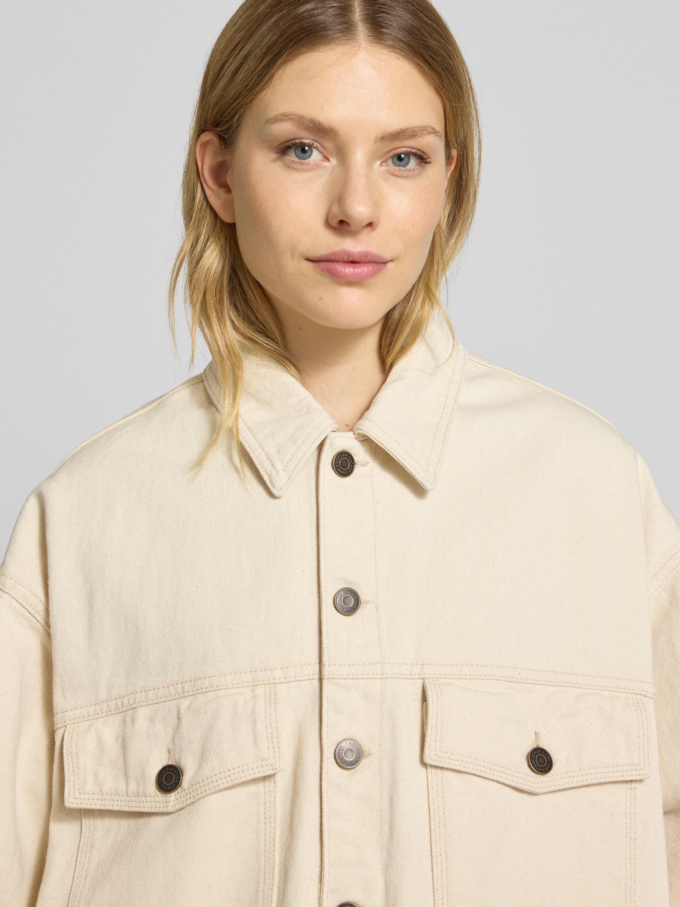 Kurtka jeansowa z kieszeniami na piersi model ‘SNOPDOG’ - écru melanż