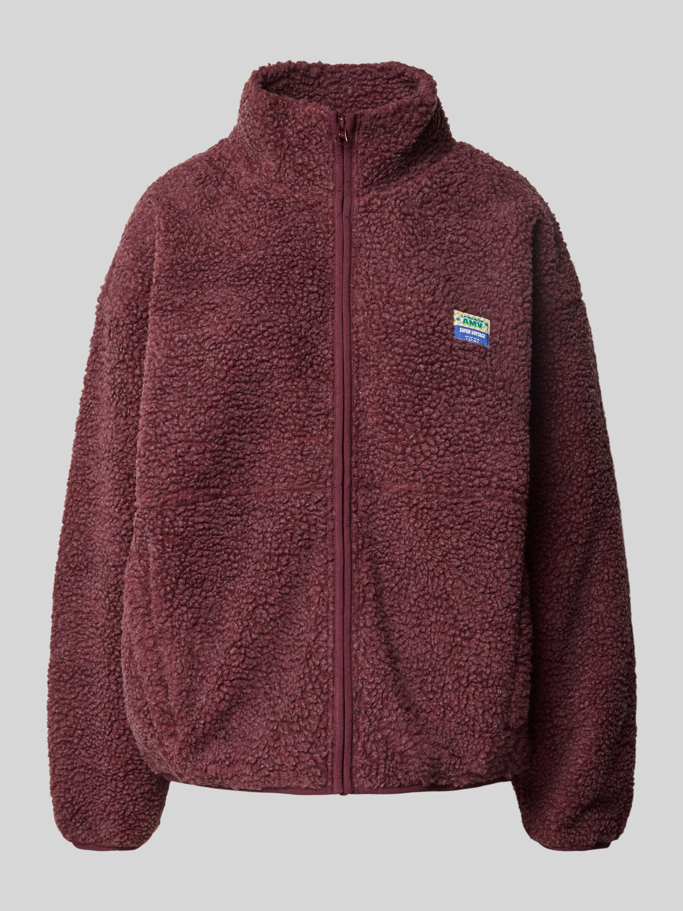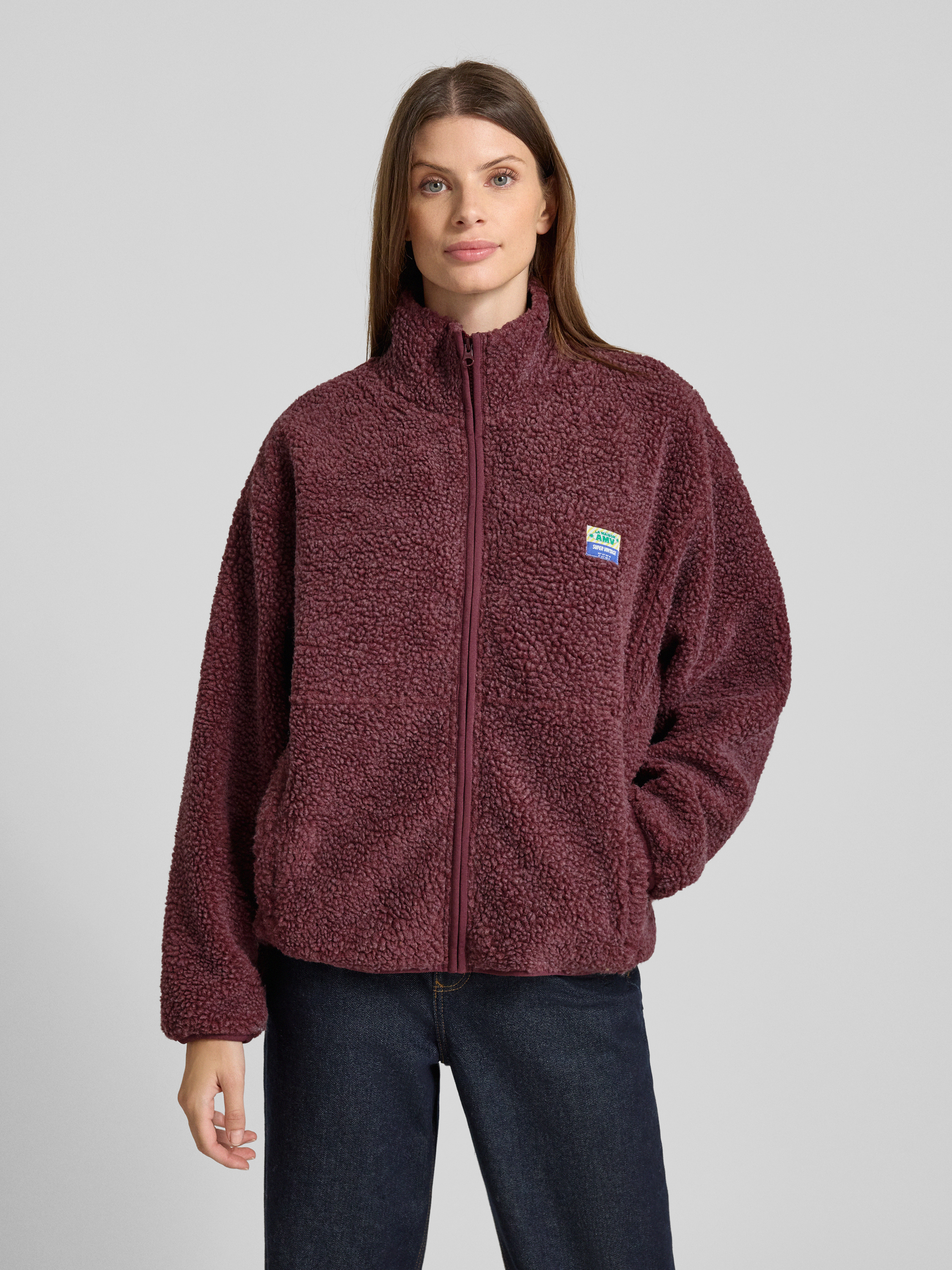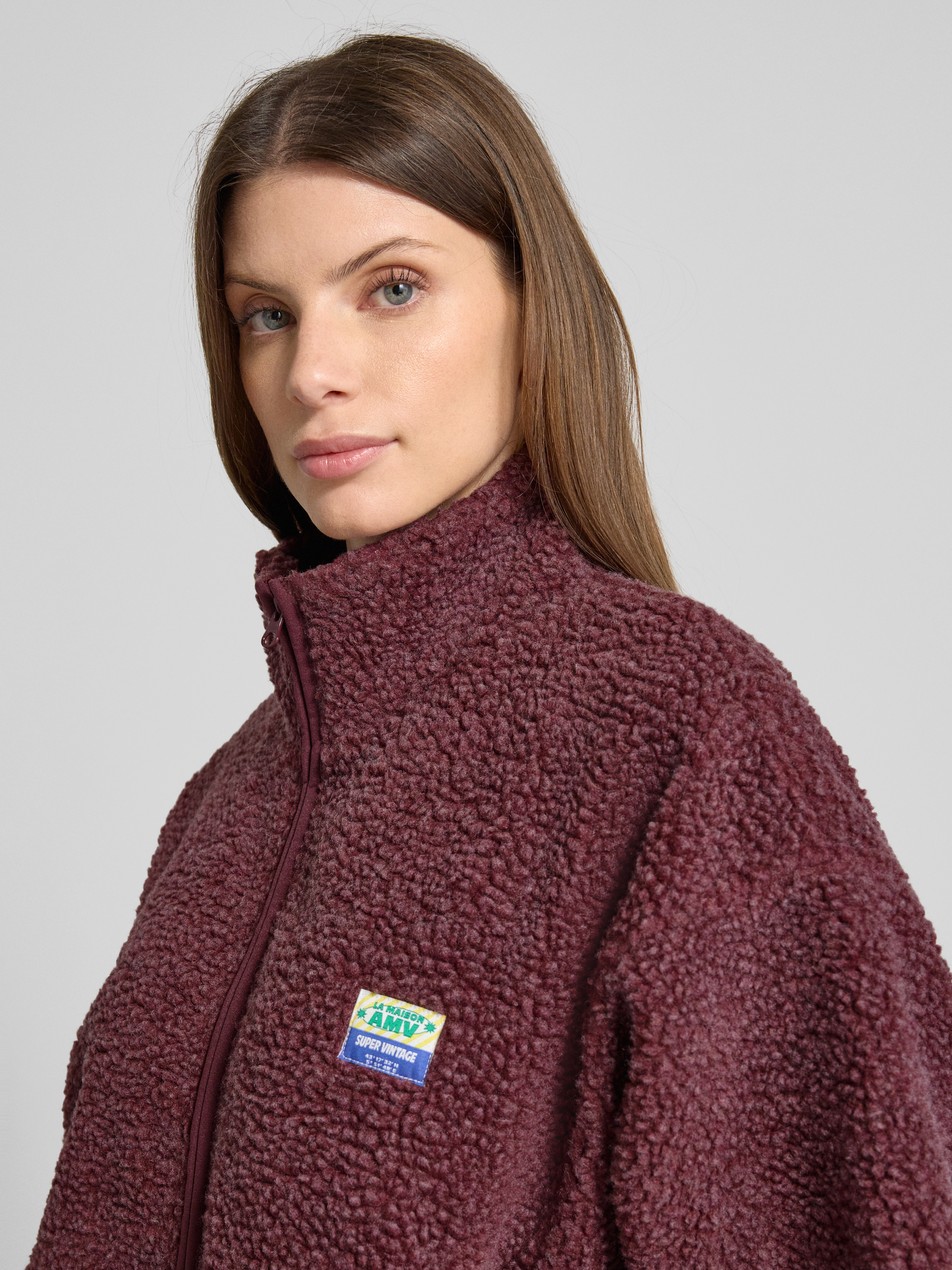 Kurtka z polaru ze stójką i detalem z logo model ‘HOKTOWN’ - bordowy melanż