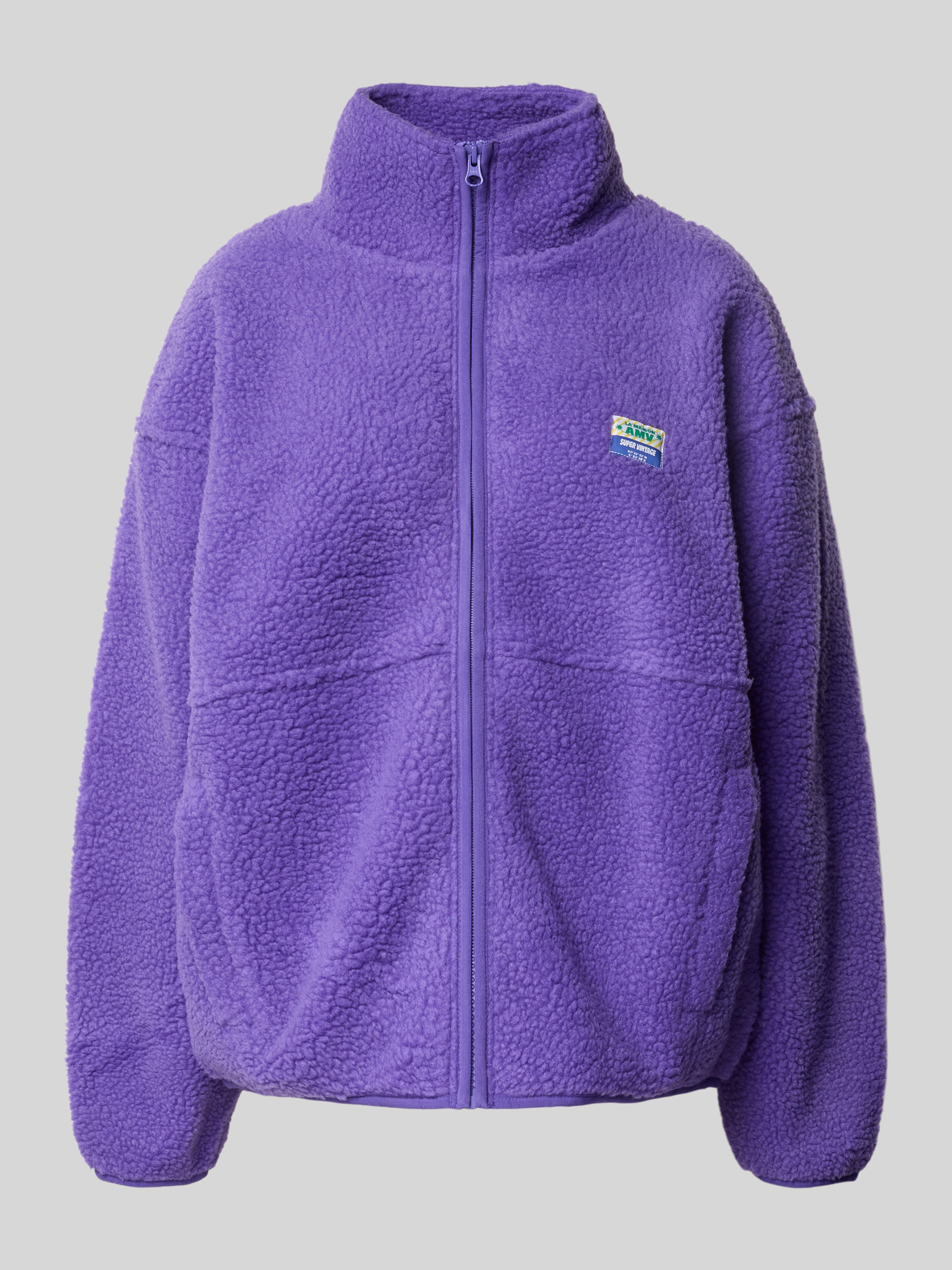 Kurtka z polaru ze stójką i detalem z logo model ‘HOKTOWN’ - purpurowy