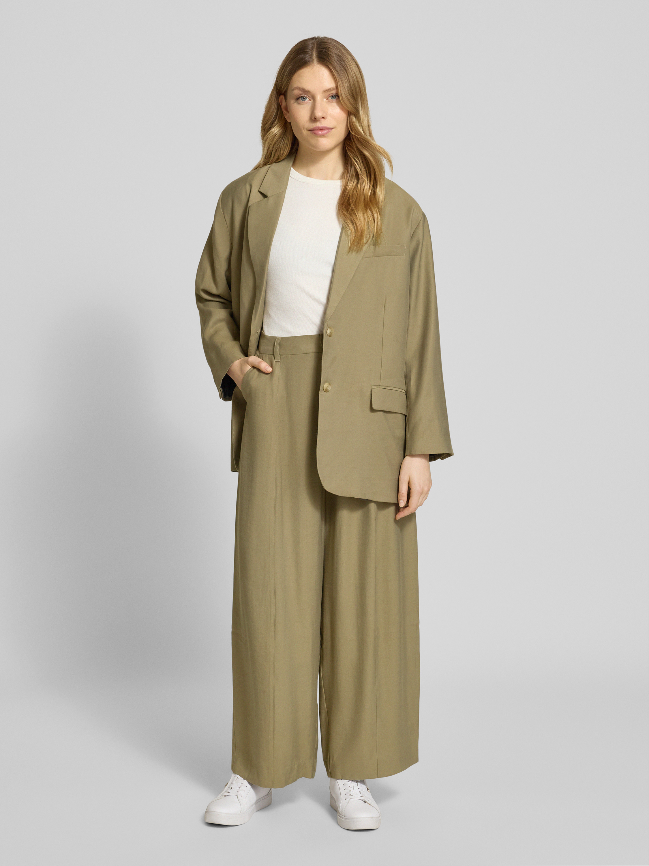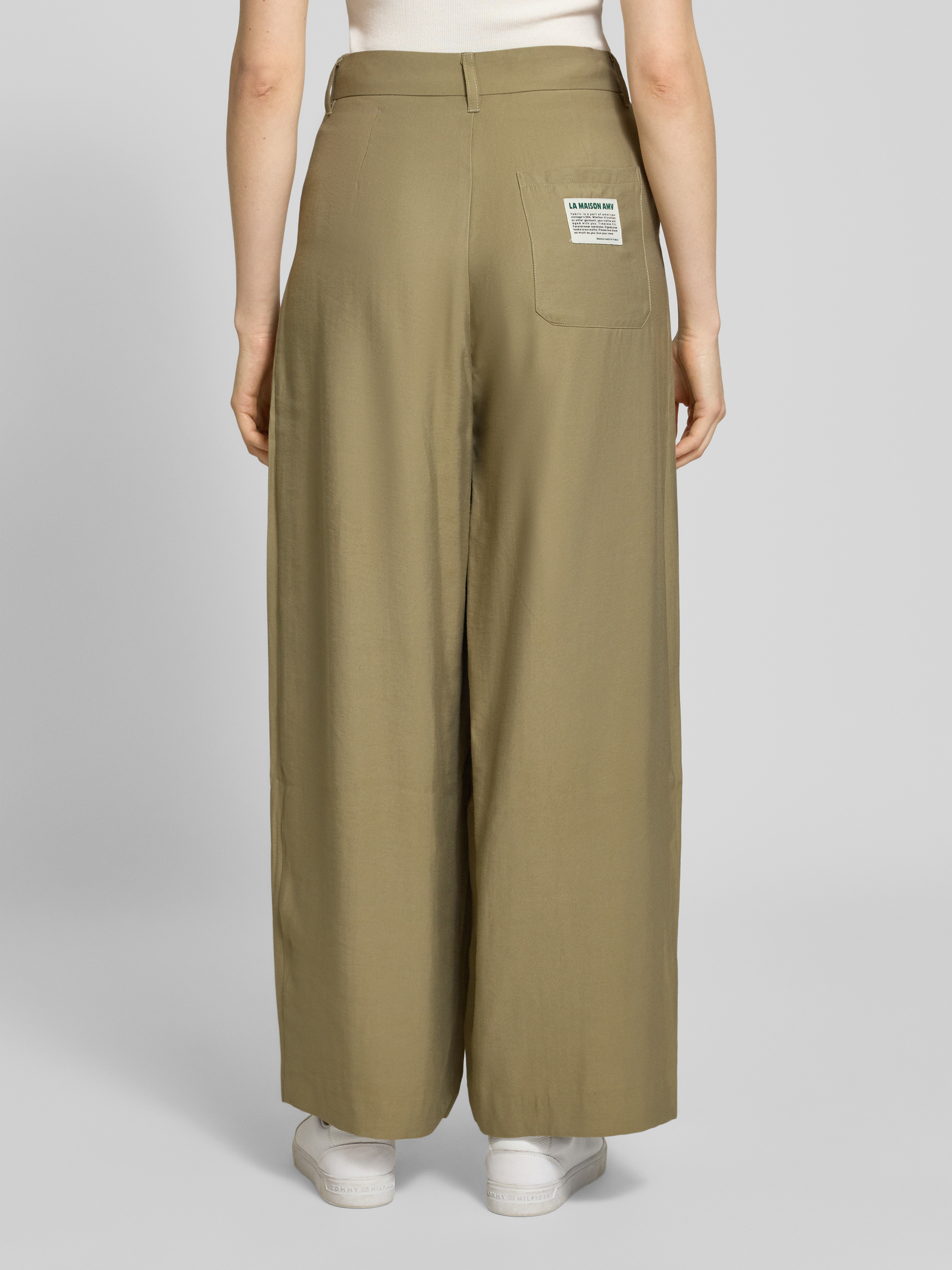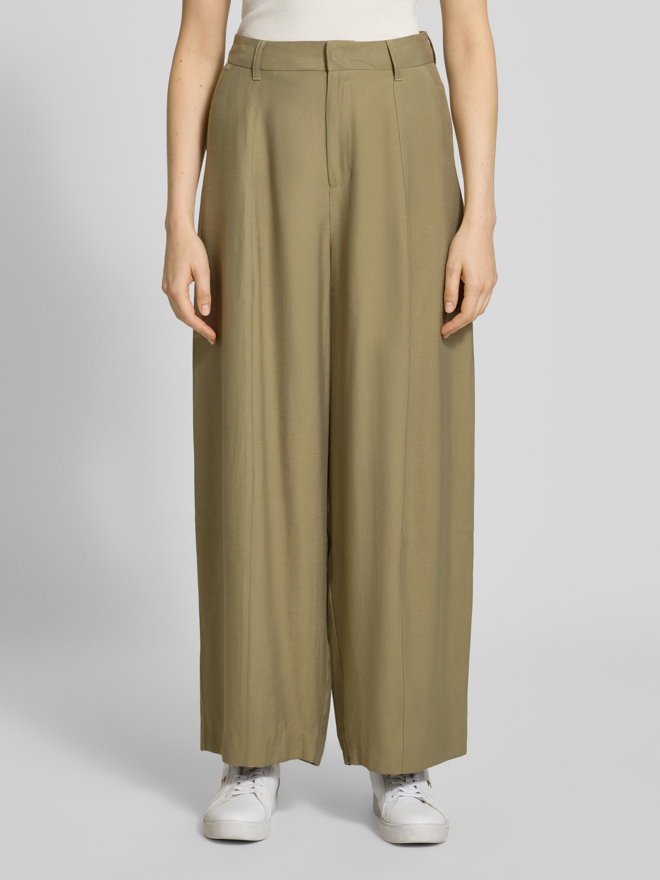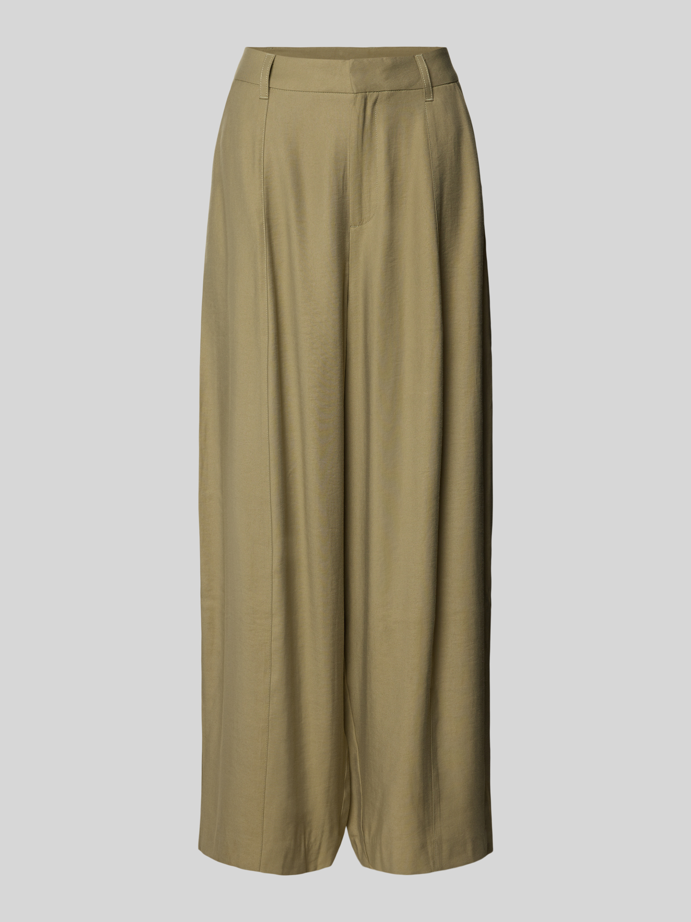 Spodnie materiałowe o szerokim kroju ze szwami podłużnymi model ‘LANOW’ - oliwkowy