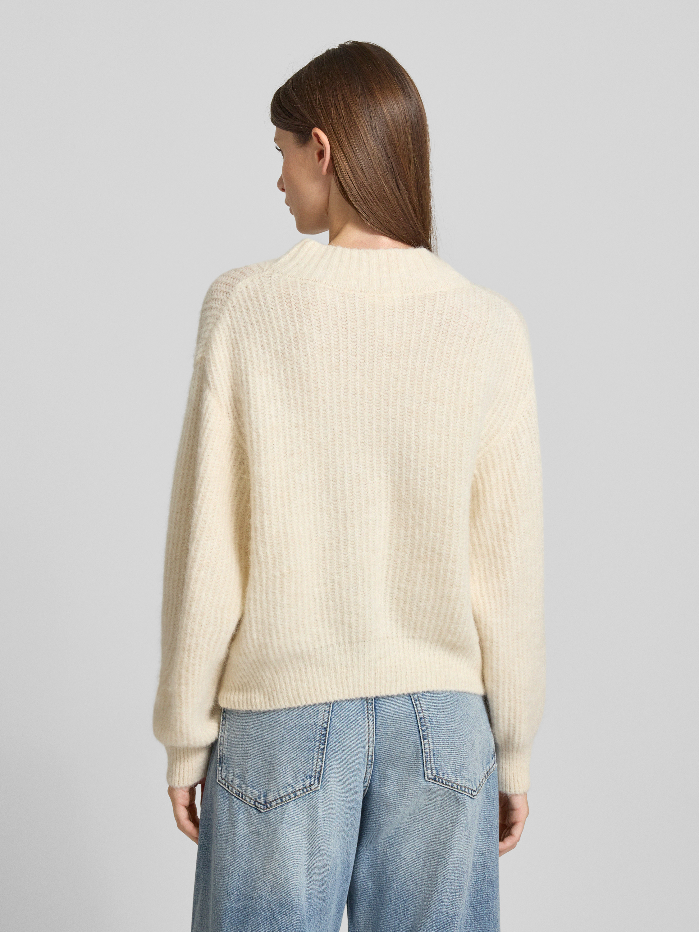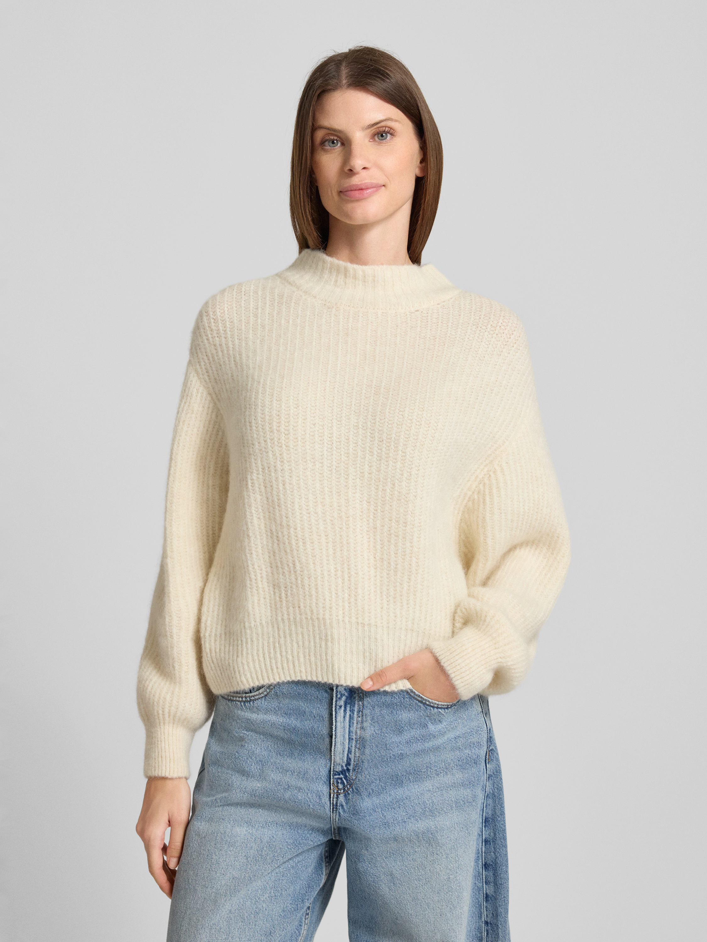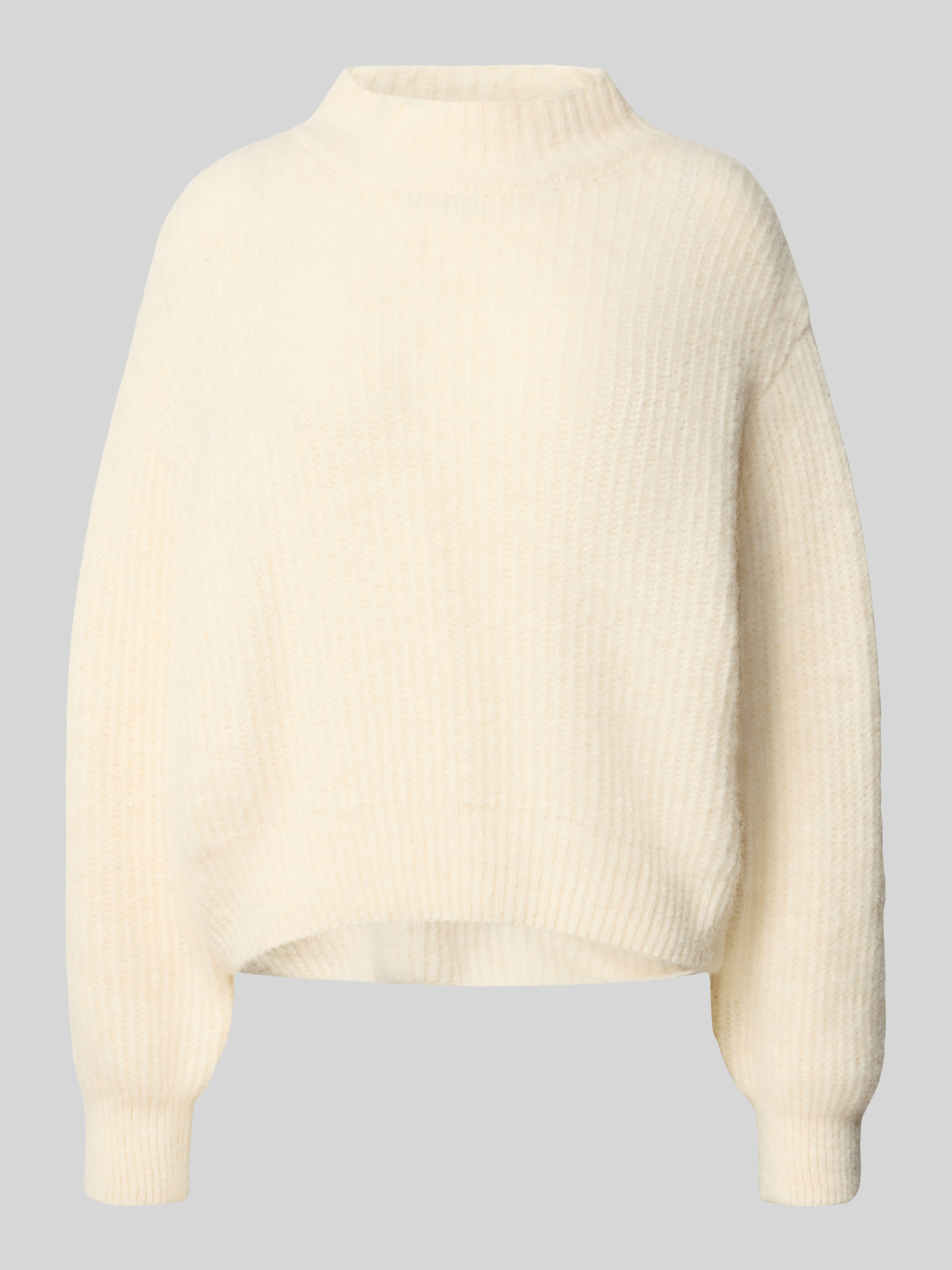 Sweter z dzianiny o kroju oversized ze stójką - złamany biały melanż