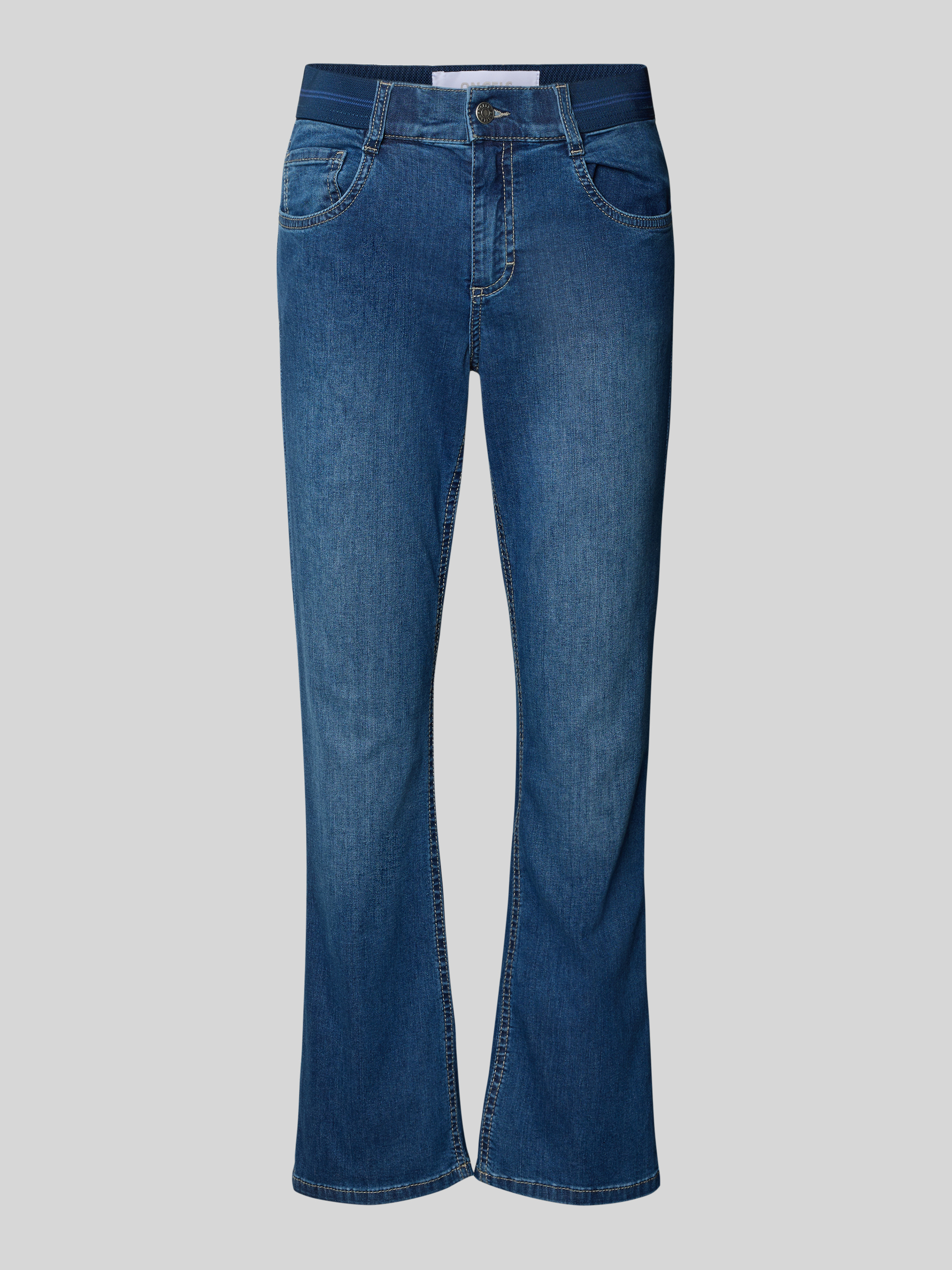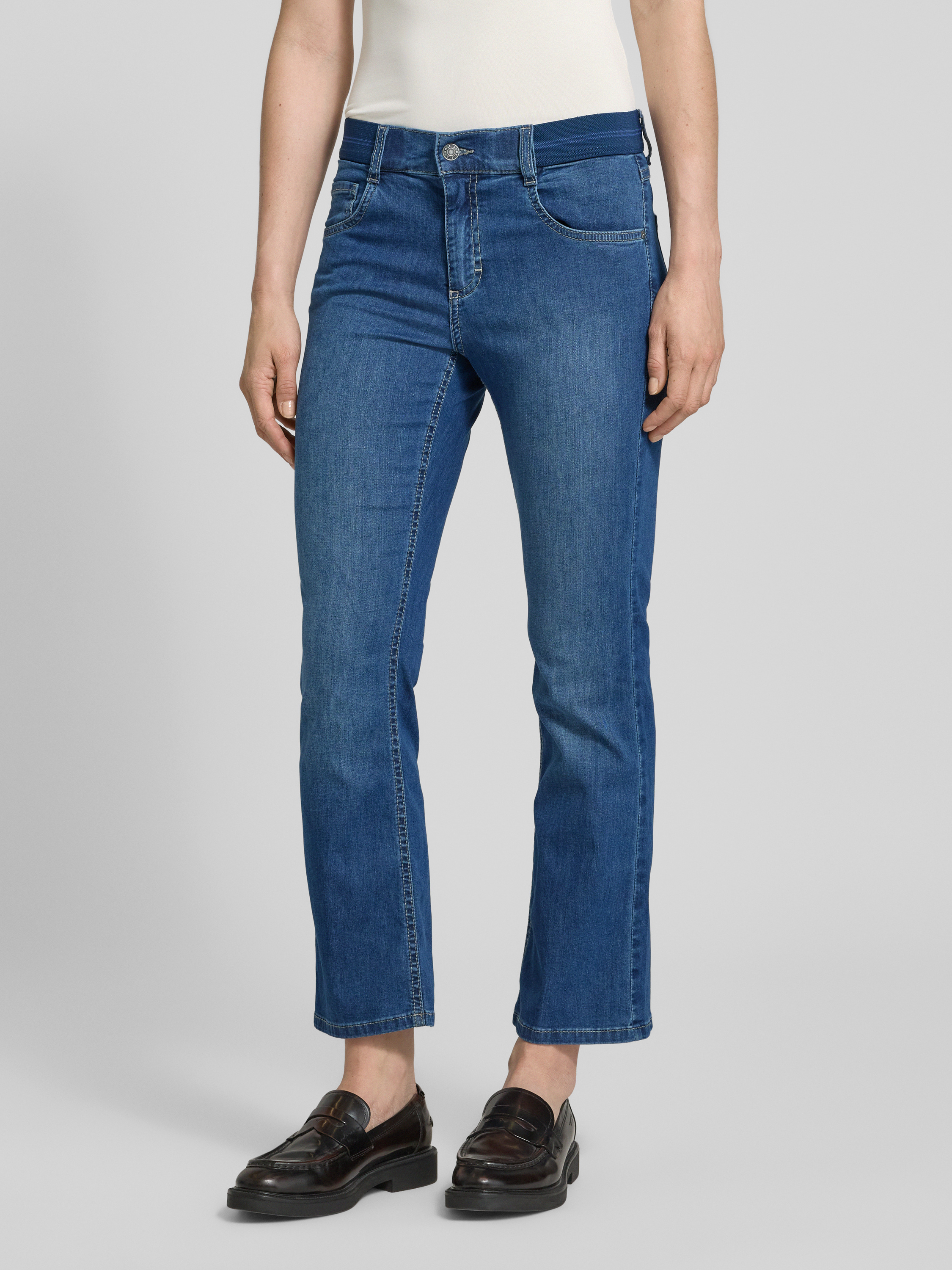 Jeansy z poszerzaną nogawką o skróconym kroju model ‘LENI’ - ciemnoniebieski