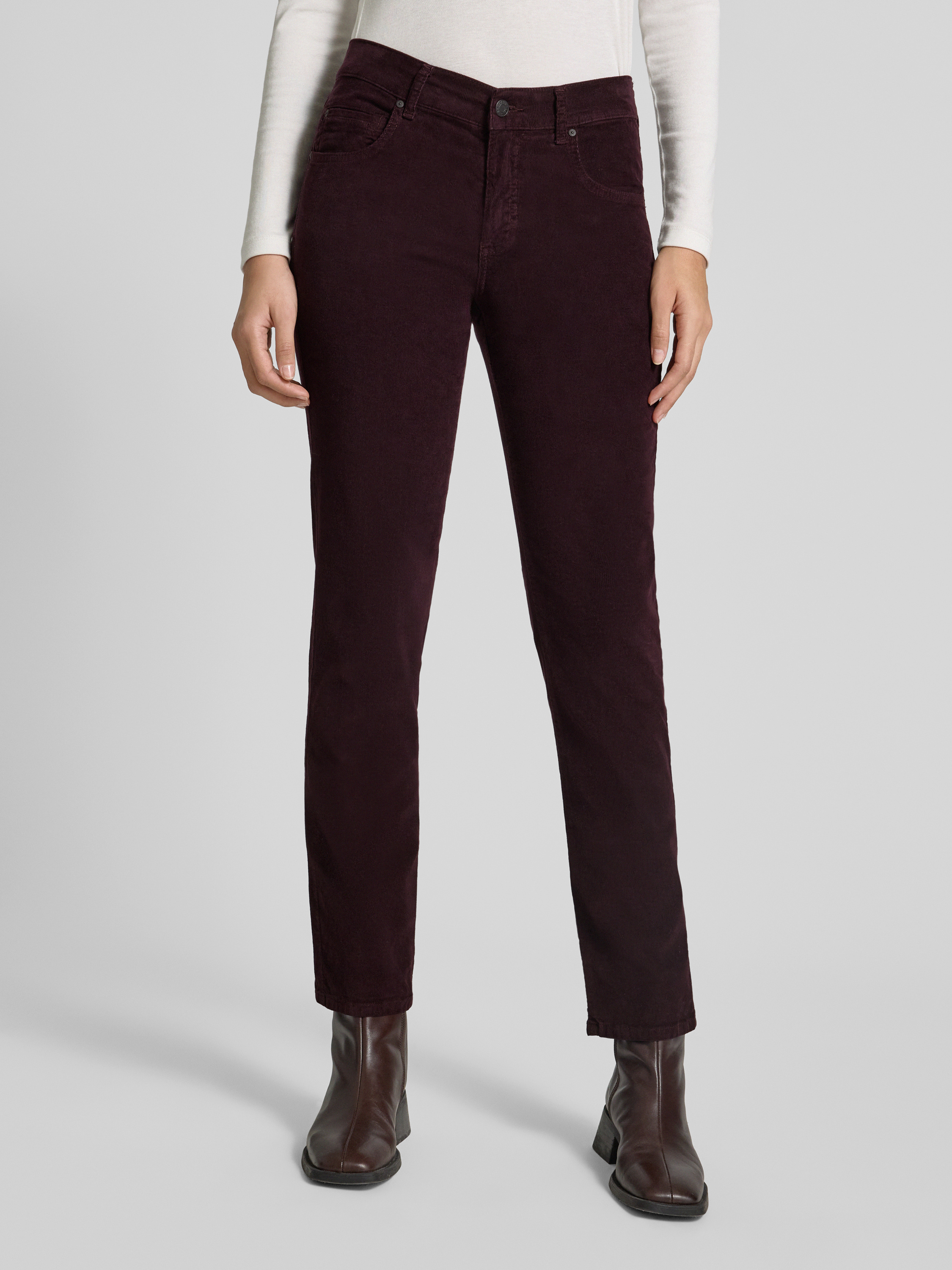 Spodnie sztruksowe z wpuszczanymi kieszeniami model ‘Cici’ - oberżynowy