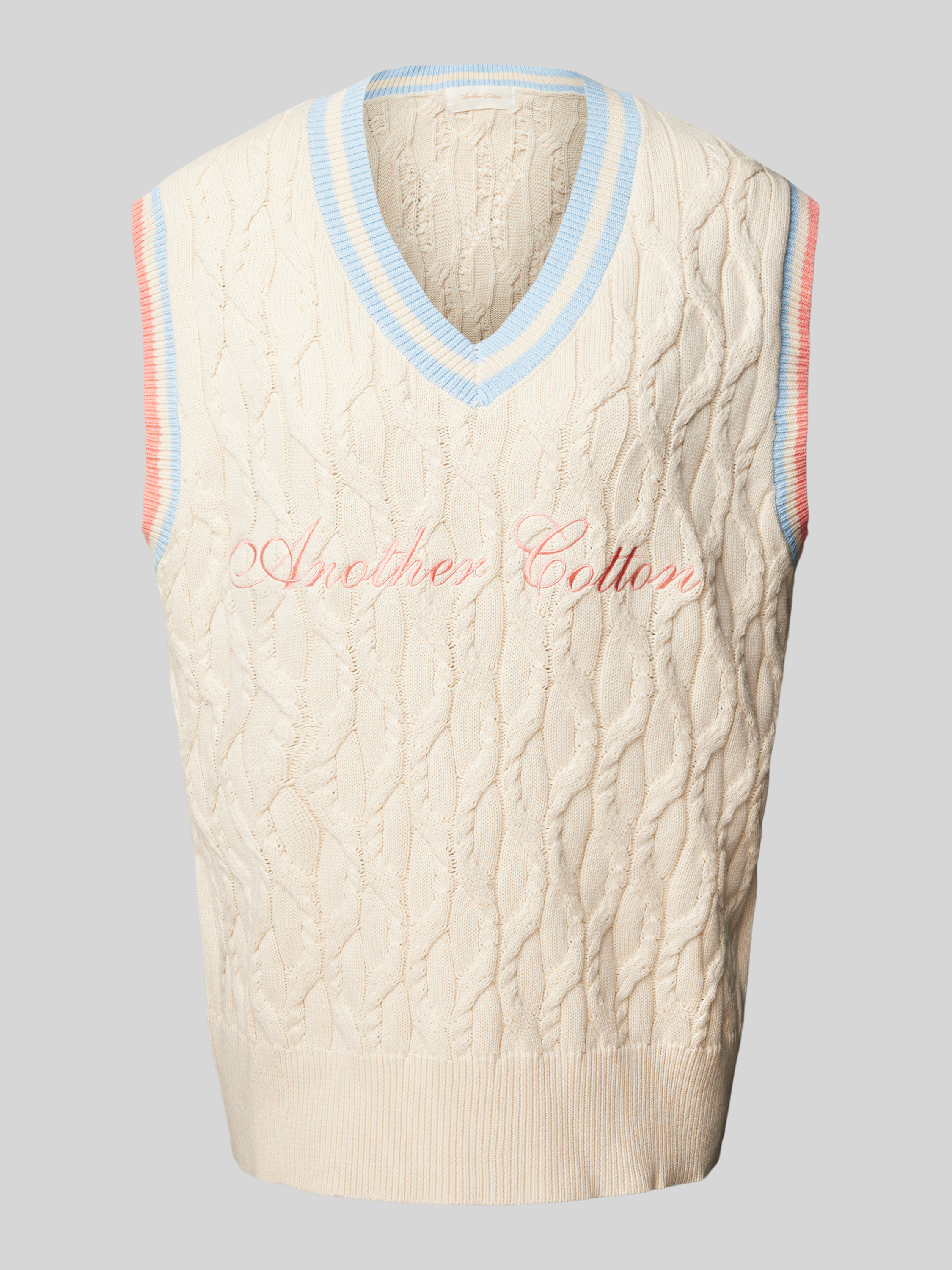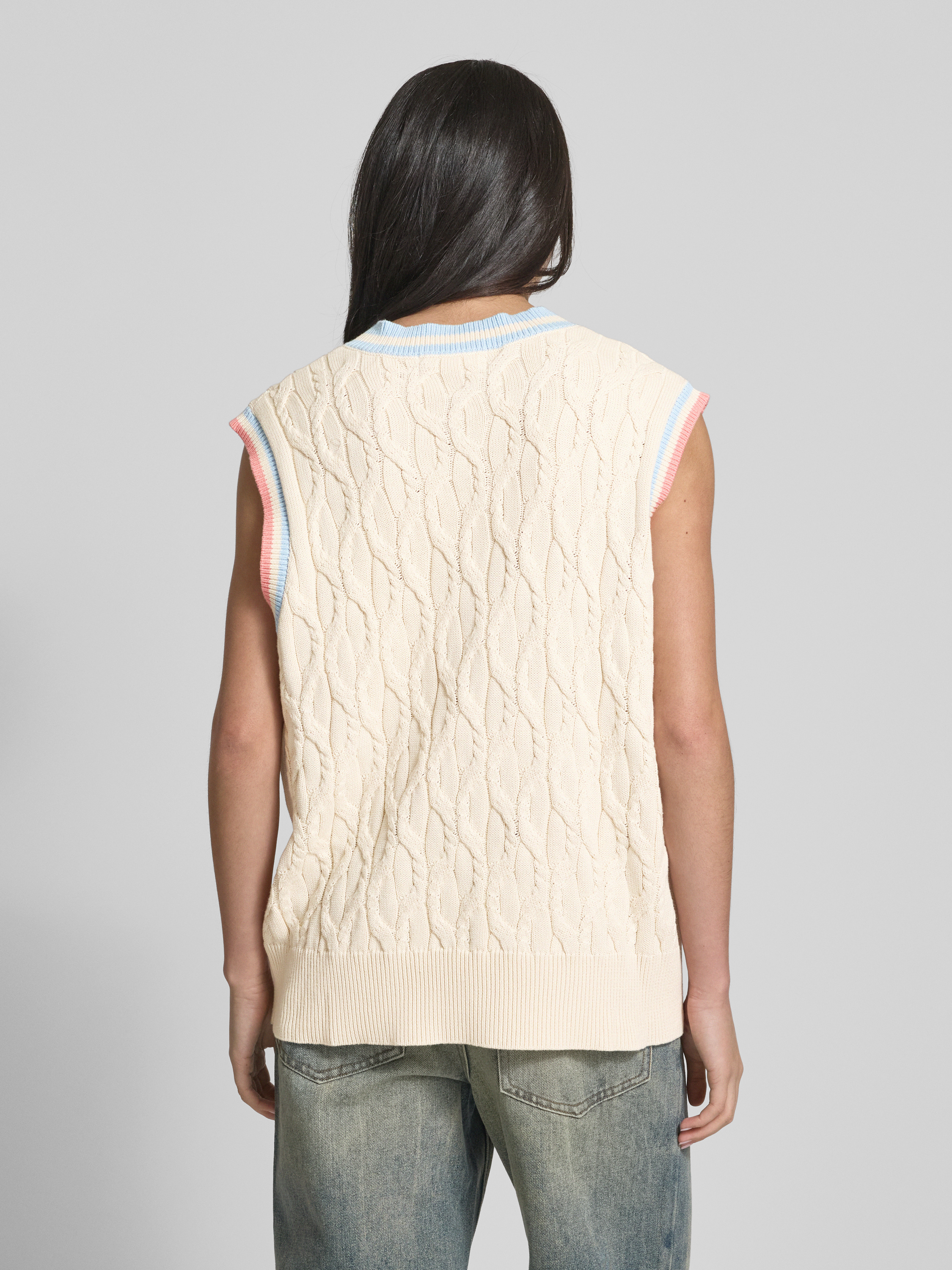 Bezrękawnik z dzianiny z wyhaftowanym logo - złamany biały