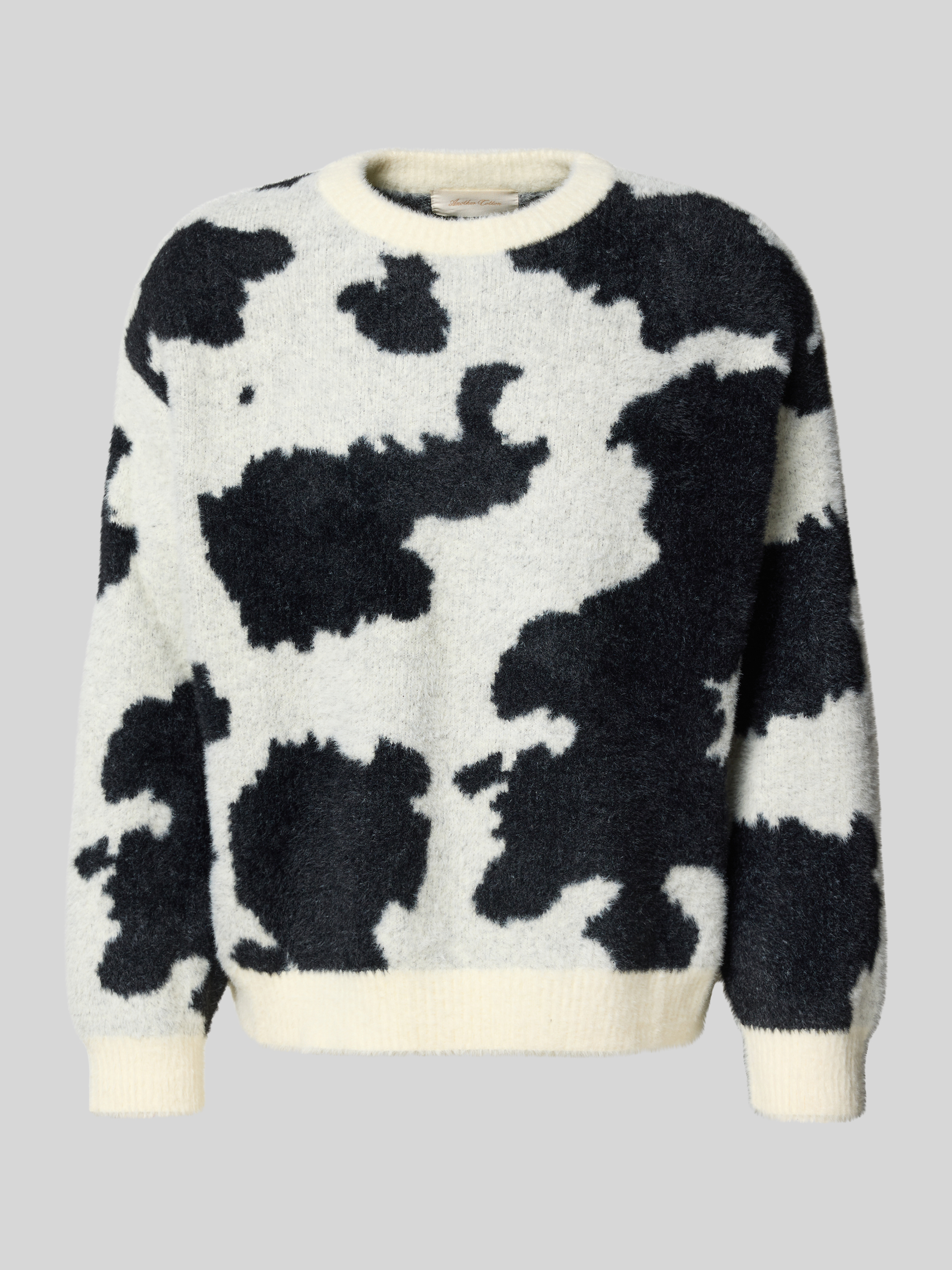 Sweter z dzianiny z okrągłym dekoltem - biały