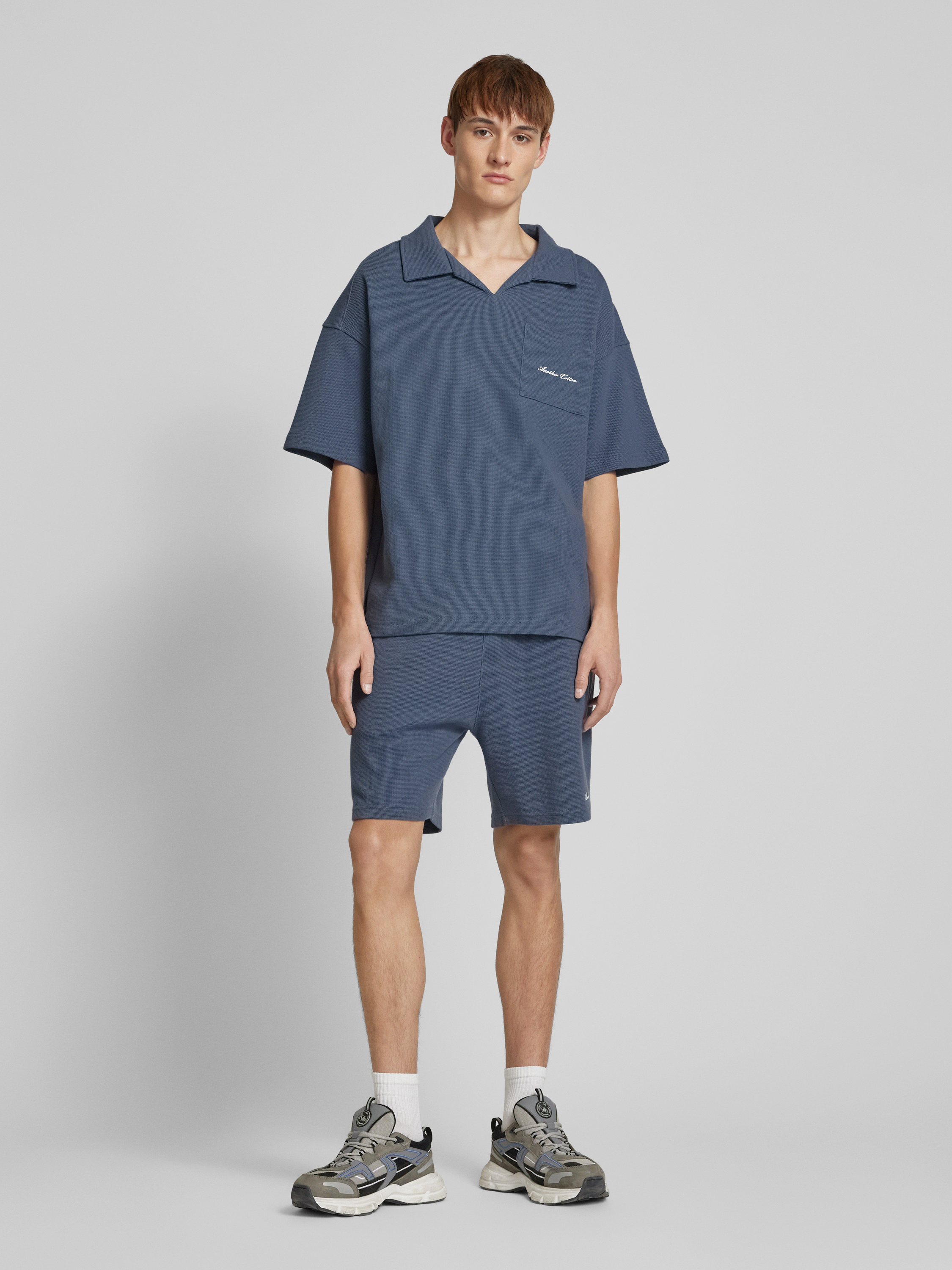 Szorty o kroju relaxed fit z fakturowanym wzorem - ciemnoniebieski