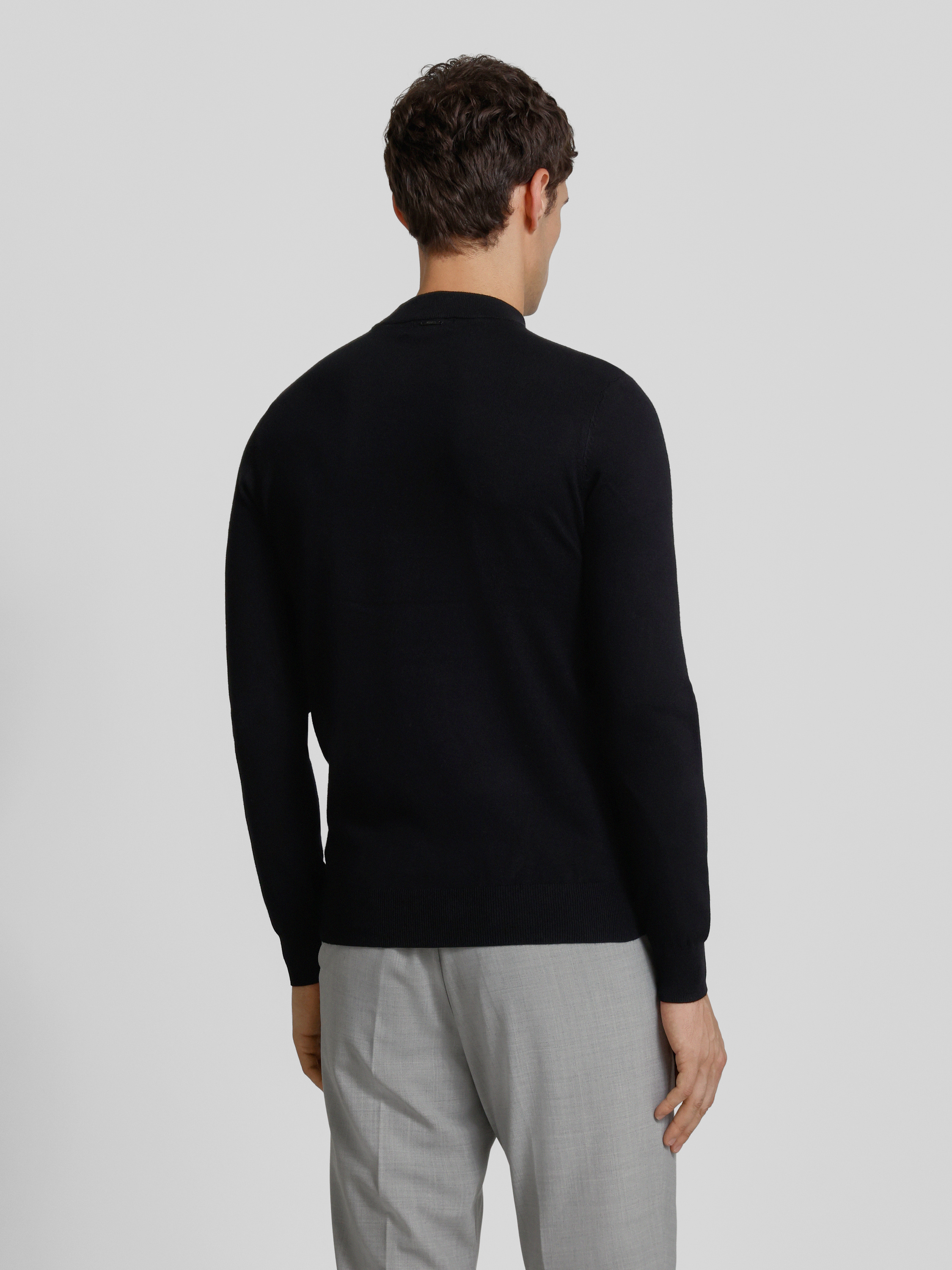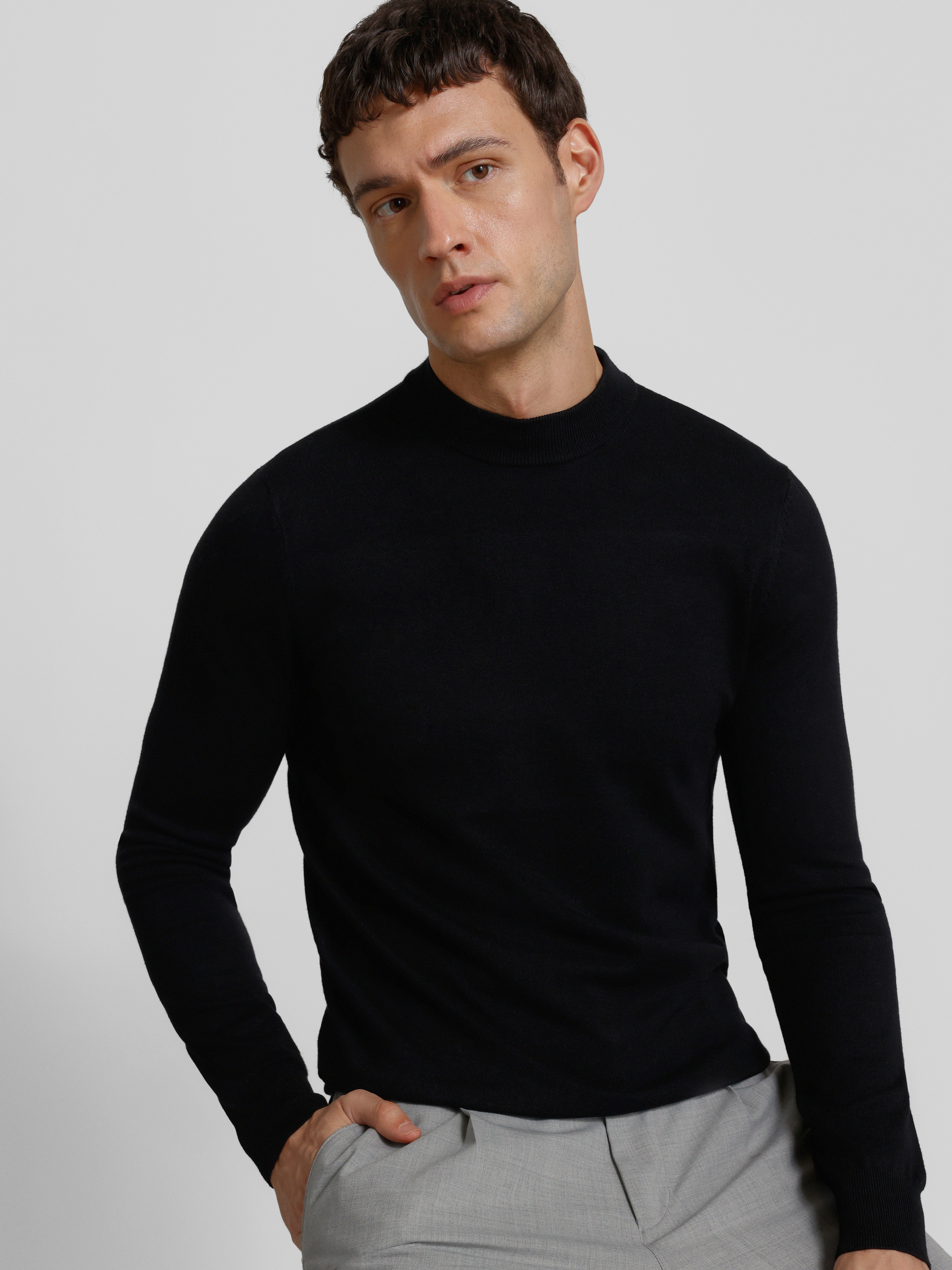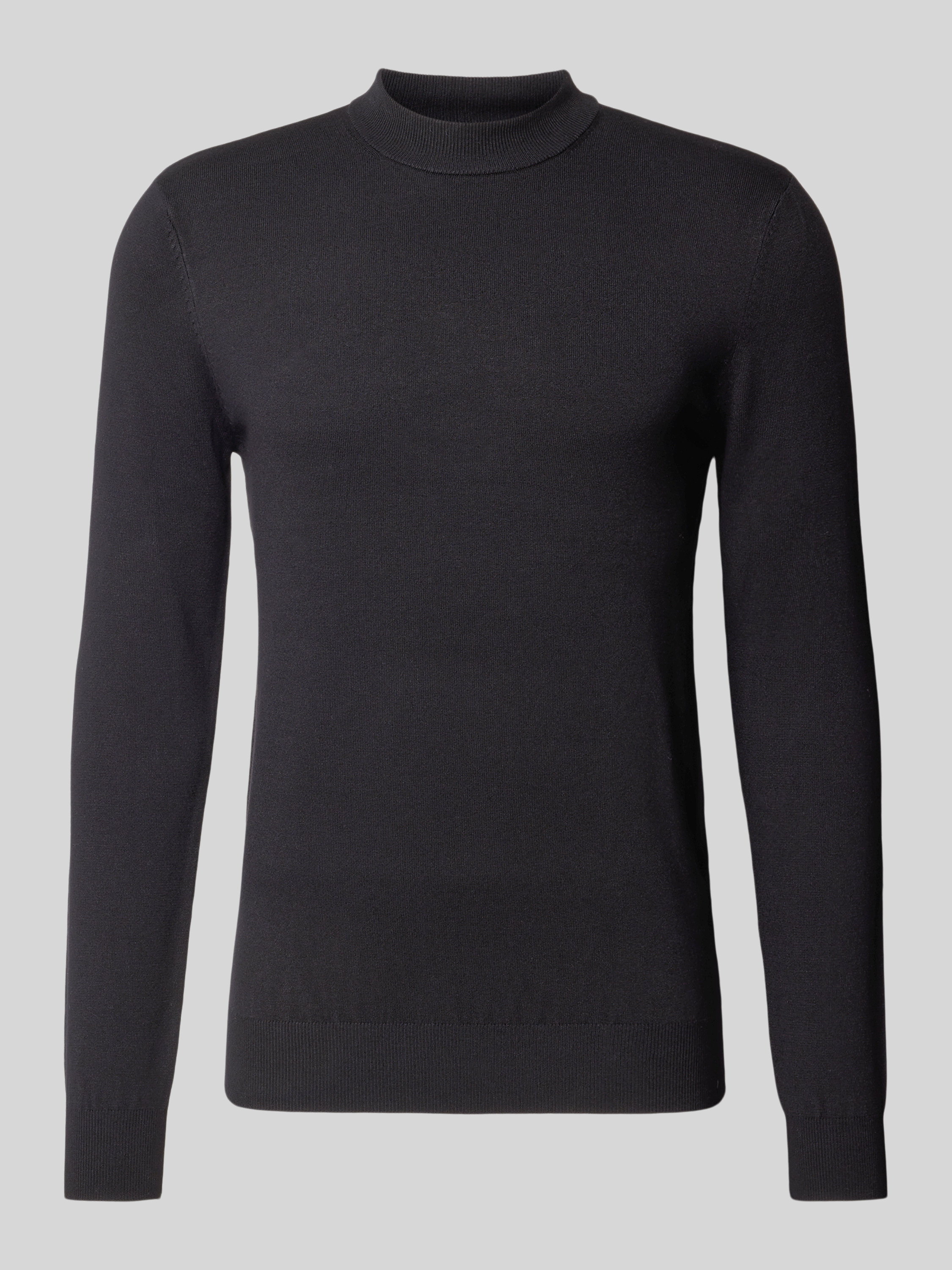 Sweter z dzianiny z prążkowanymi wykończeniami - czarny