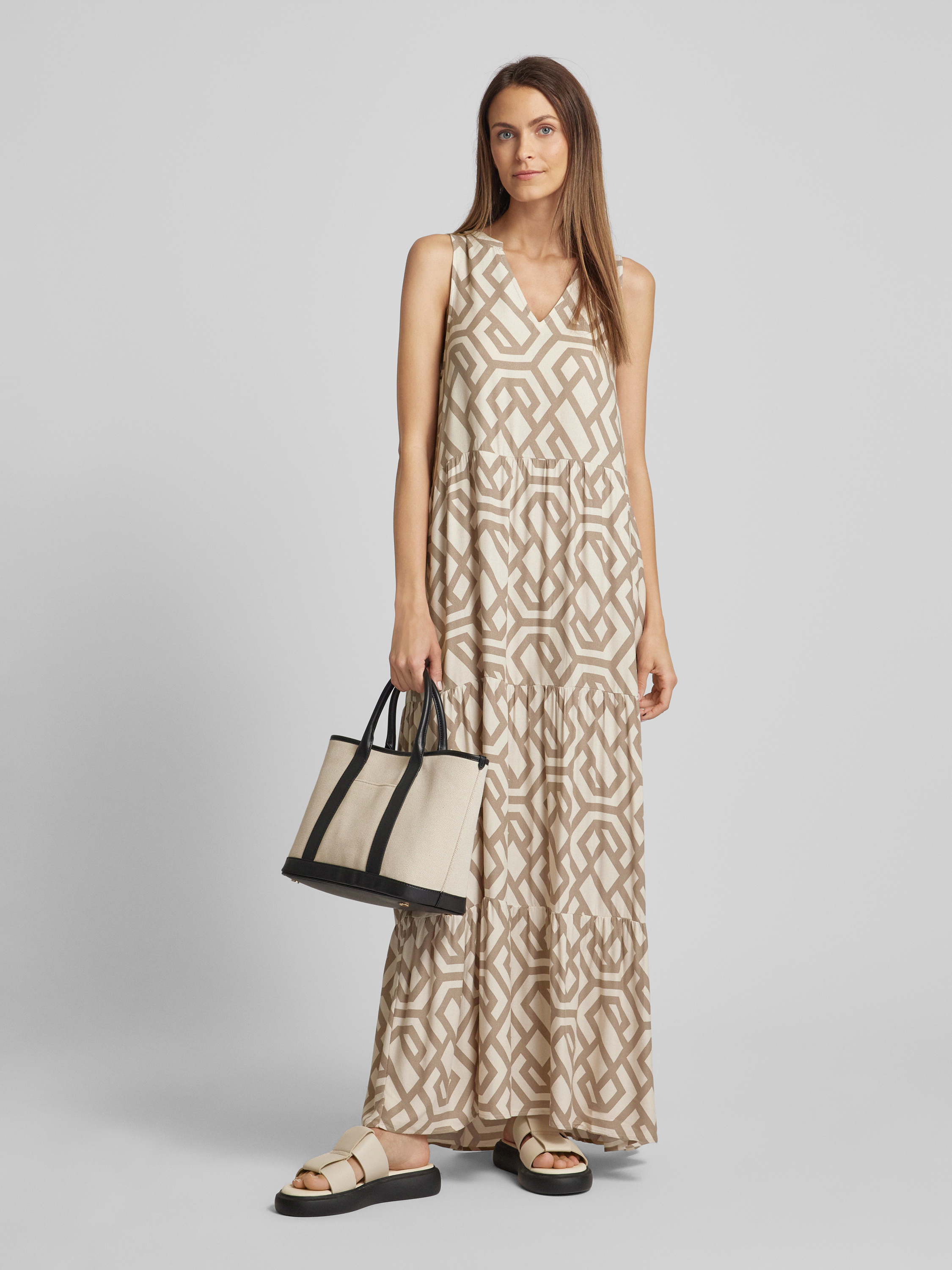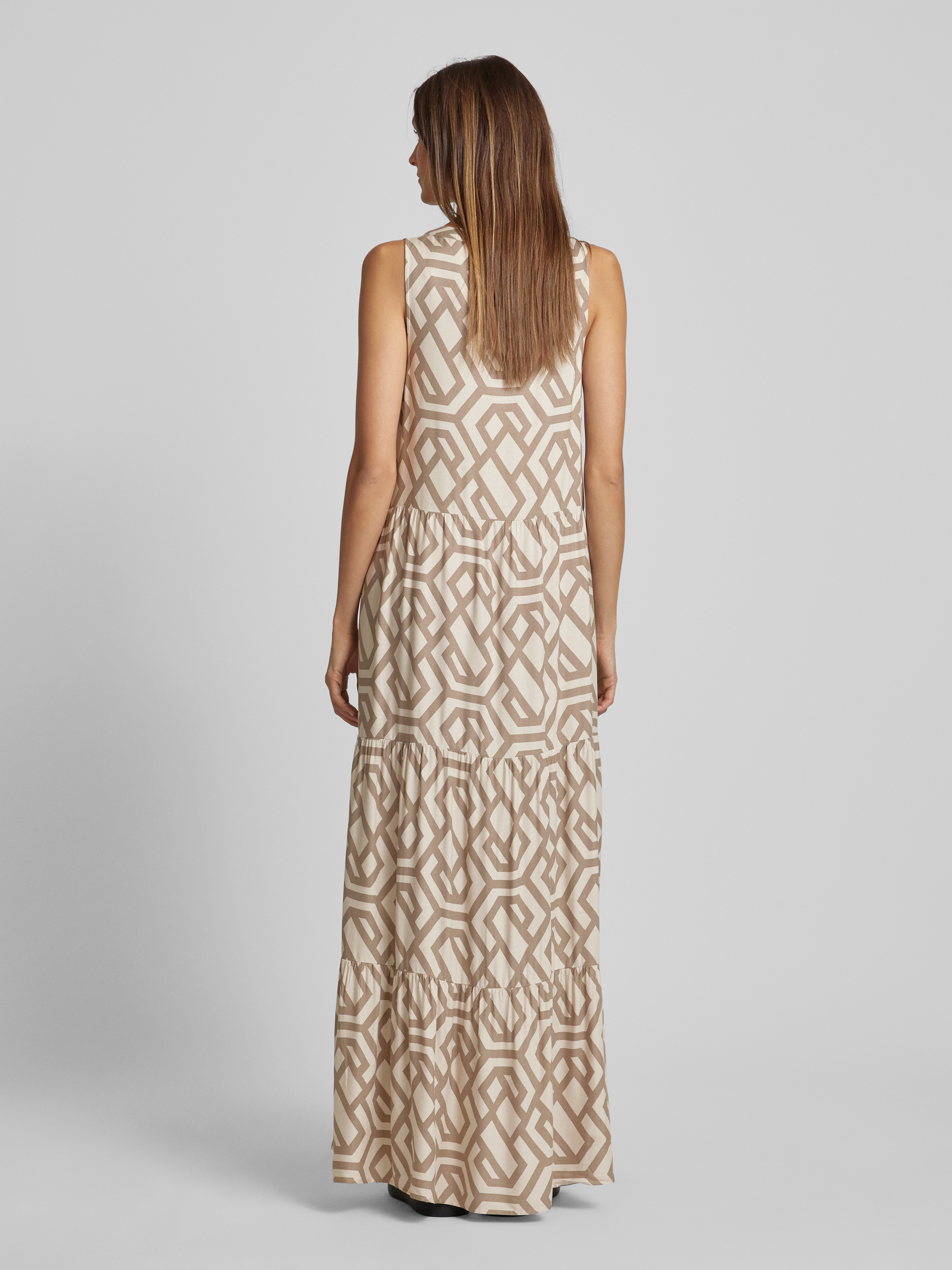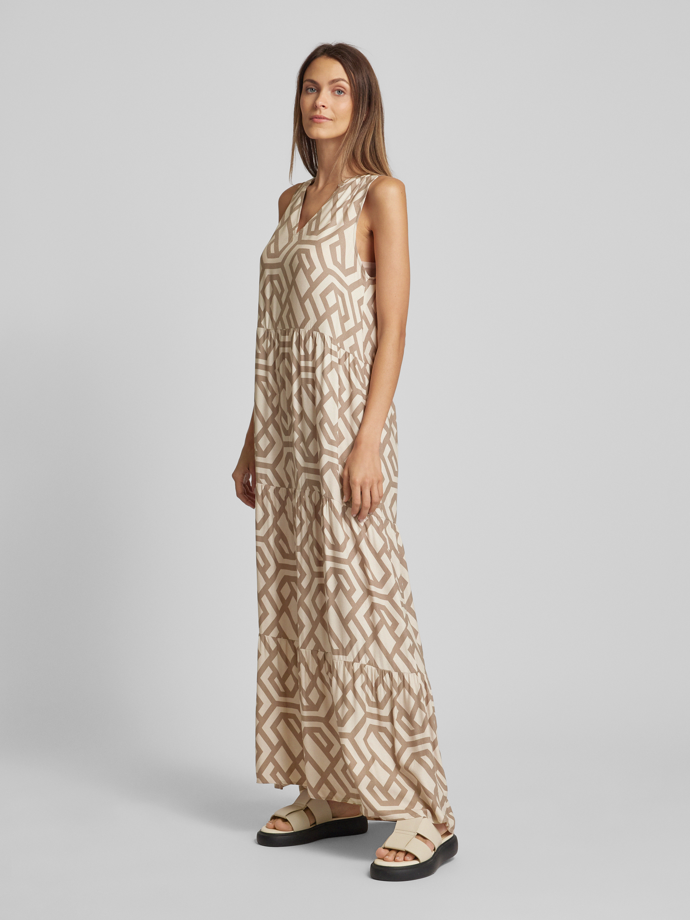 Długa sukienka z wiskozy ze wzorem na całej powierzchni - złamany biały