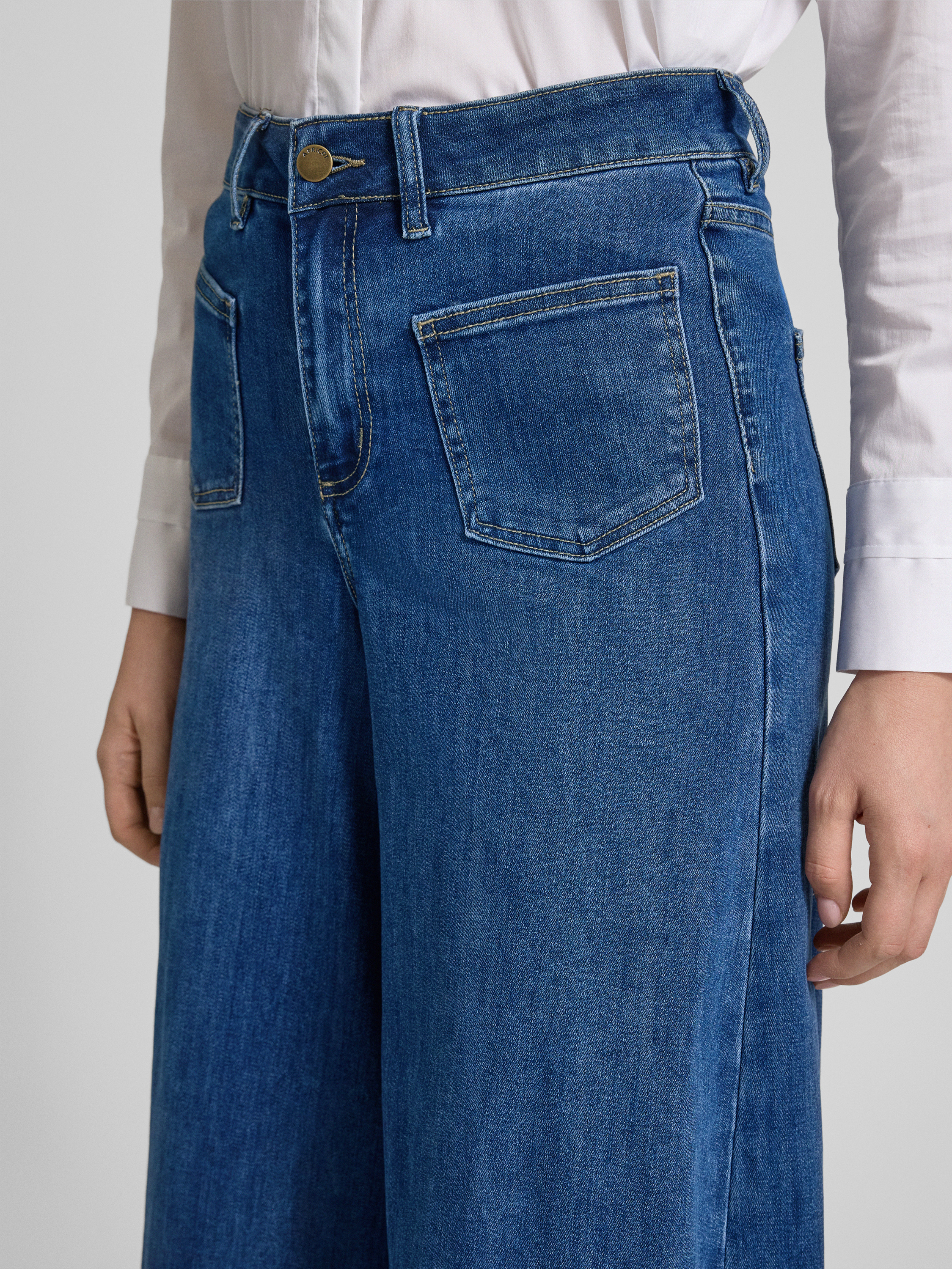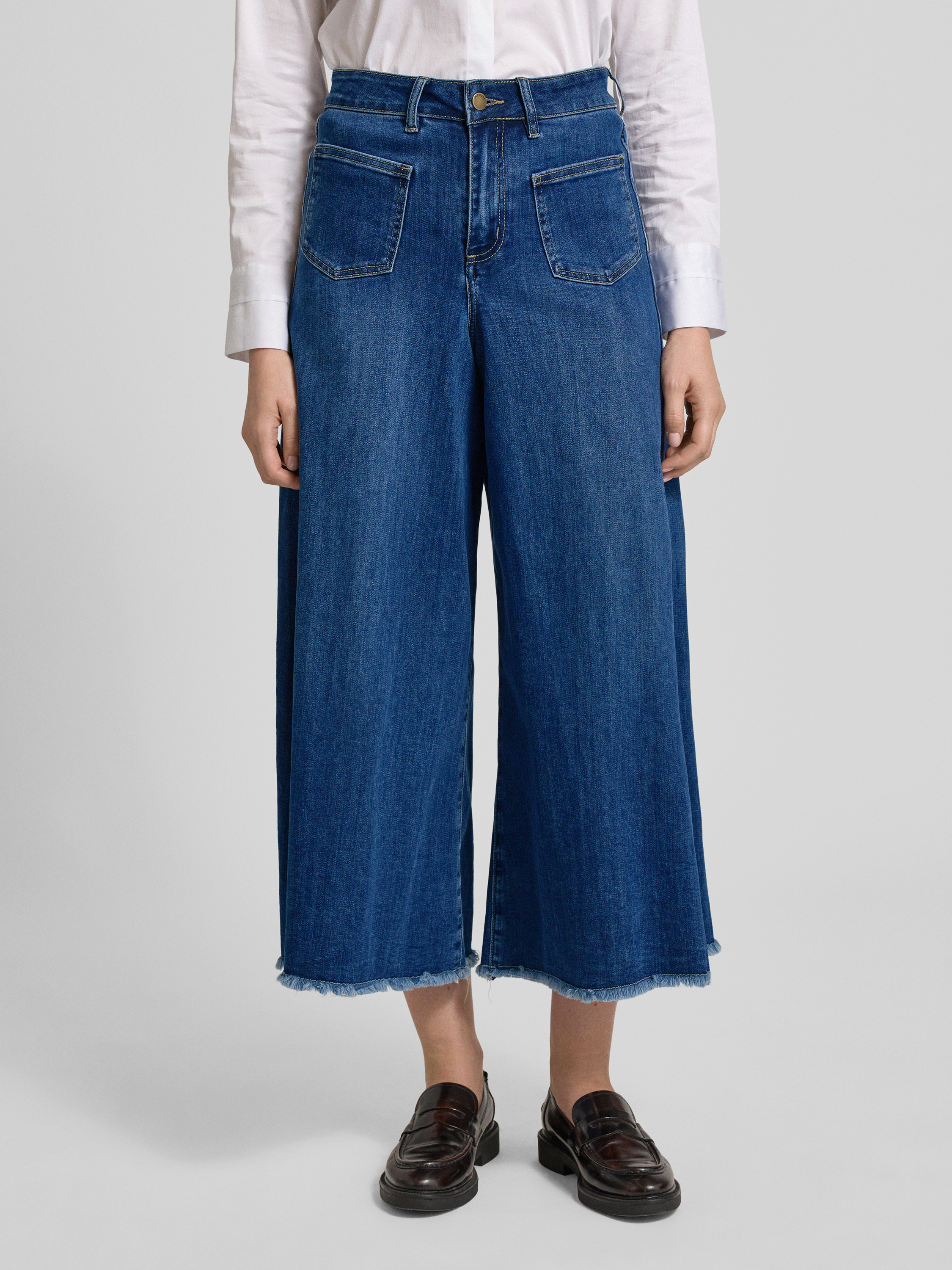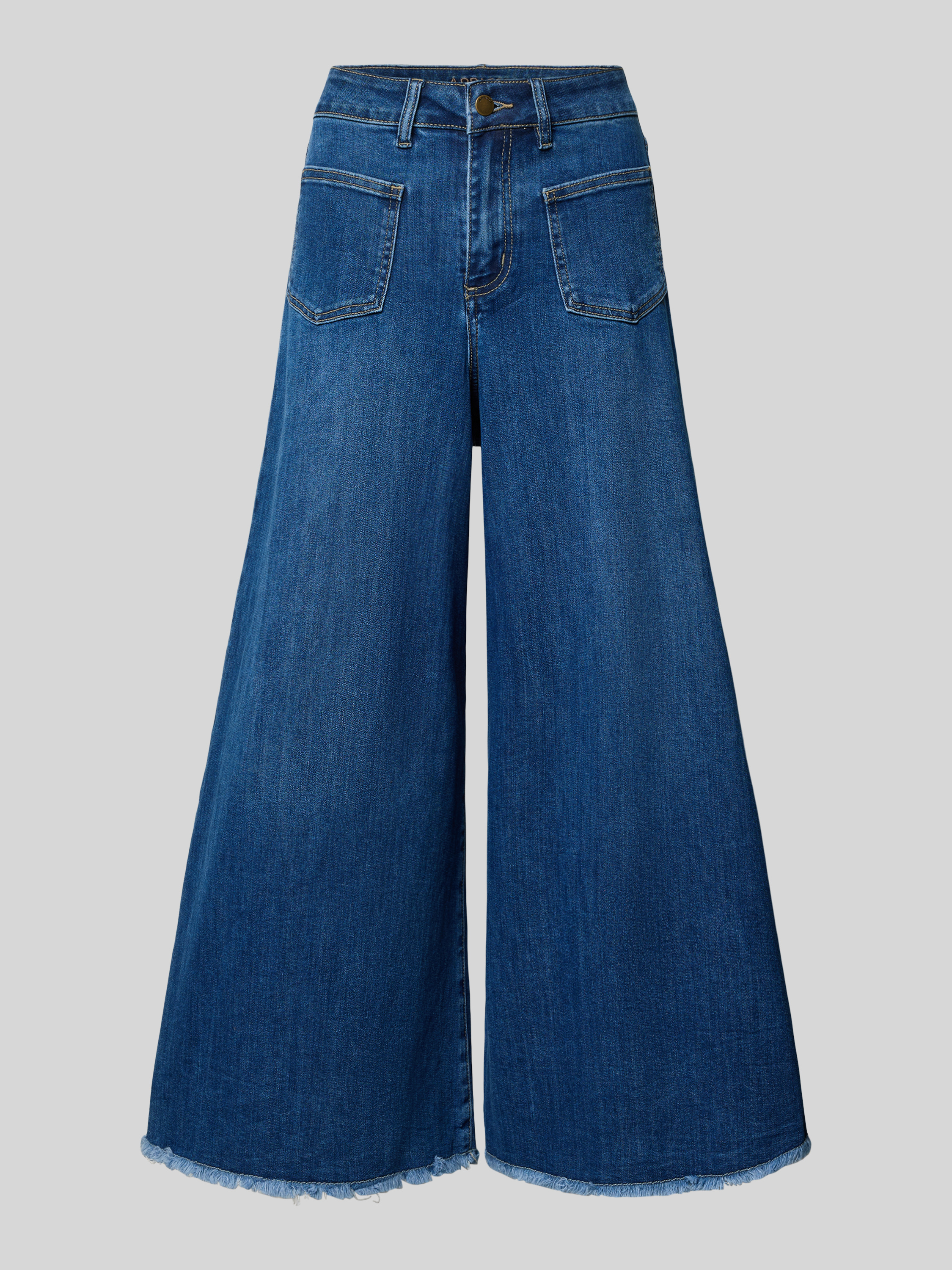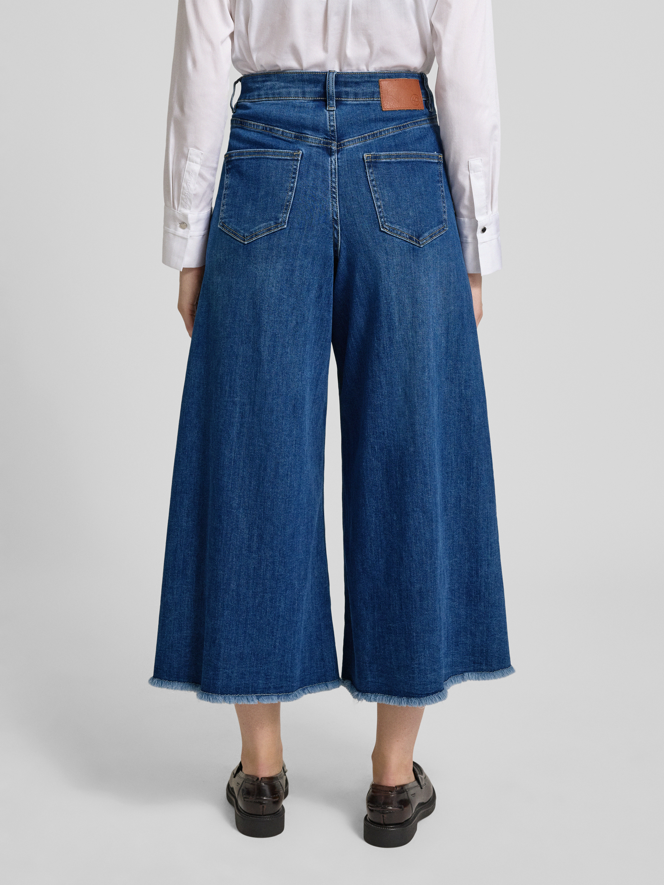 Jeansy z szeroką nogawką i frędzlami - granatowy