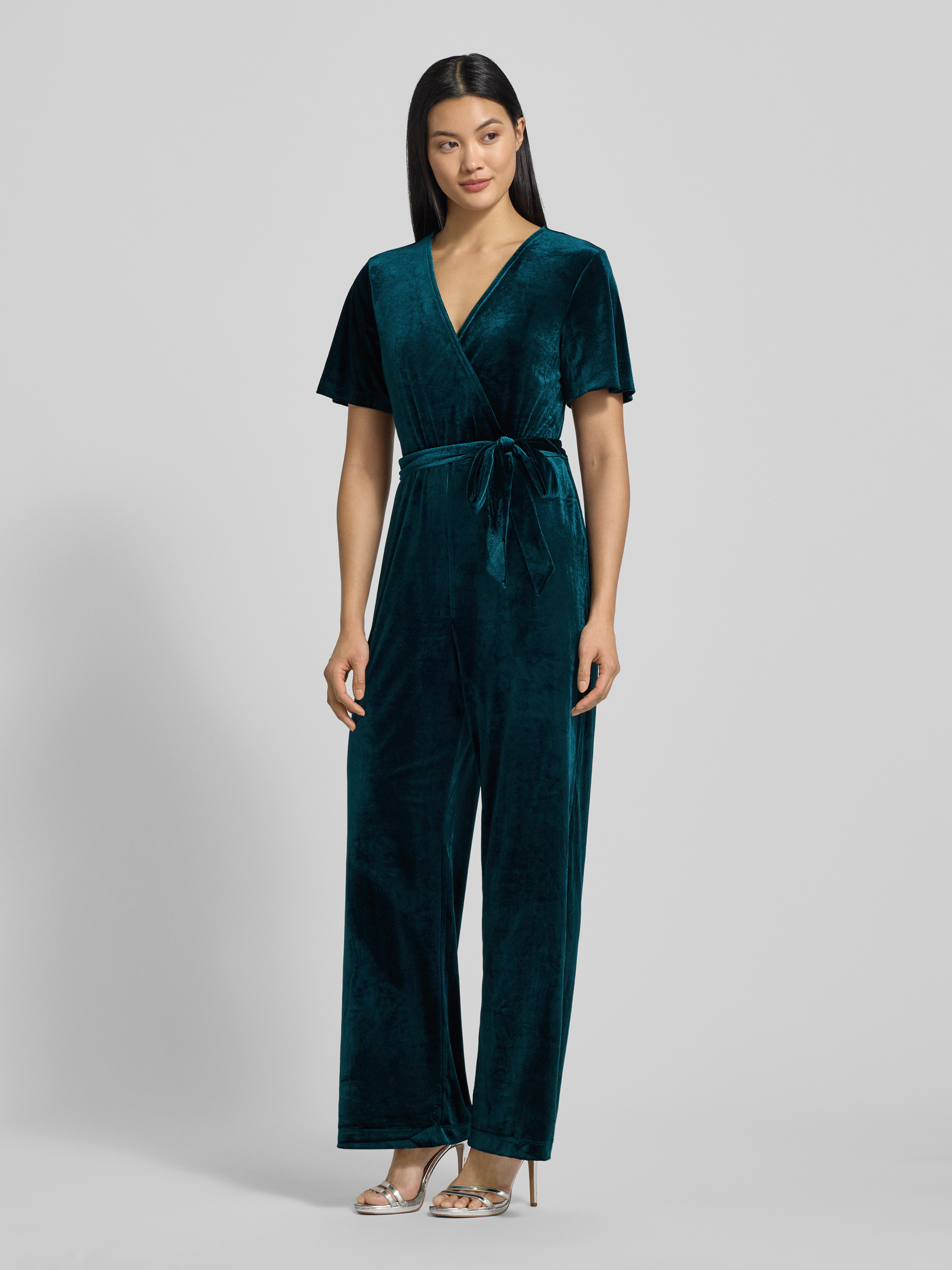 Kombinezon o kroju regular fit z dekoltem w serek - zielony