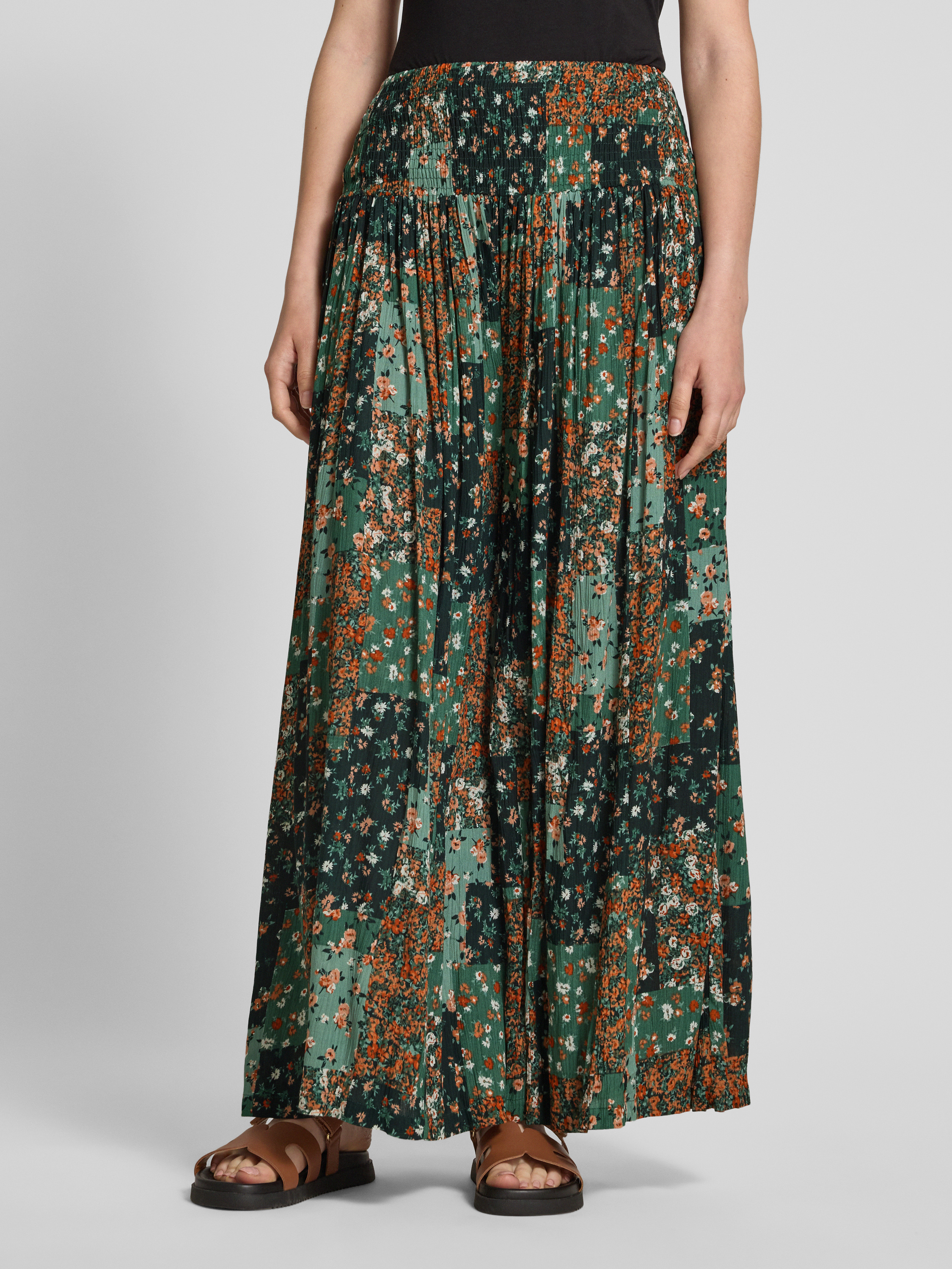 Spodnie z wiskozy z elastycznym pasem i wpuszczanymi kieszeniami - ciemnozielony