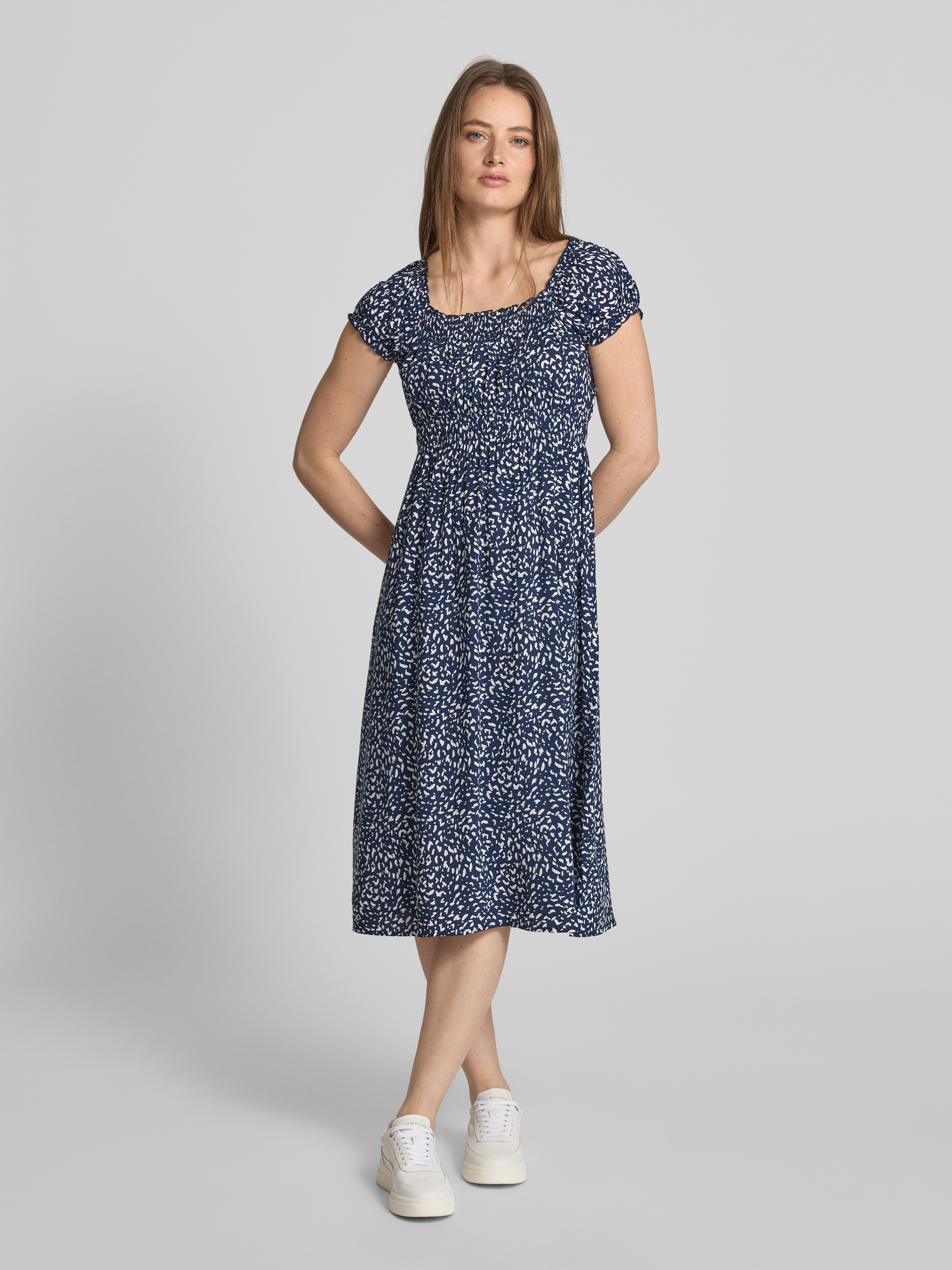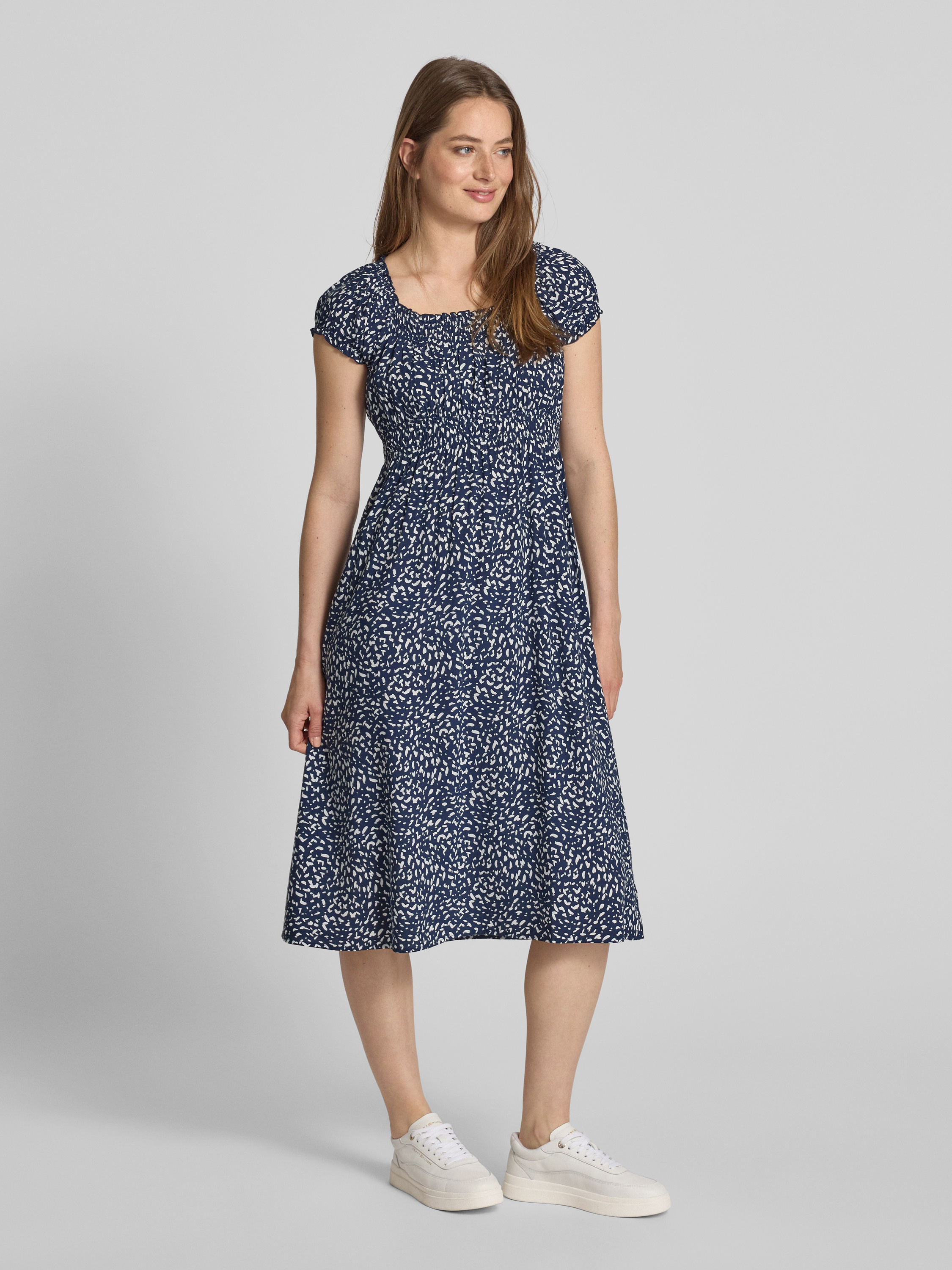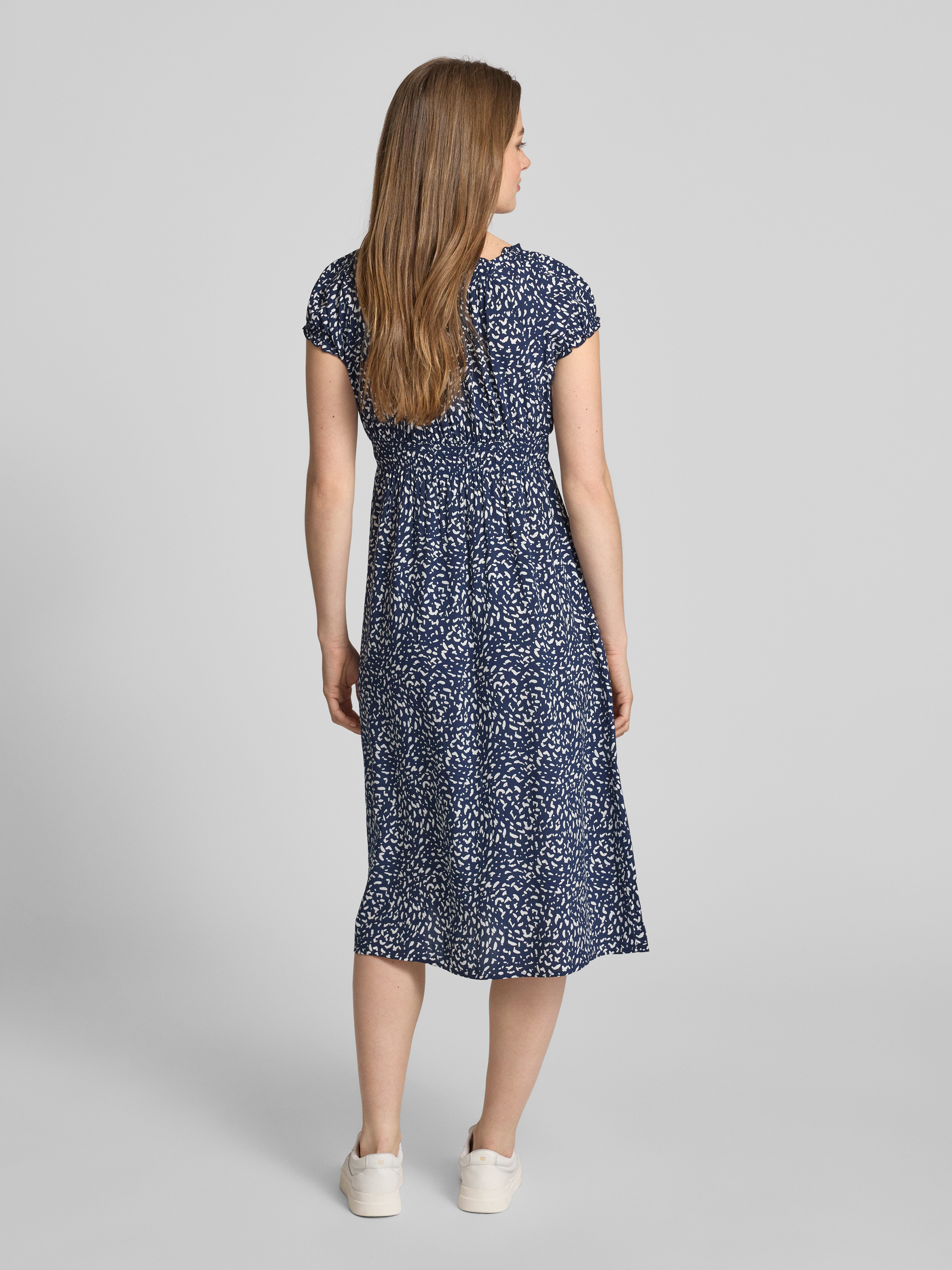 Sukienka midi z wiskozy z elastyczną tasiemką w talii - granatowy