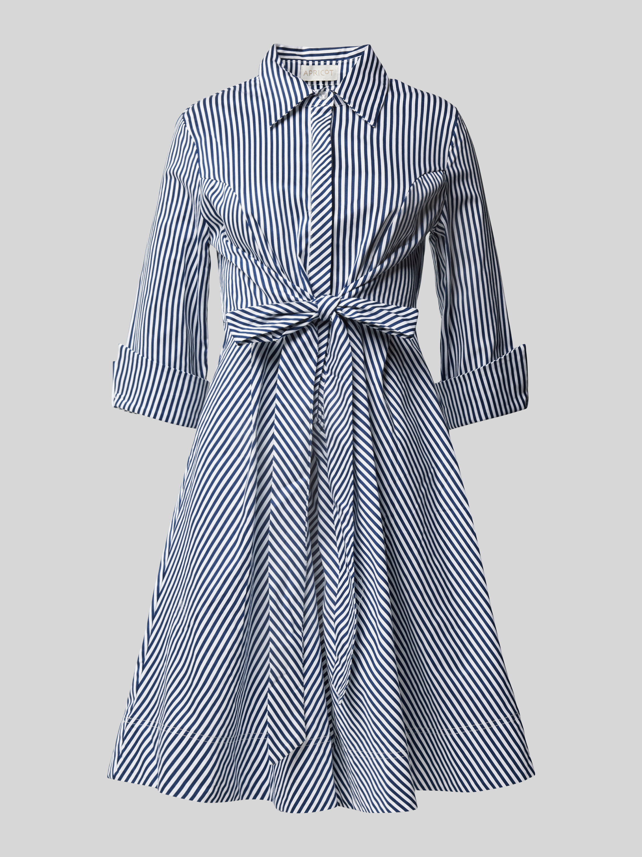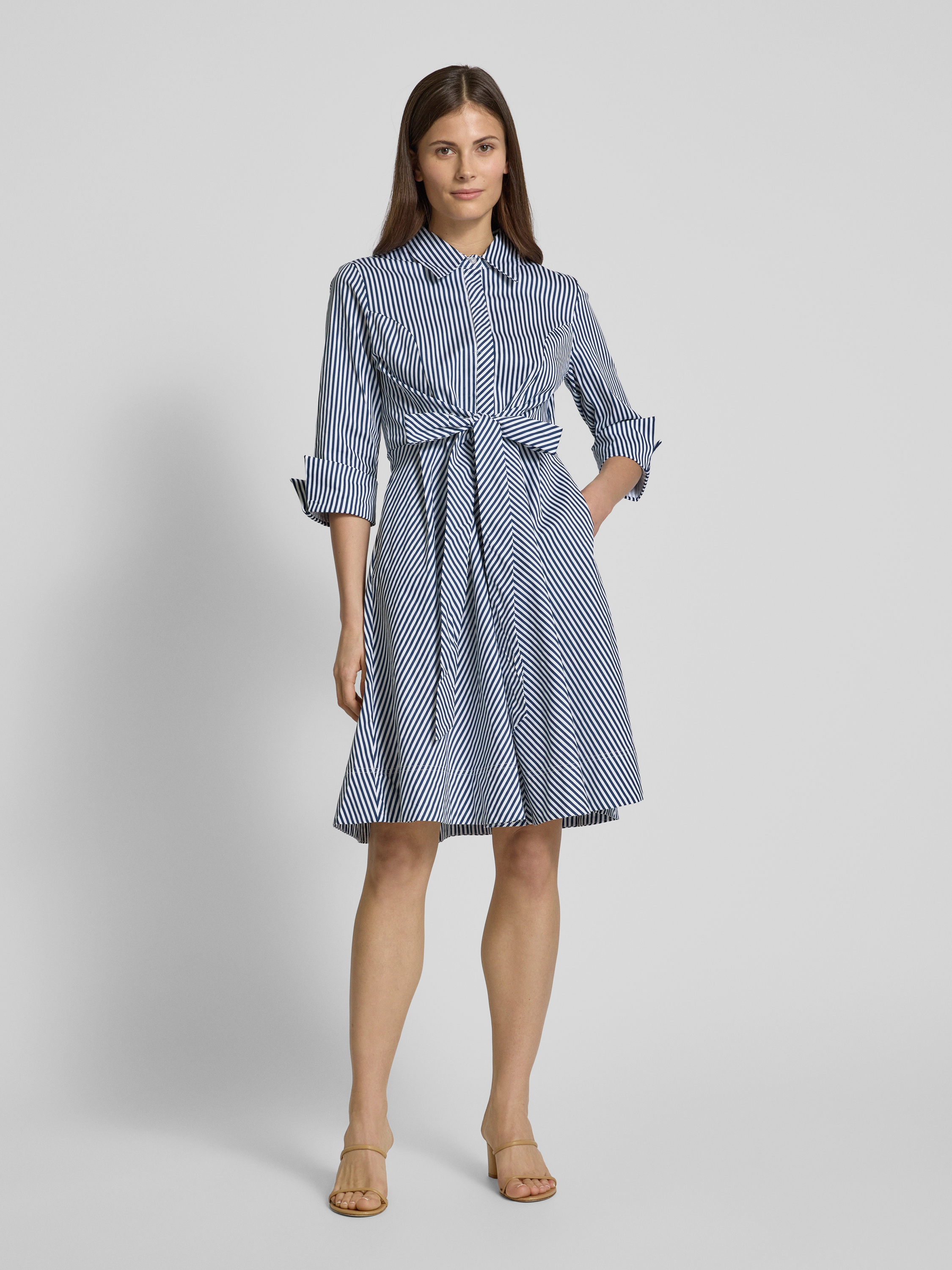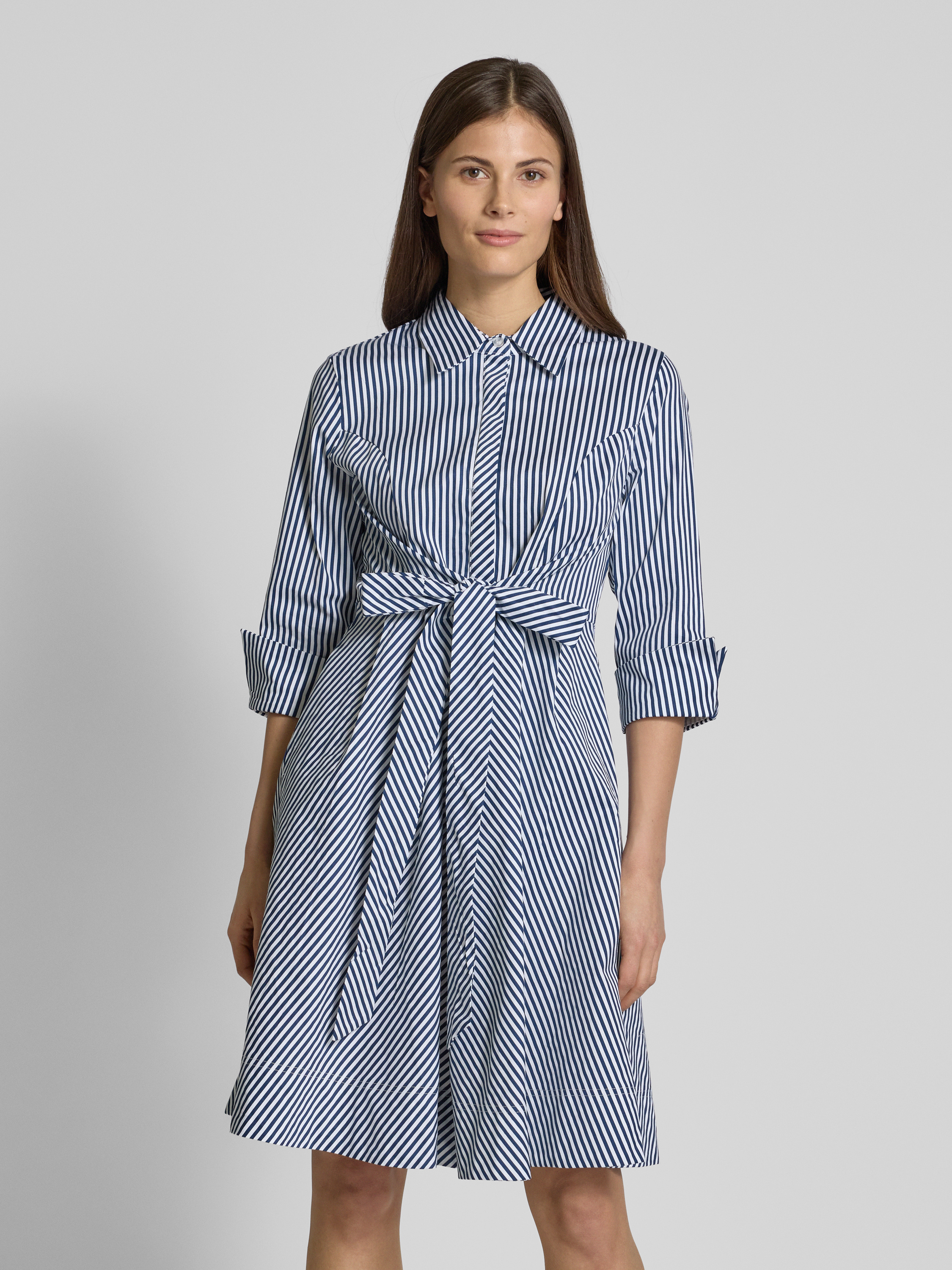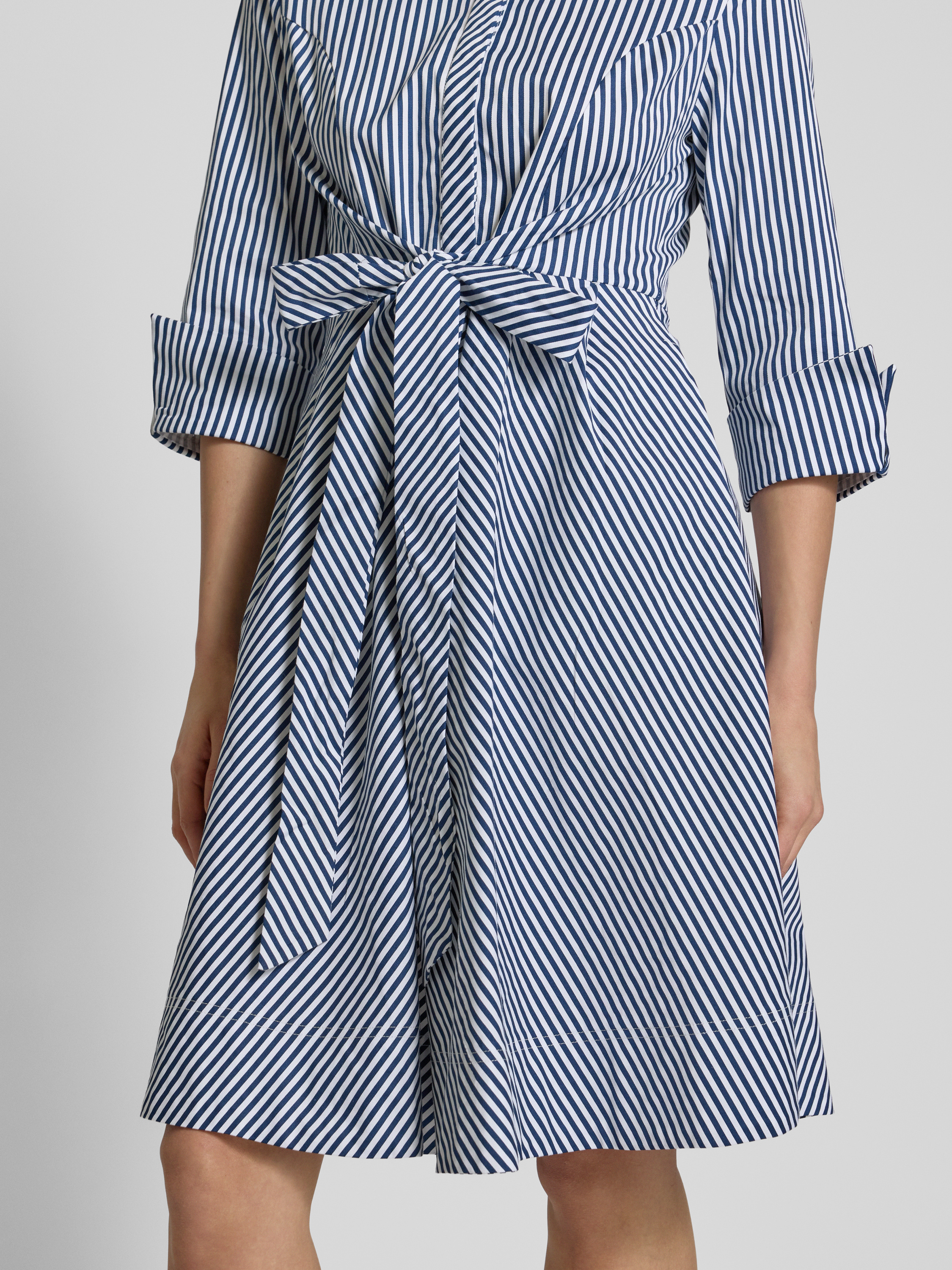 Sukienka o długości do kolan z wiązanym paskiem - granatowy
