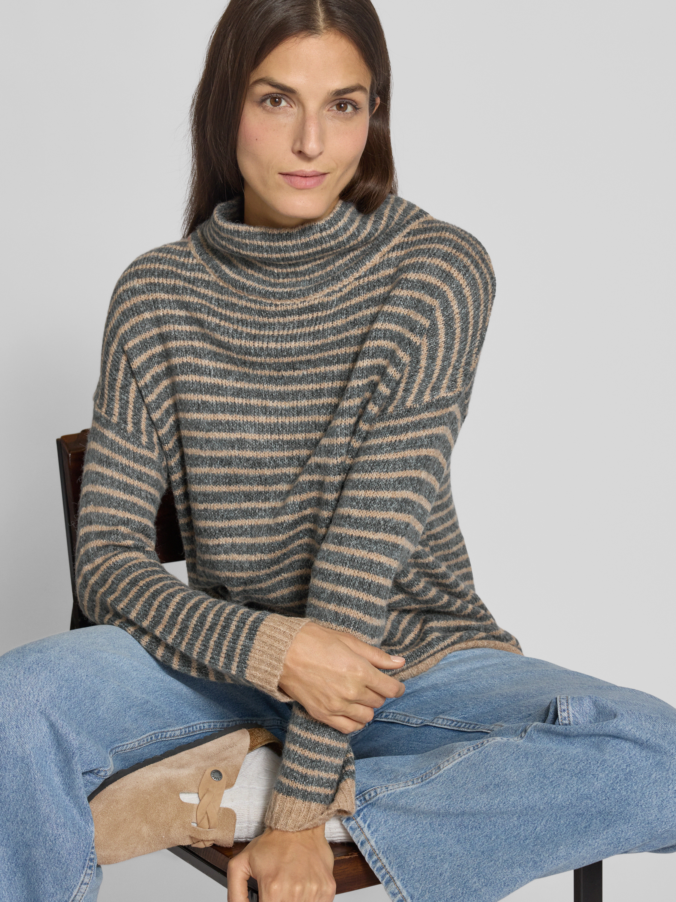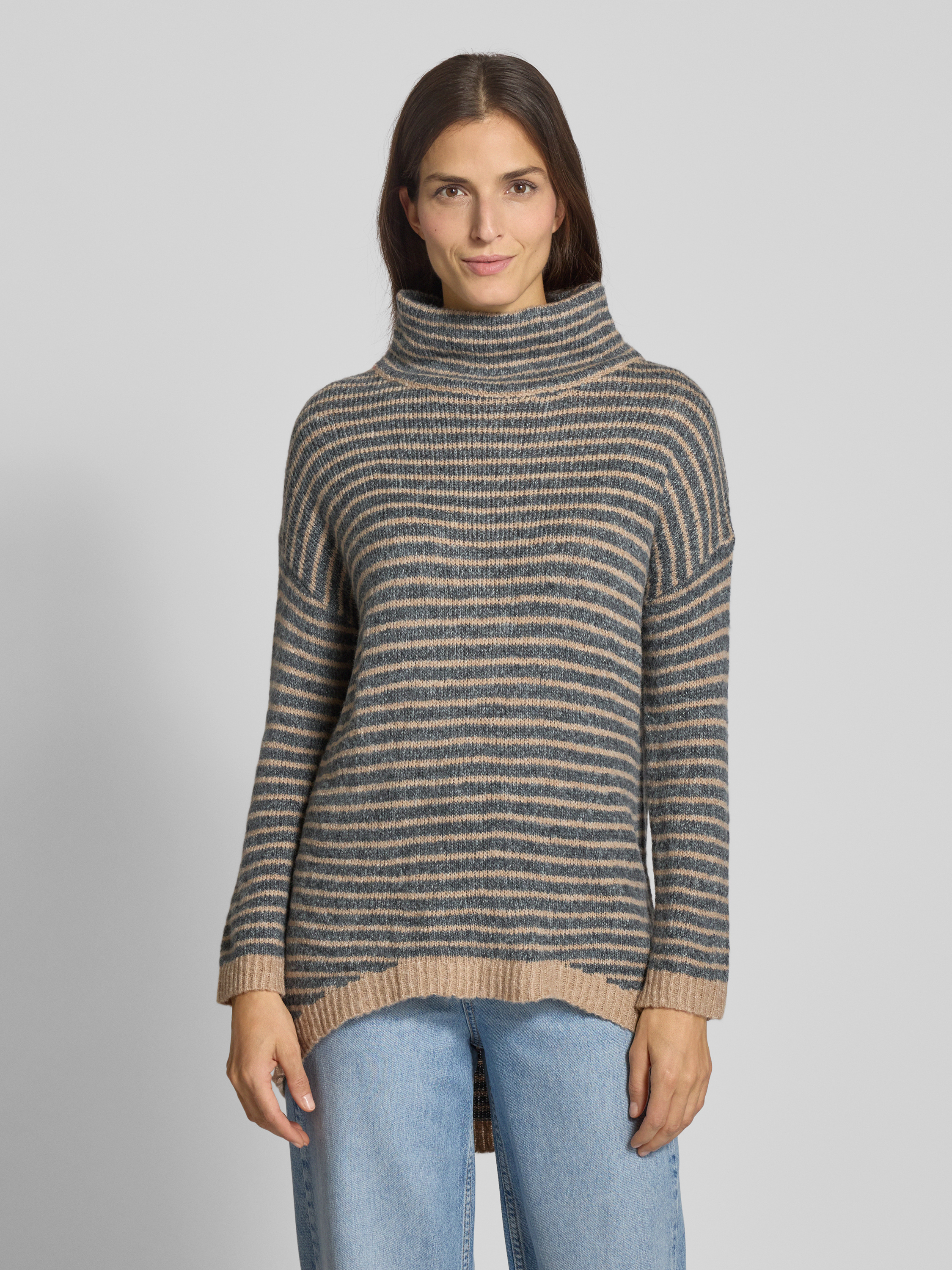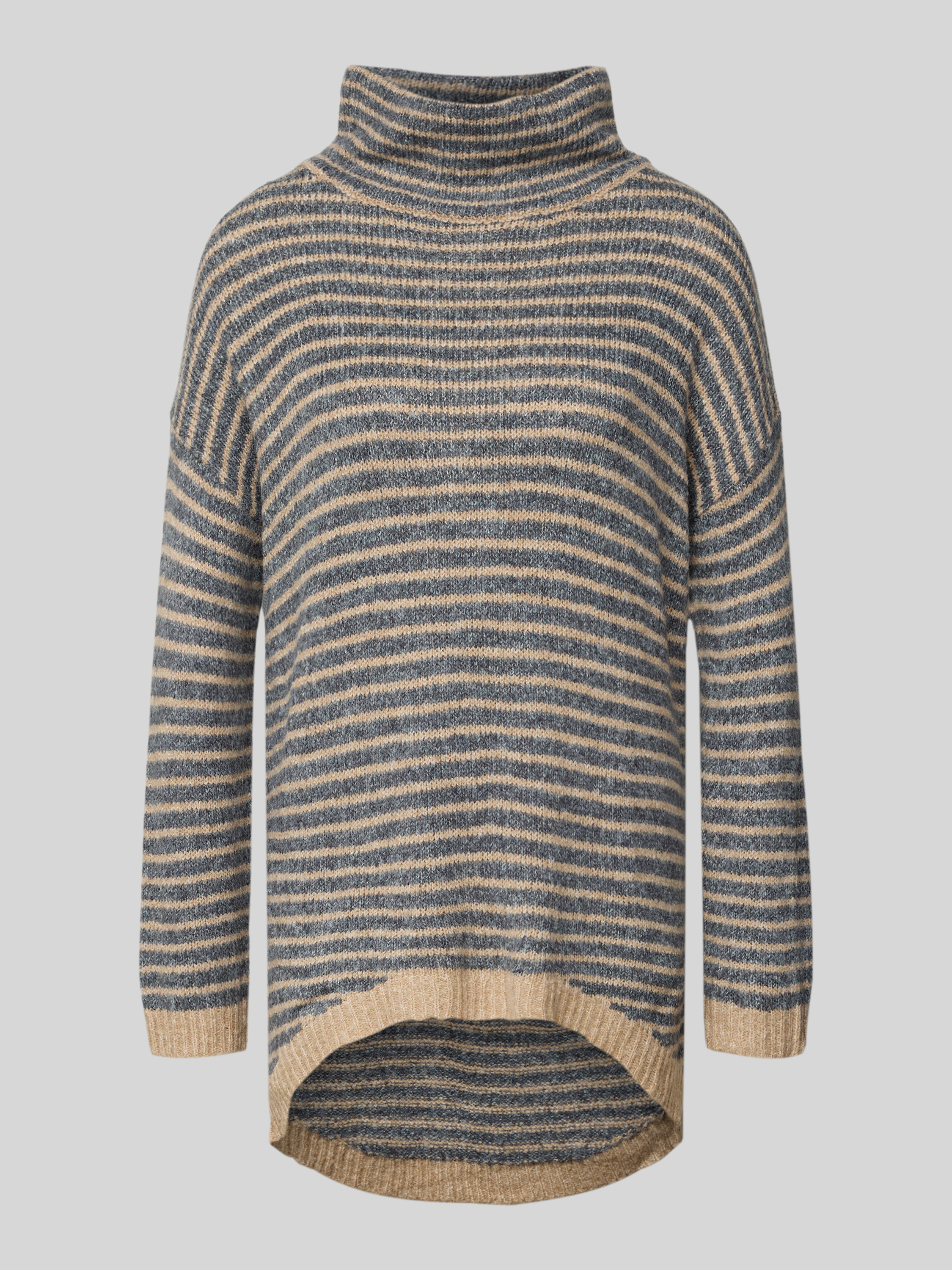 Sweter z dzianiny o kroju oversized z prążkowanymi wykończeniami - średnioszary melanż