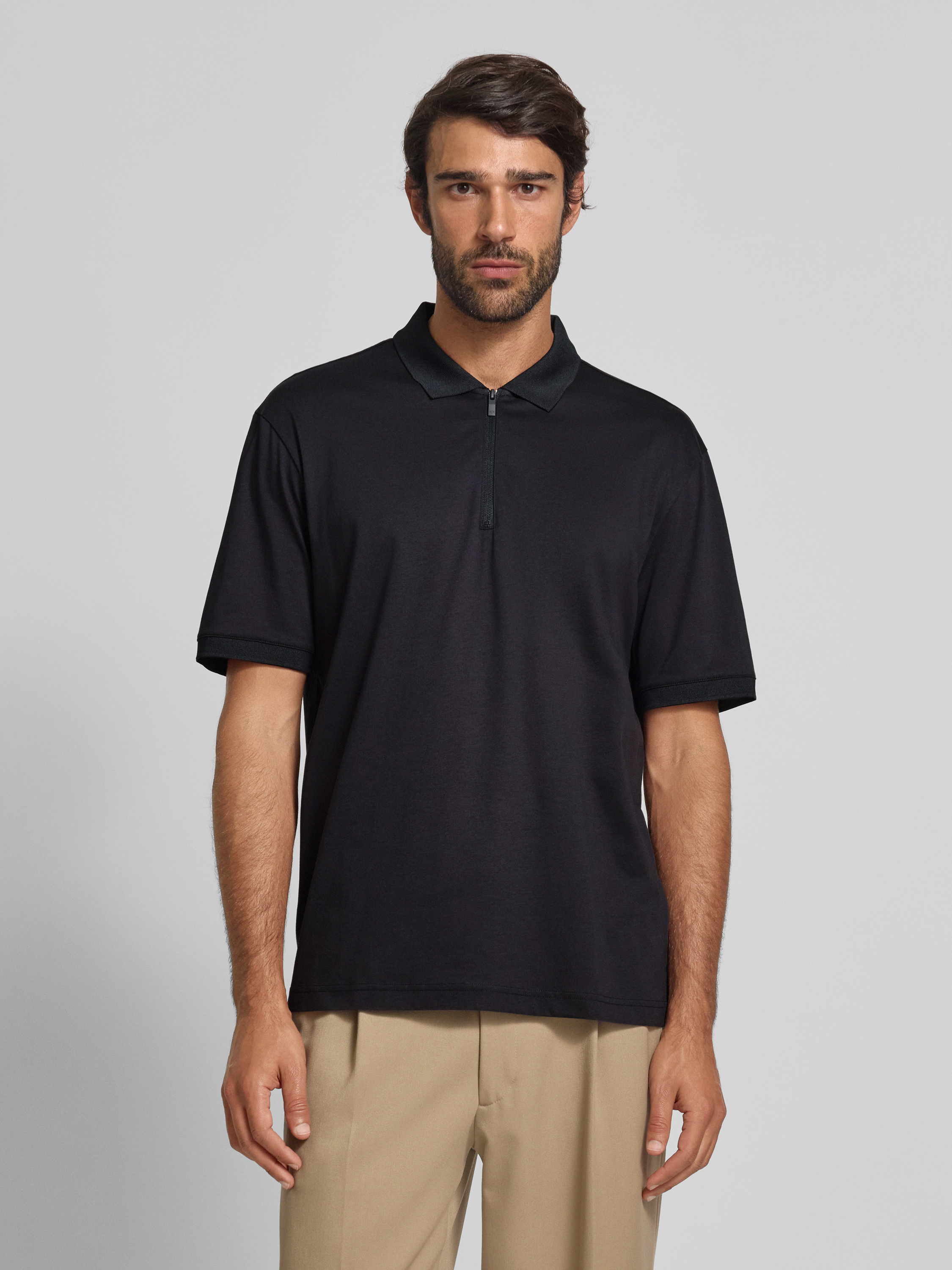 Koszulka polo z krótkim zamkiem błyskawicznym - granatowy