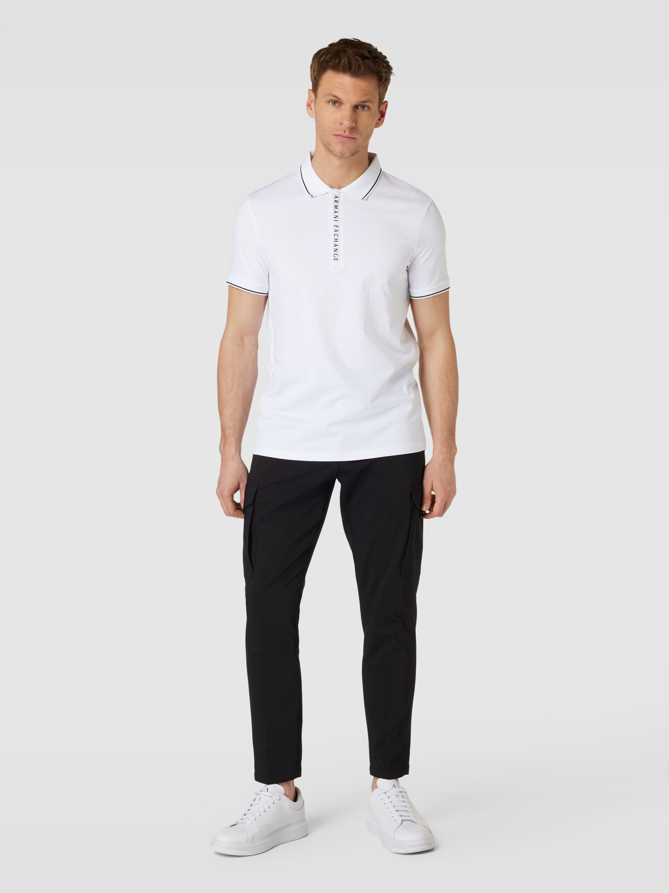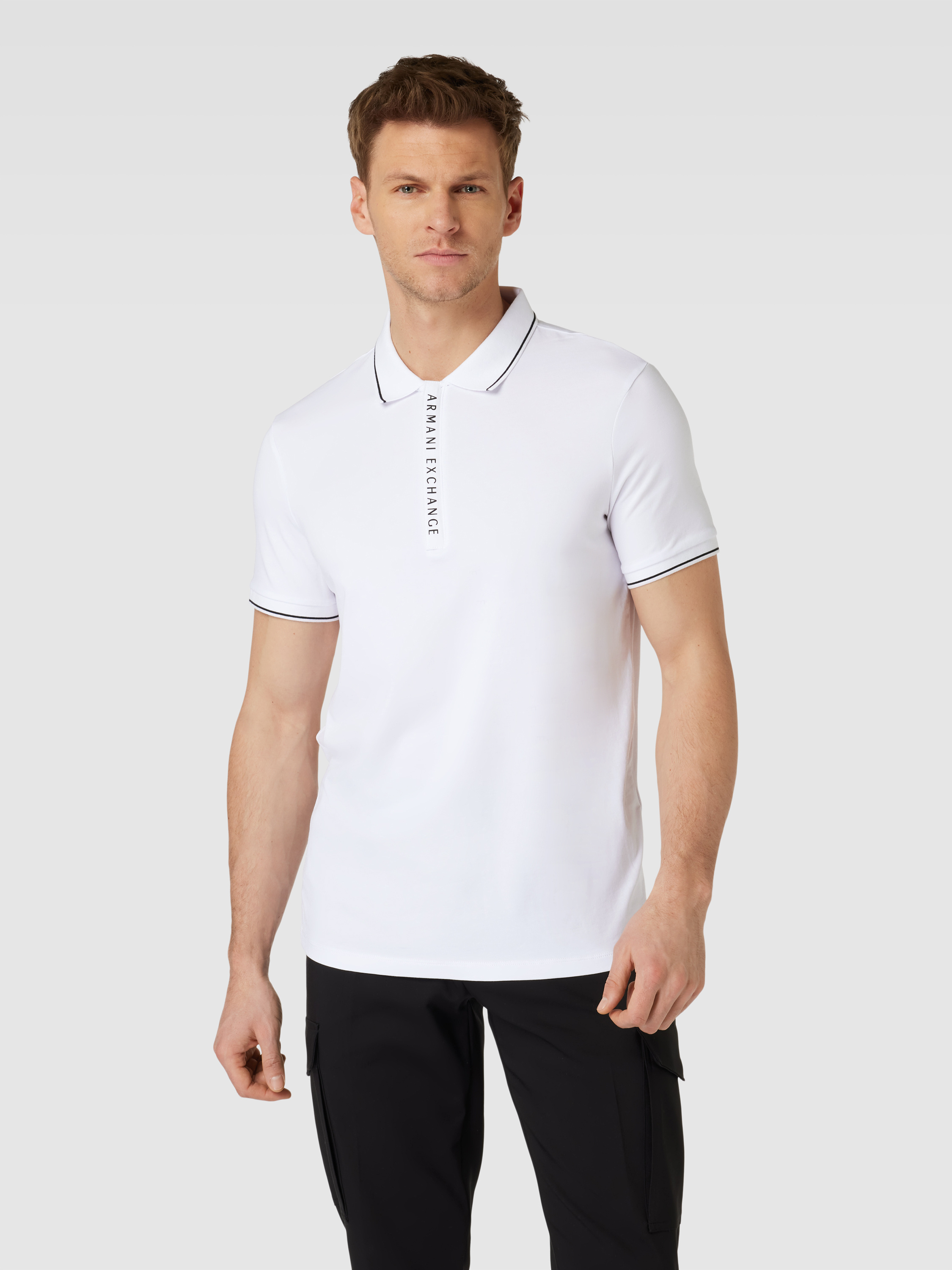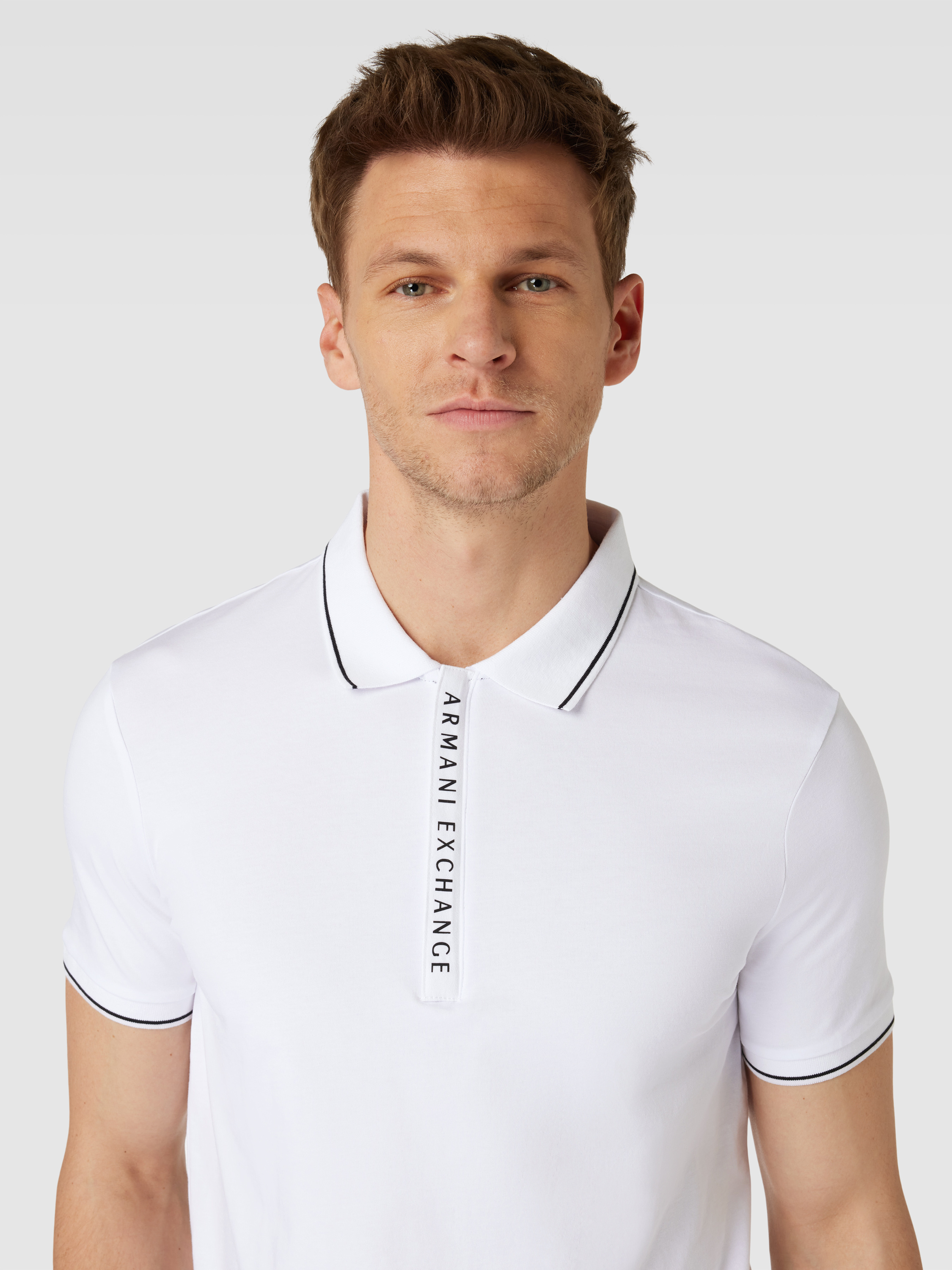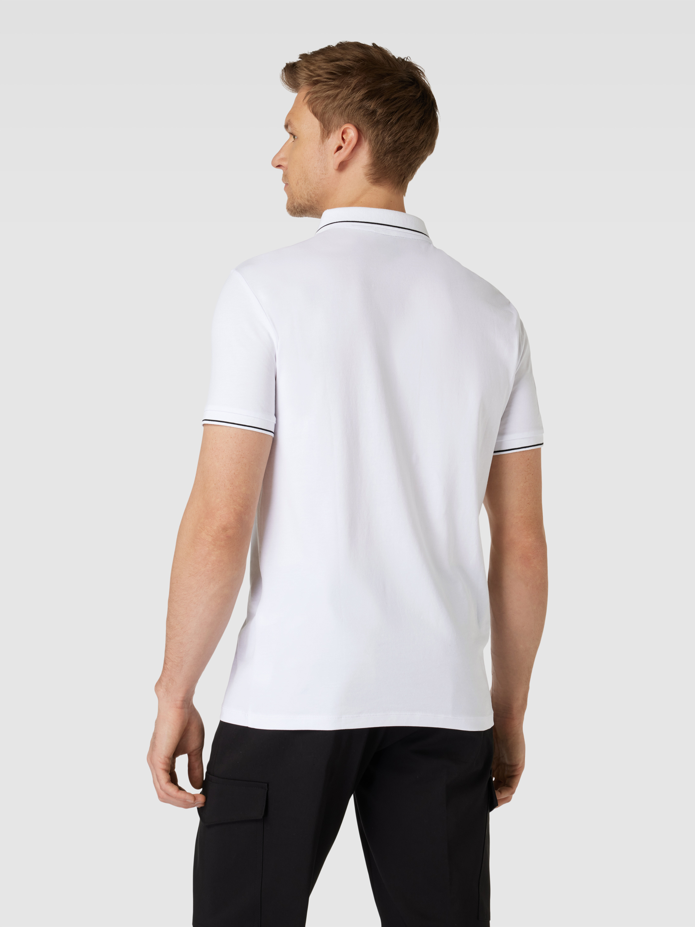 Koszulka polo z paskami w kontrastowym kolorze - biały