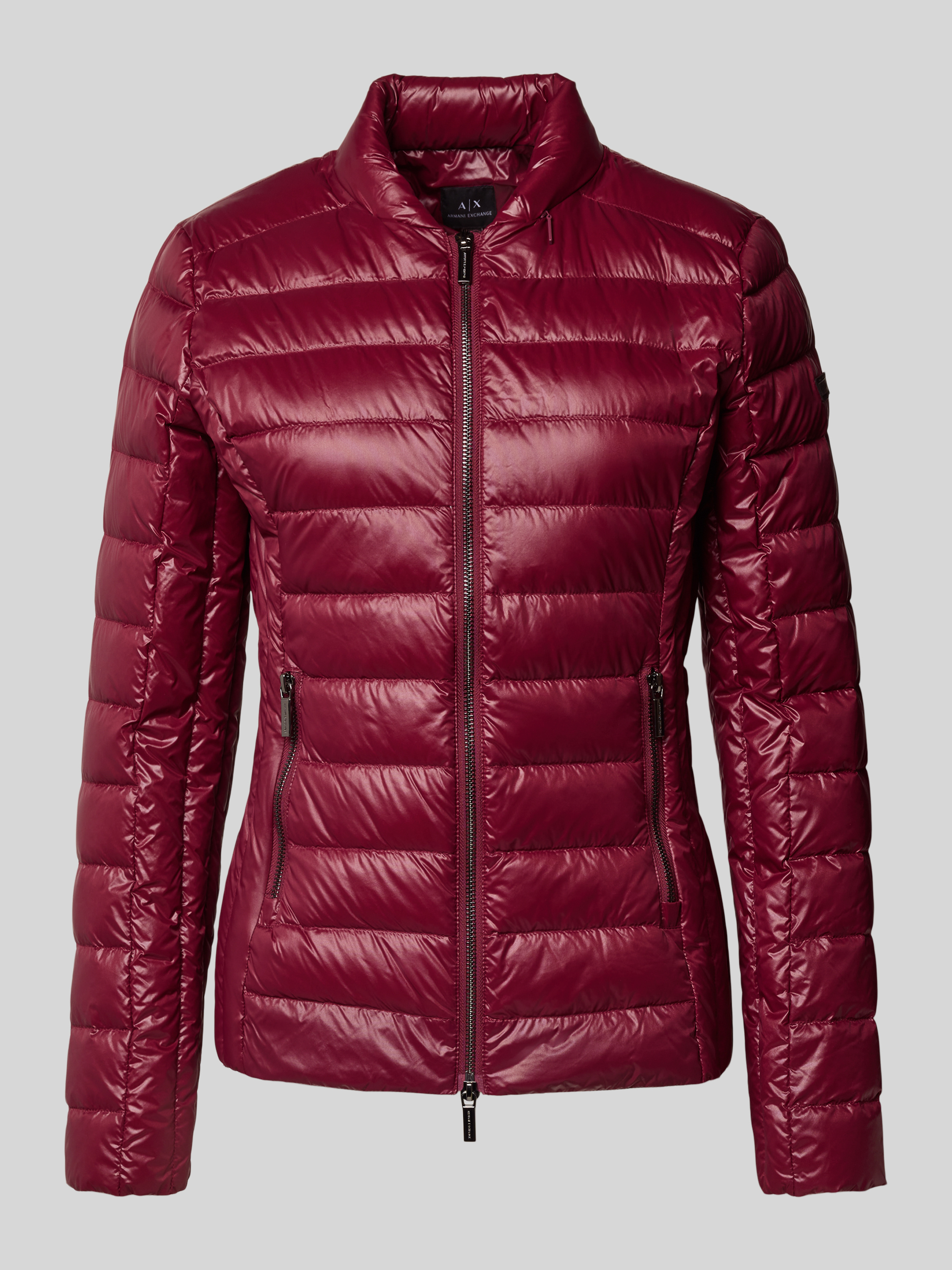 Kurtka puchowa o kroju shaped fit z kieszeniami zapinanymi na zamek błyskawiczny - bordowy