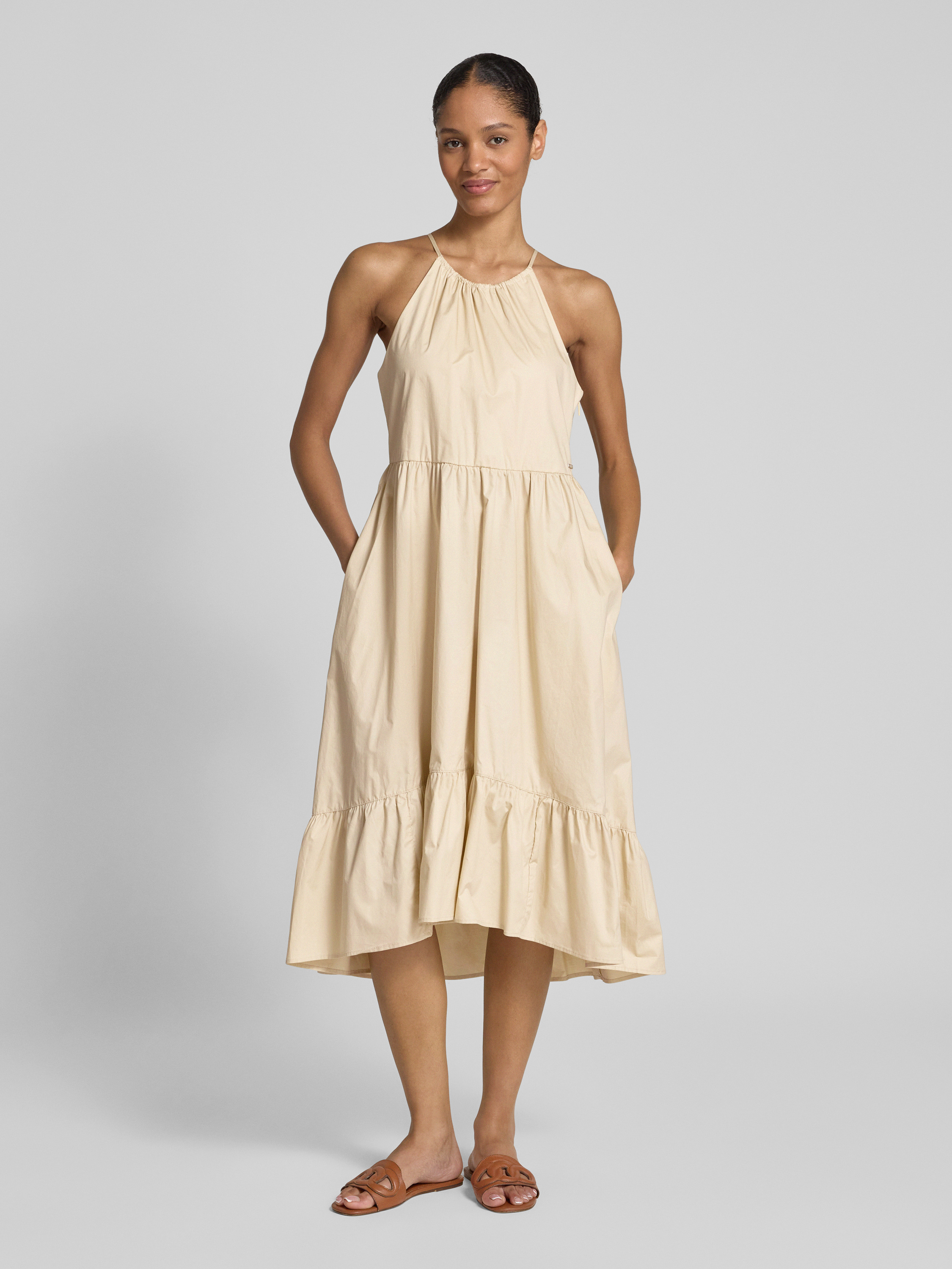 Sukienka midi z wpuszczanymi kieszeniami - piaskowy