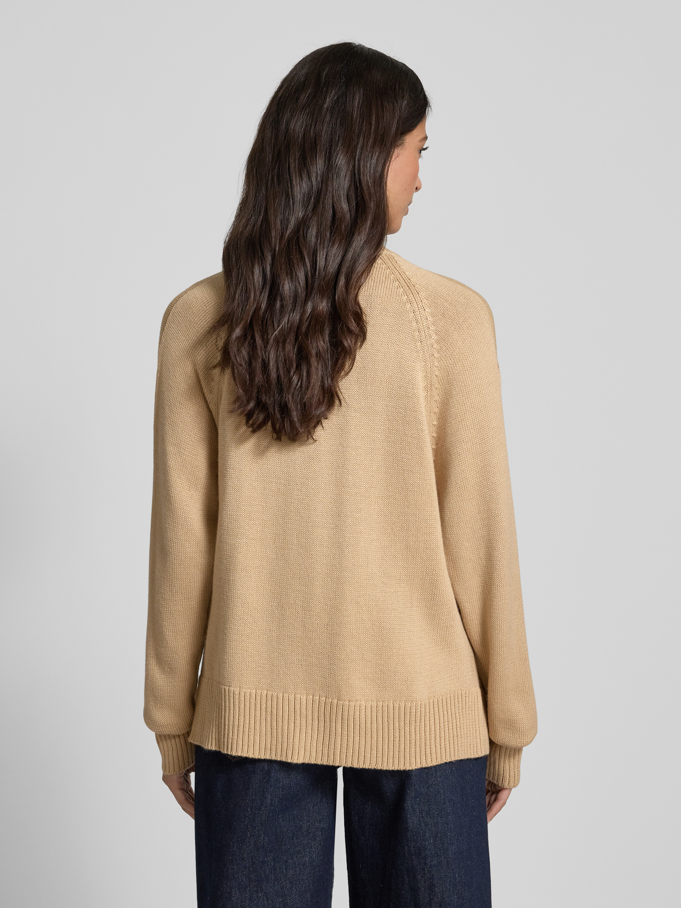 Sweter z dzianiny z mieszanki wełny lana z dekoltem w serek - camel