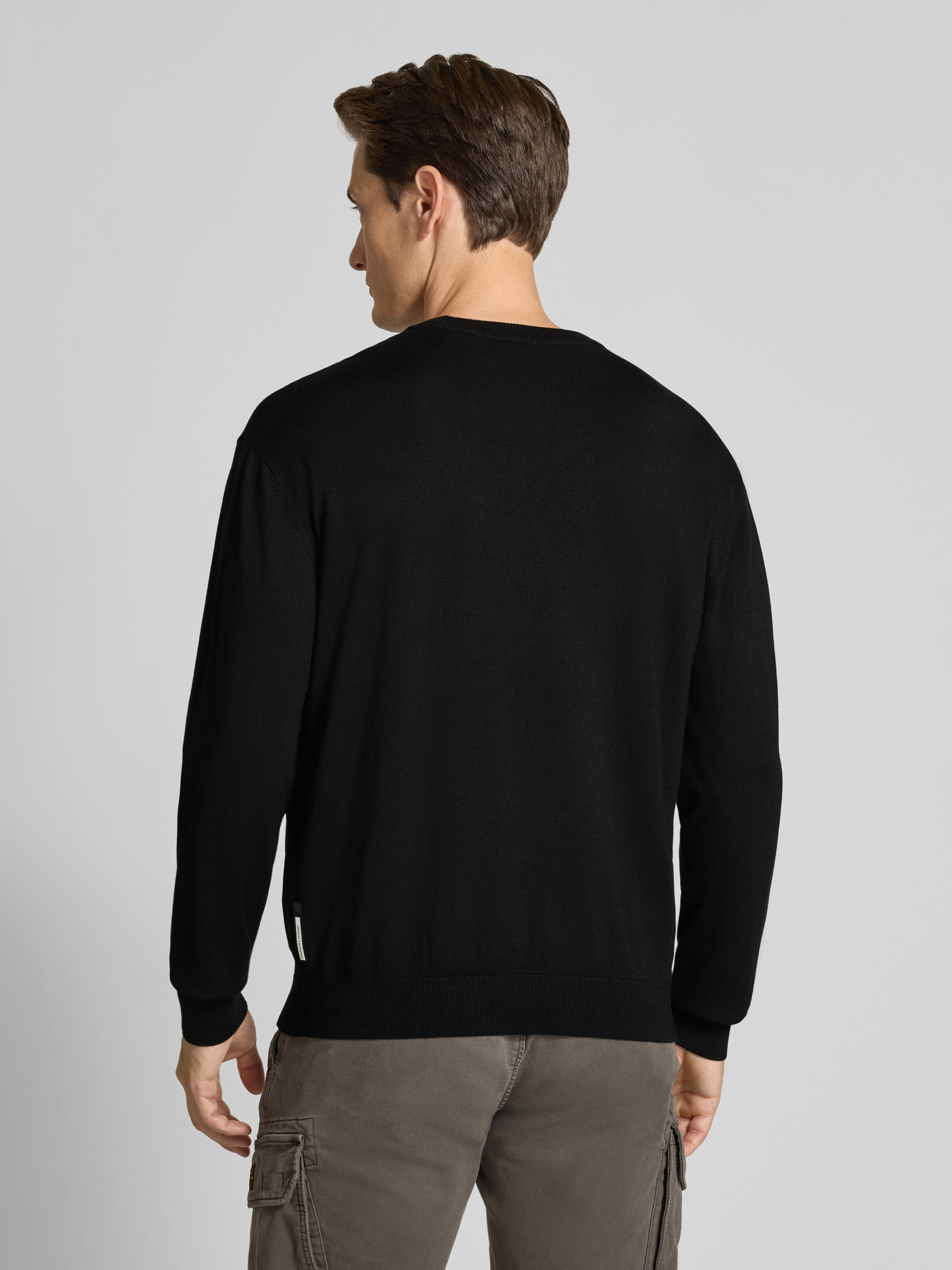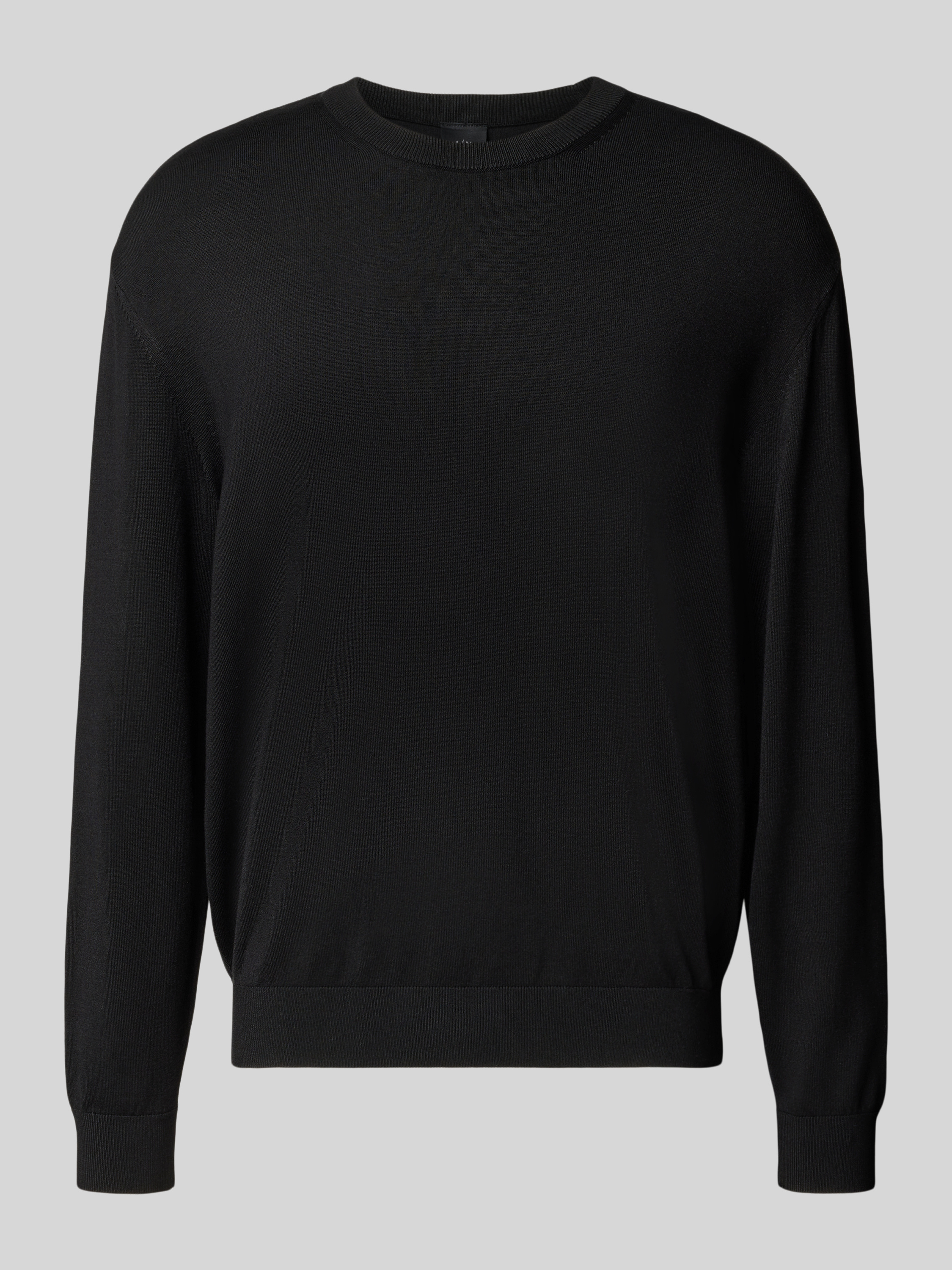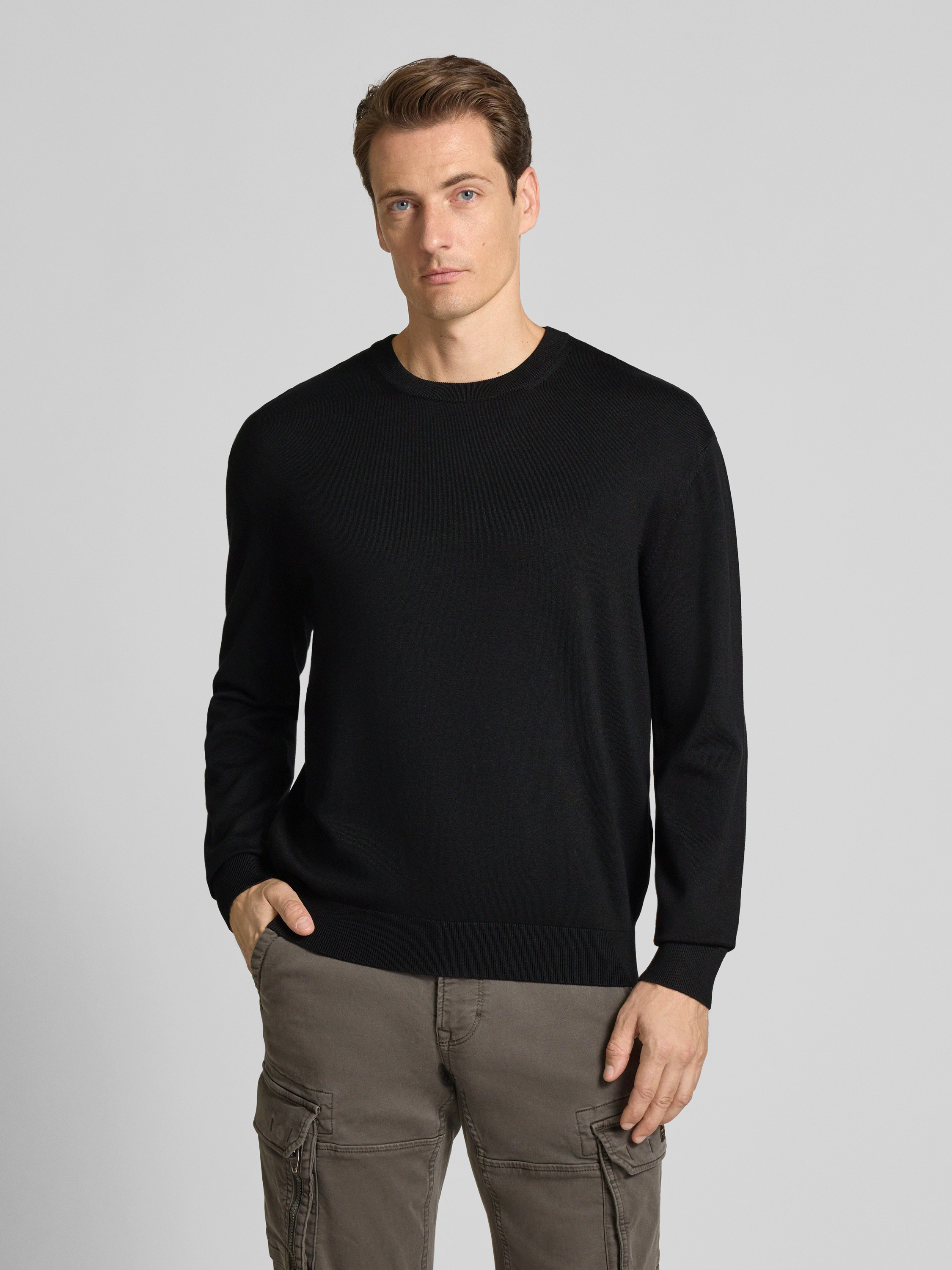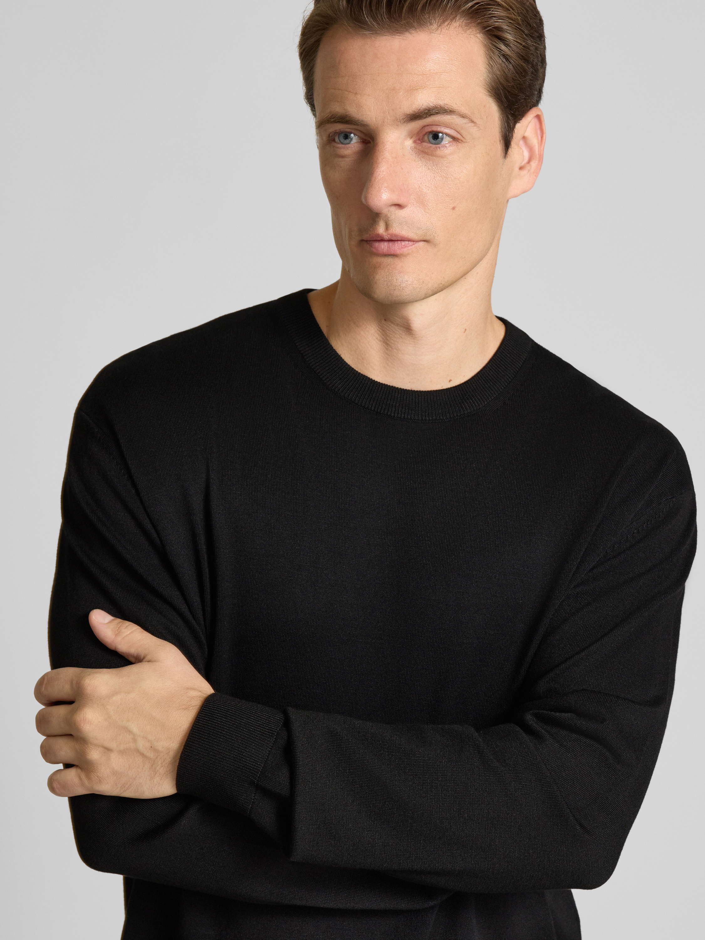 Sweter z dzianiny z okrągłym dekoltem - czarny