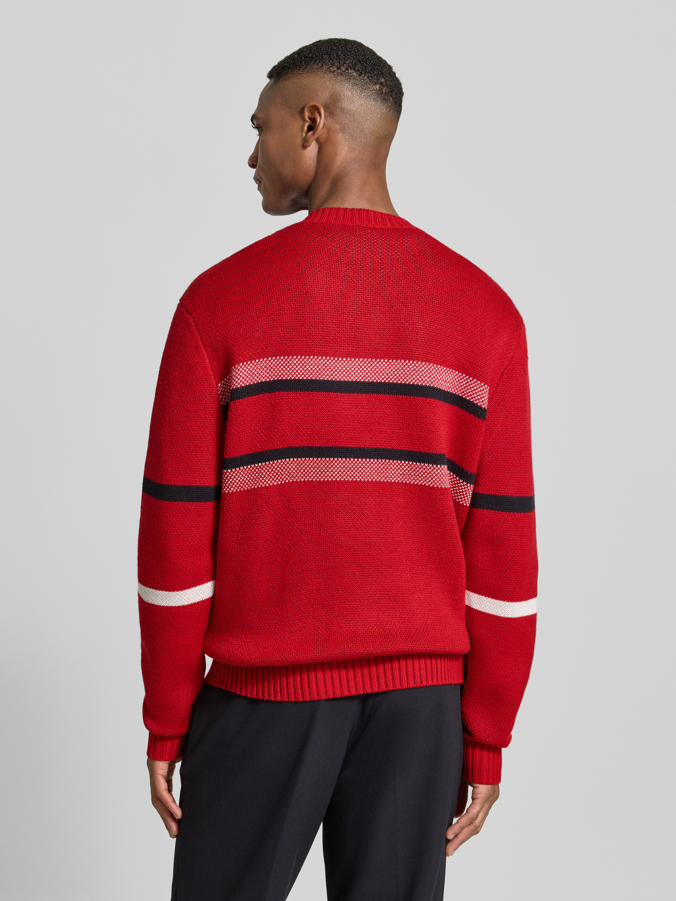 Sweter z dzianiny z prążkowanymi wykończeniami - czerwony