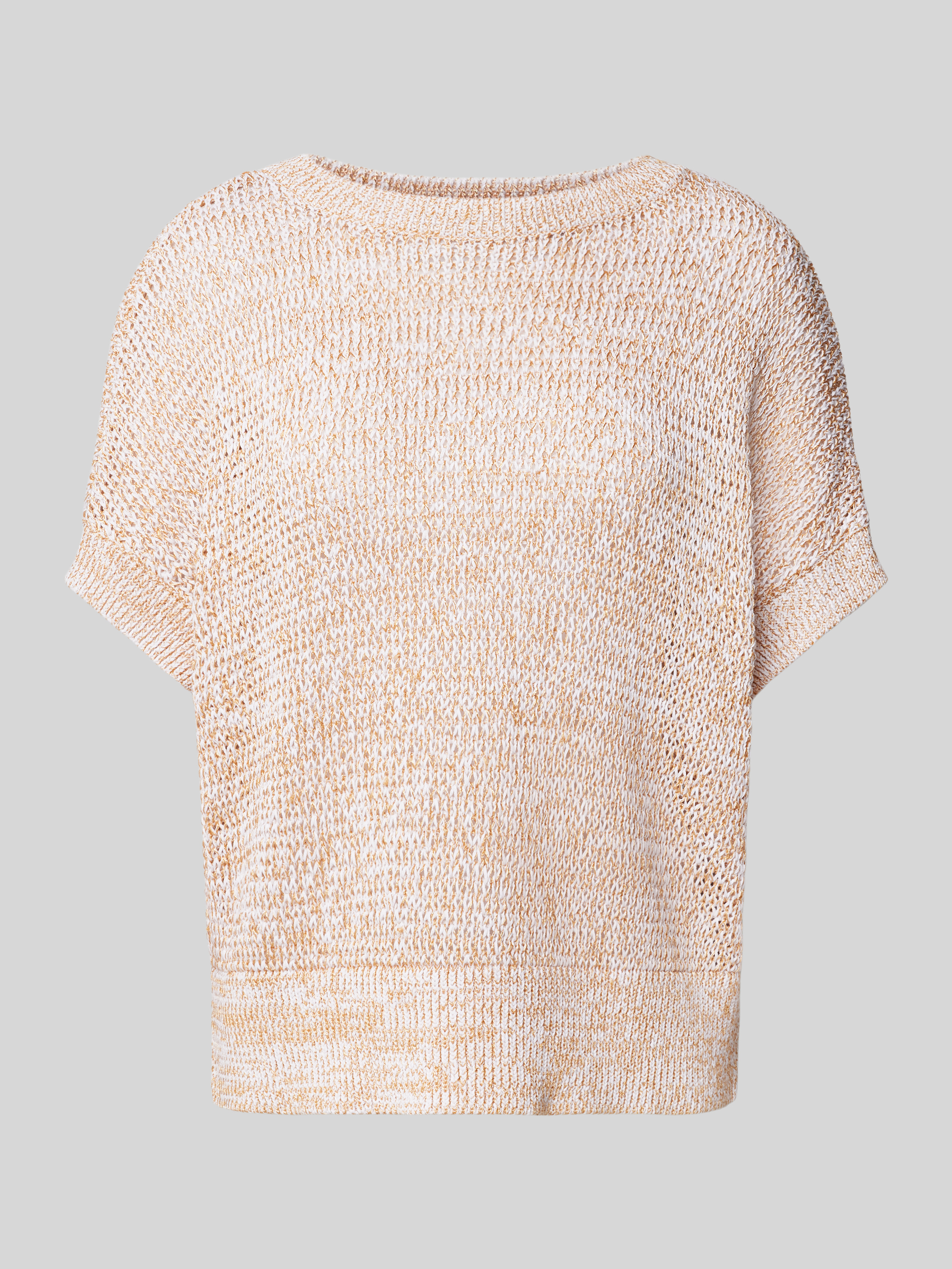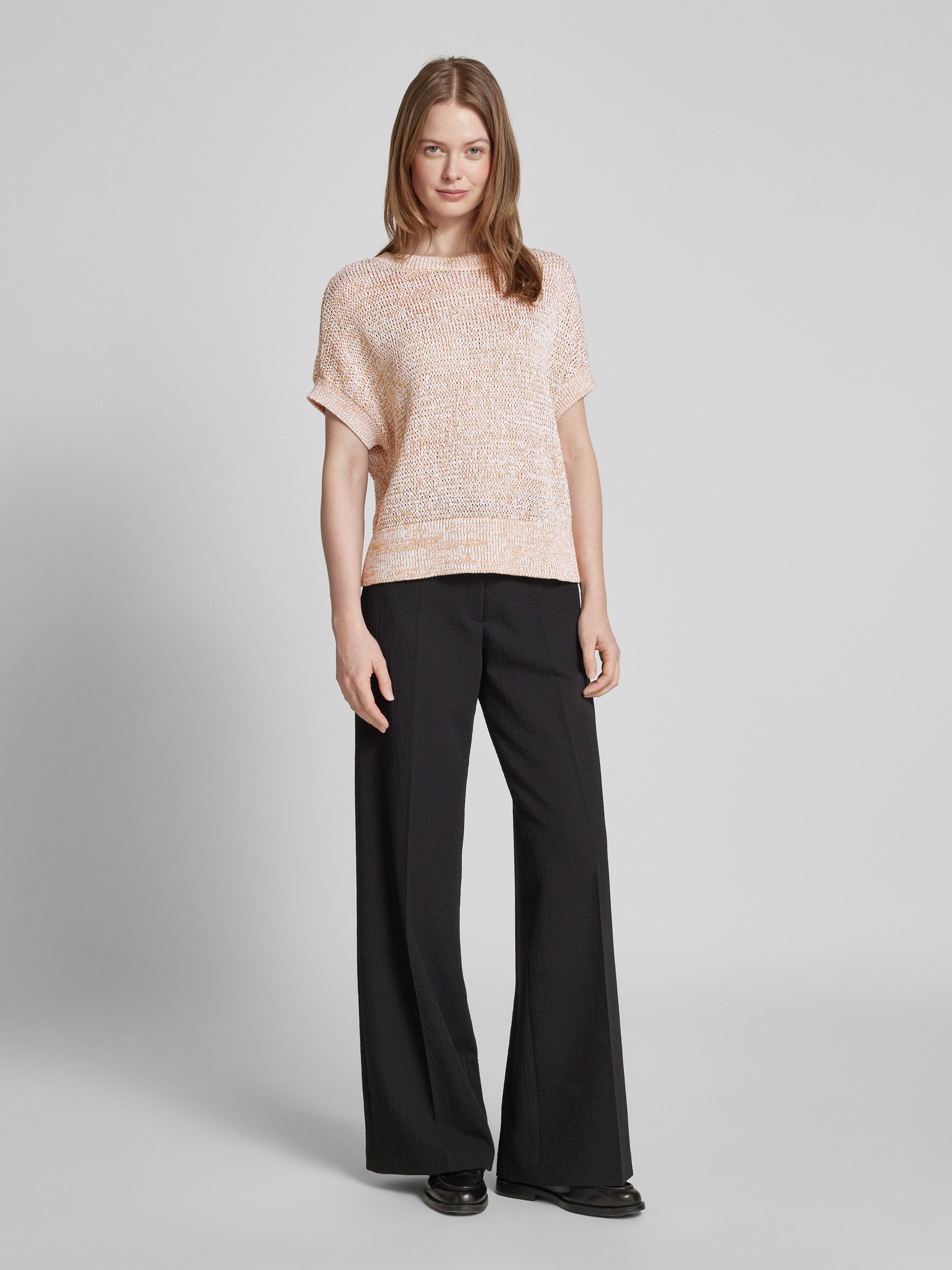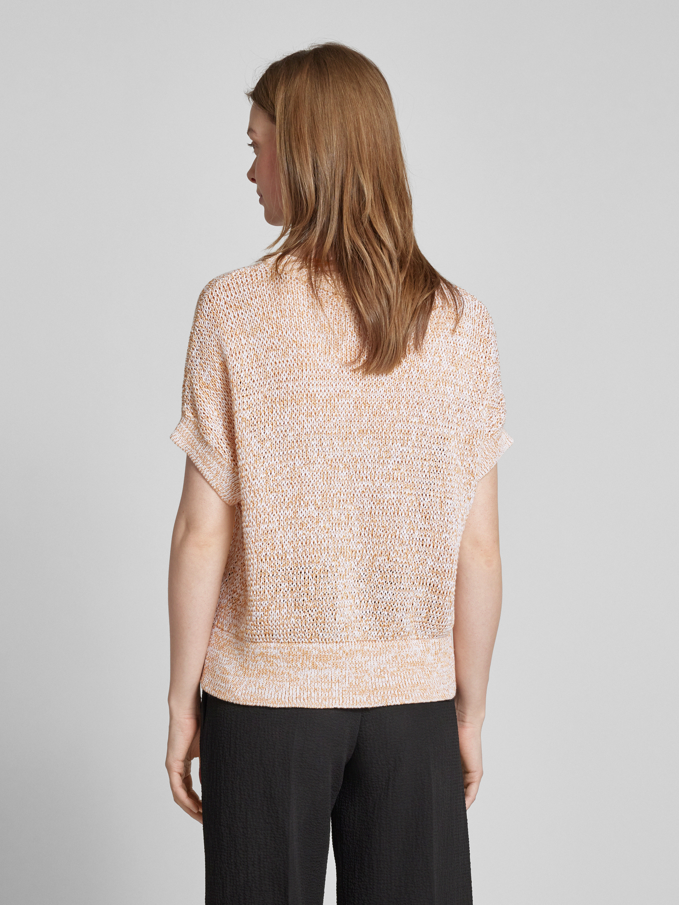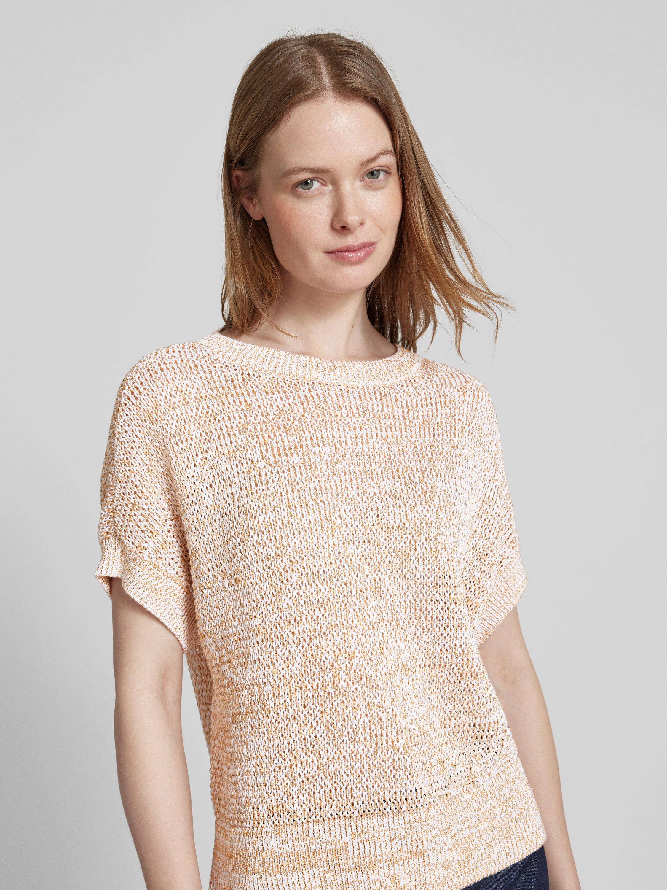 Sweter z dzianiny z prążkowanymi wykończeniami - morelowy