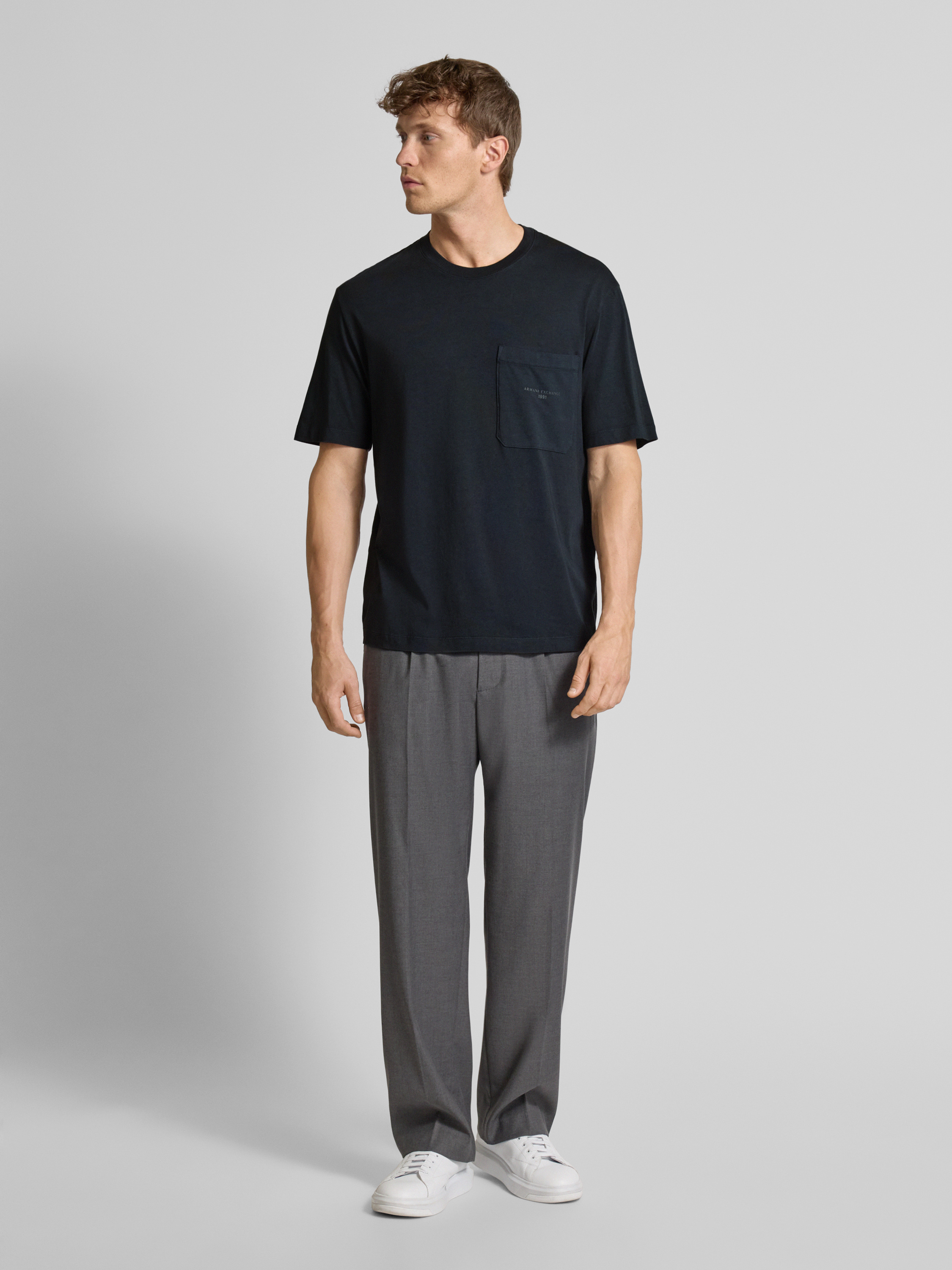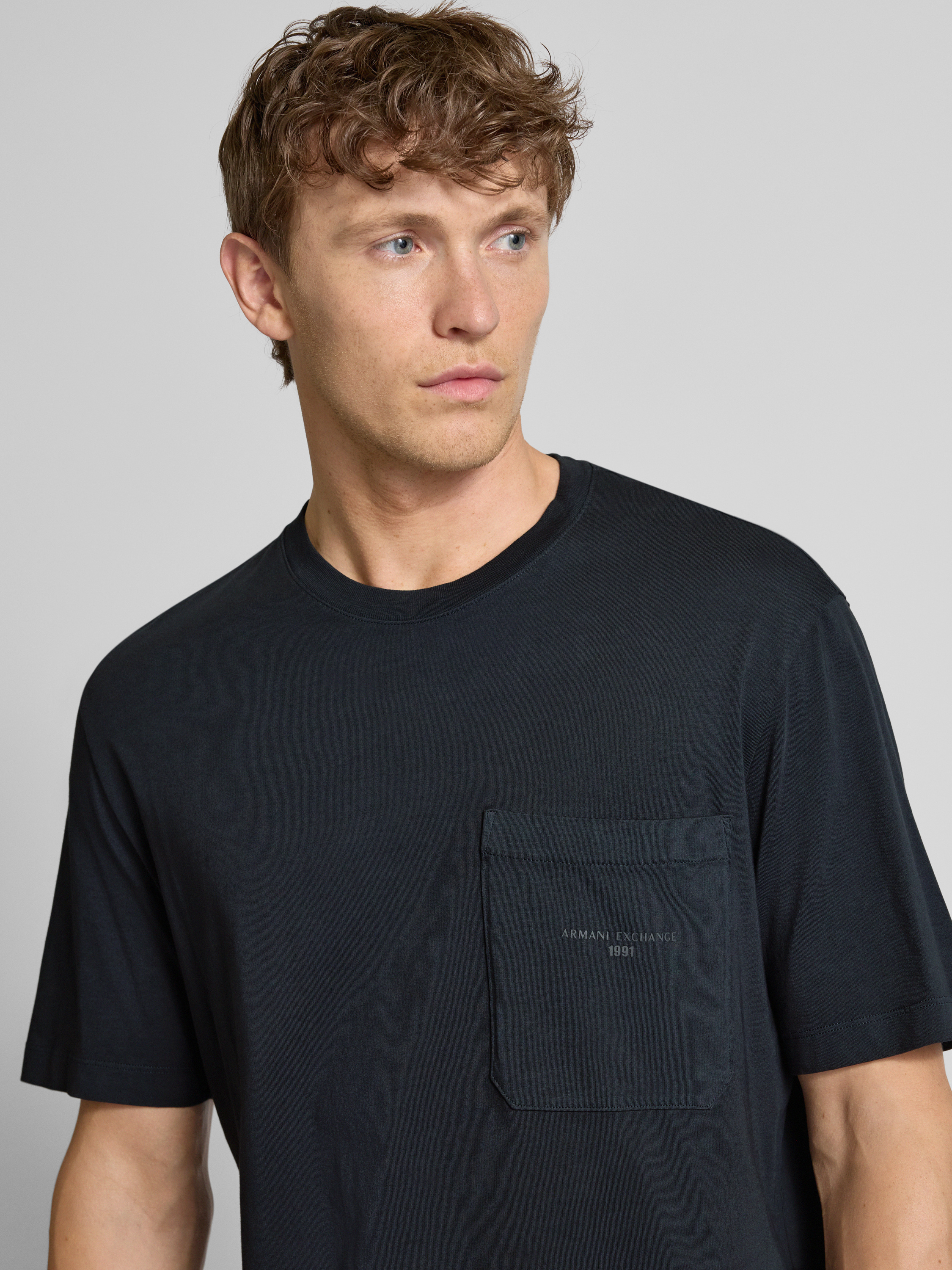 T-shirt o kroju relaxed fit z czystej bawełny z kieszenią na piersi - granatowy