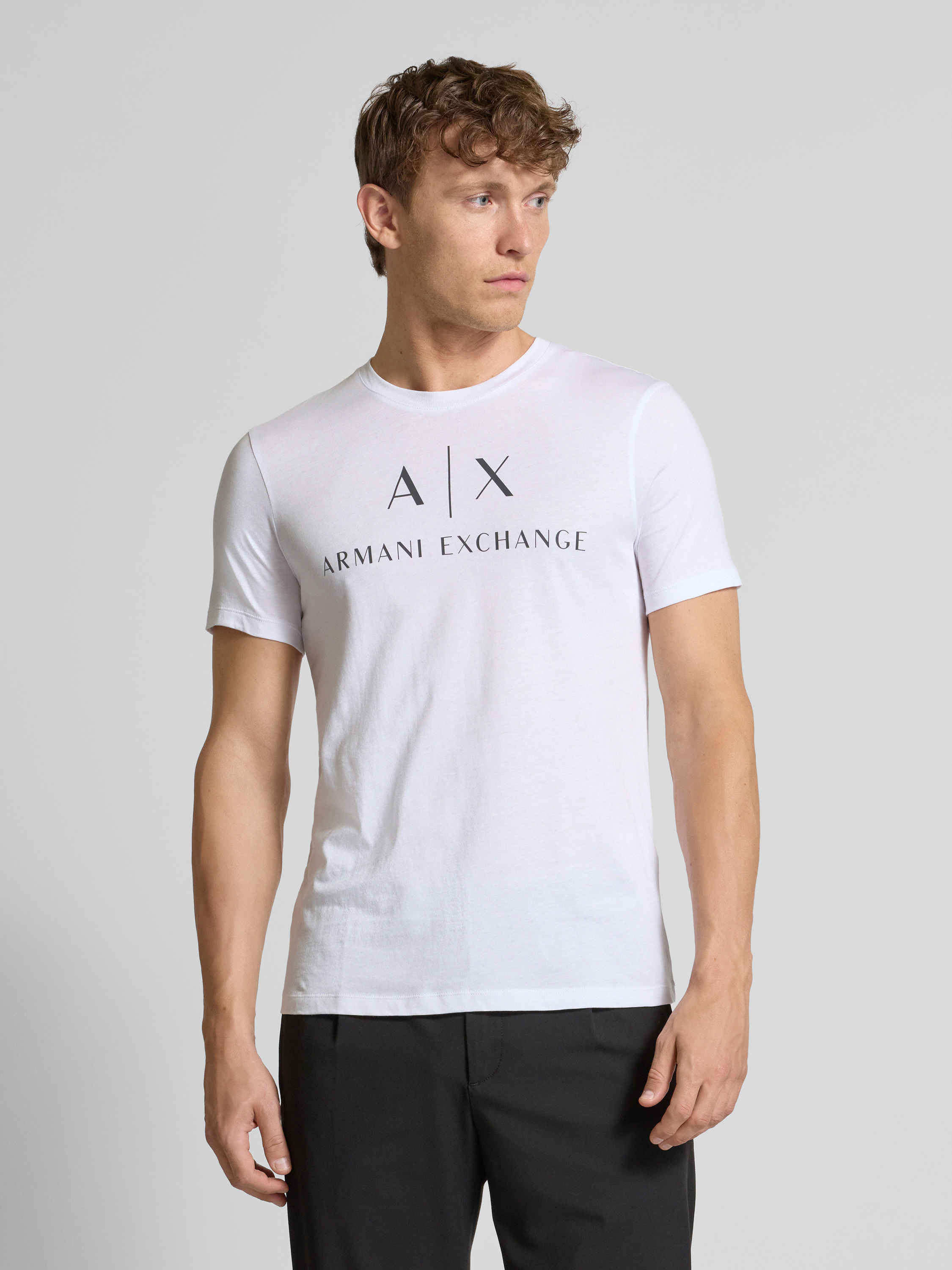 T-shirt o kroju slim fit z czystej bawełny z nadrukiem z logo - biały