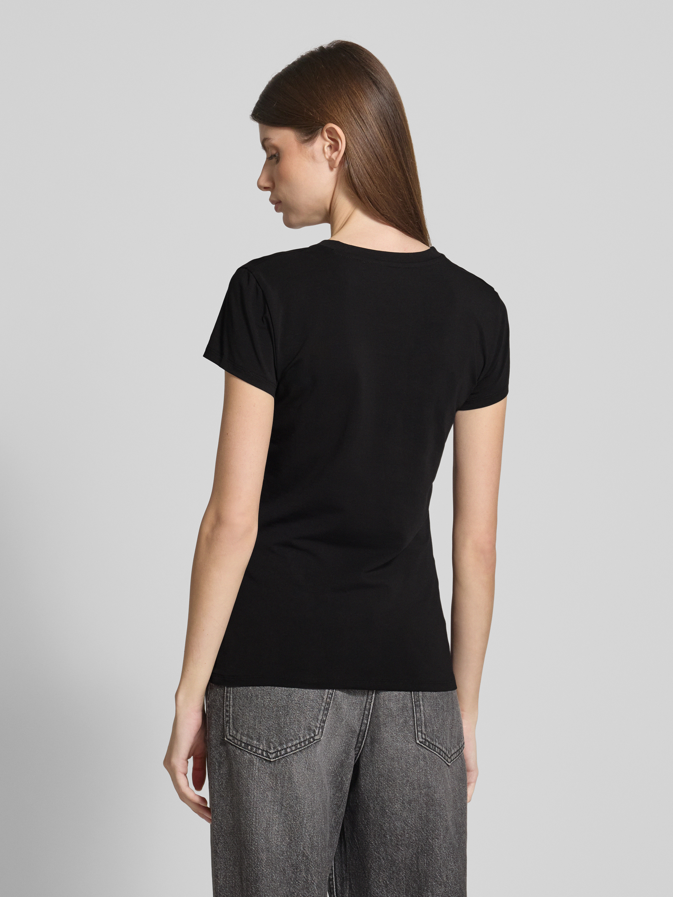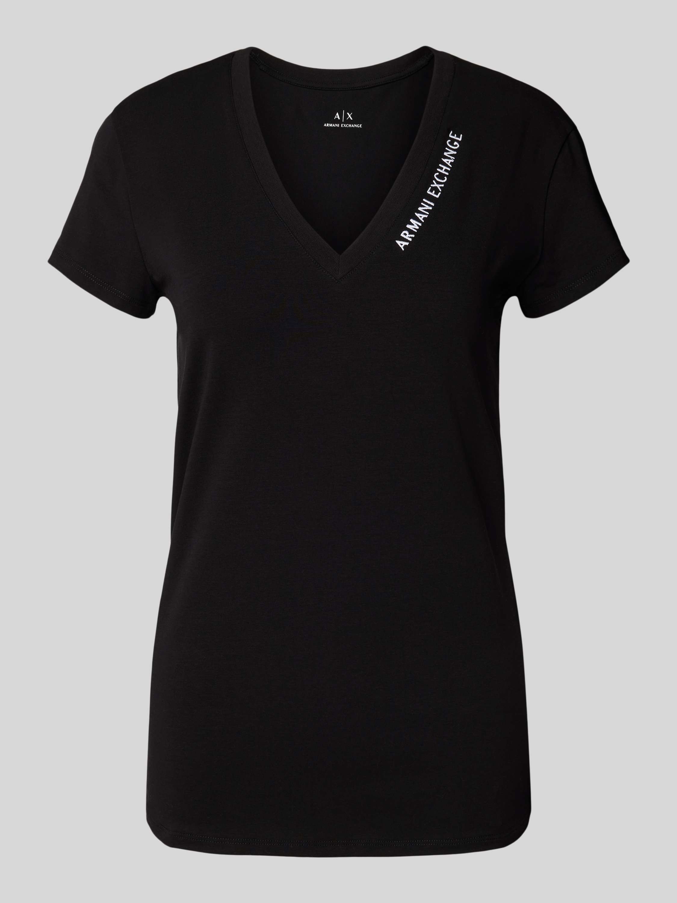 T-shirt z wyhaftowanym logo i dekoltem w serek - czarny