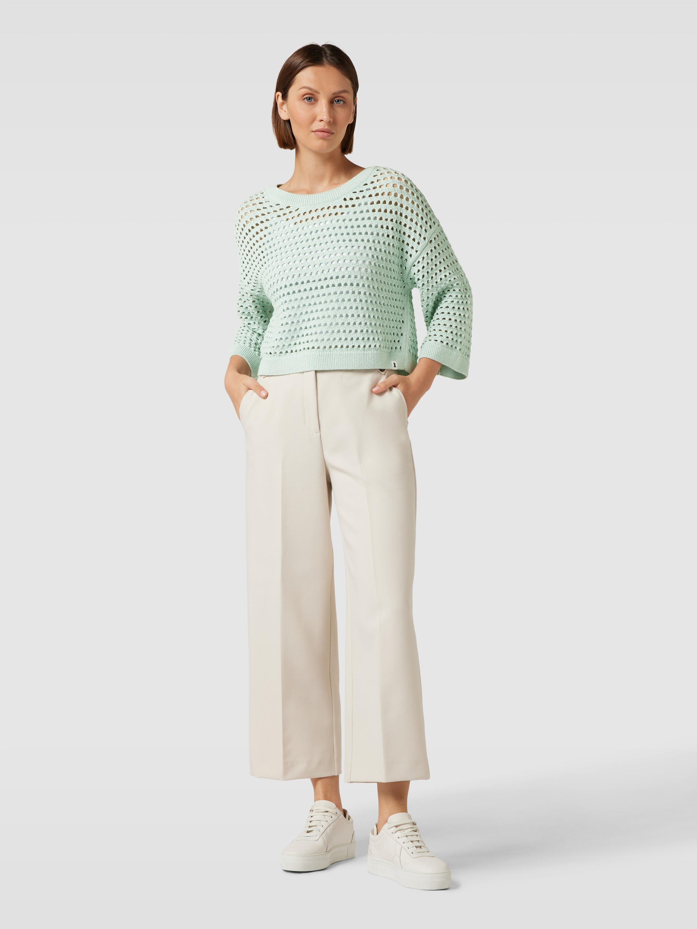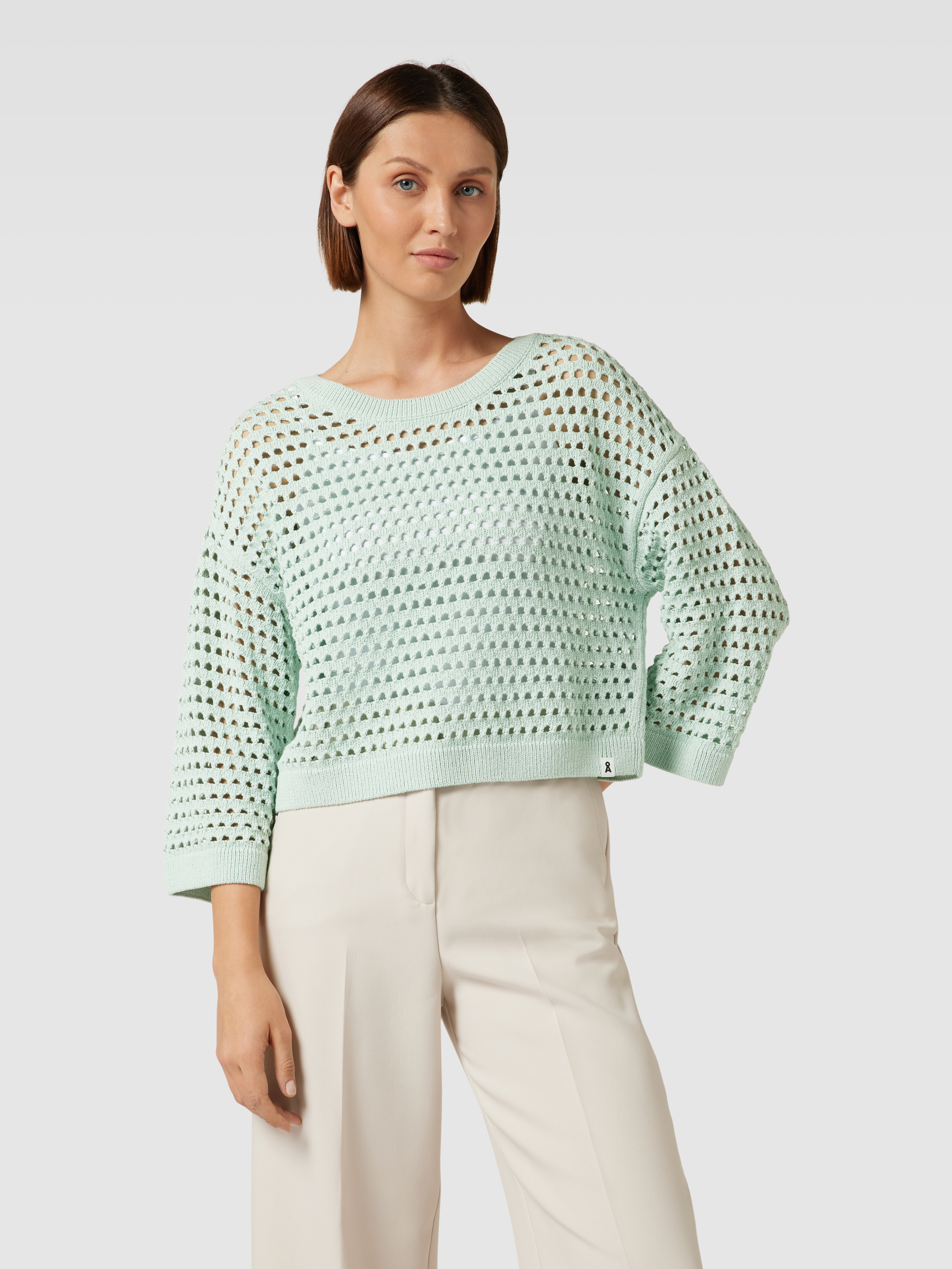 ArmedangelsSweter krótki z dzianiny model ‘MAARISOLS’ - miętowy