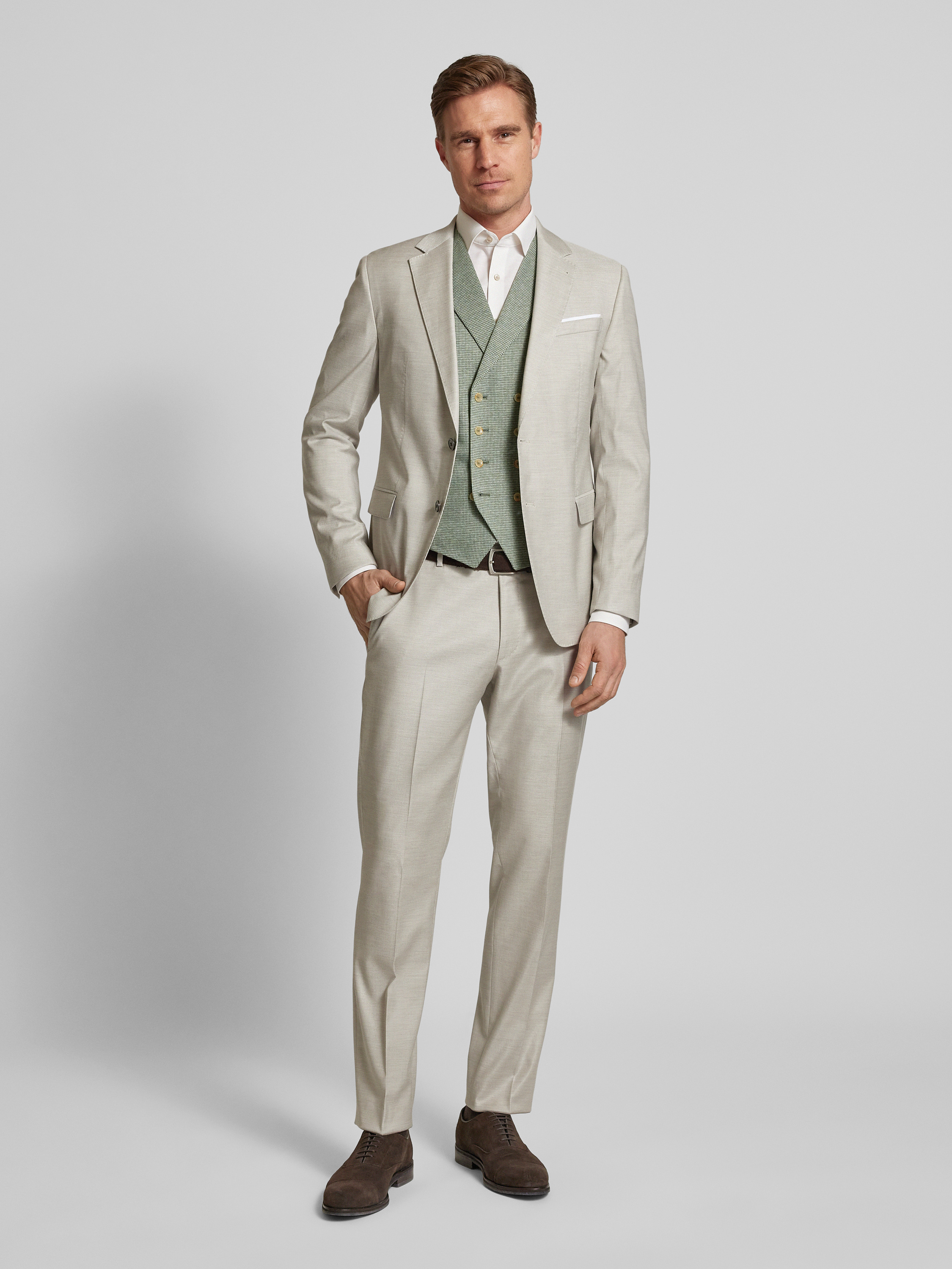 JOOP! CollectionSpodnie materiałowe męskie JOOP! Collection;Mieszanka wełny i wiskozy z dodatkiem streczu;Prosty krój;Model ‘Blayr’;Wpuszczane kieszenie w stylu francuskim;Zapięcie na haftkę i zamek błyskawiczny;Kieszenie z tyłu;Szerokość w pasie w rozmiarze 50: 45 cm;Długość wewnętrzna nogawki w rozmiarze 50: 80 cm
