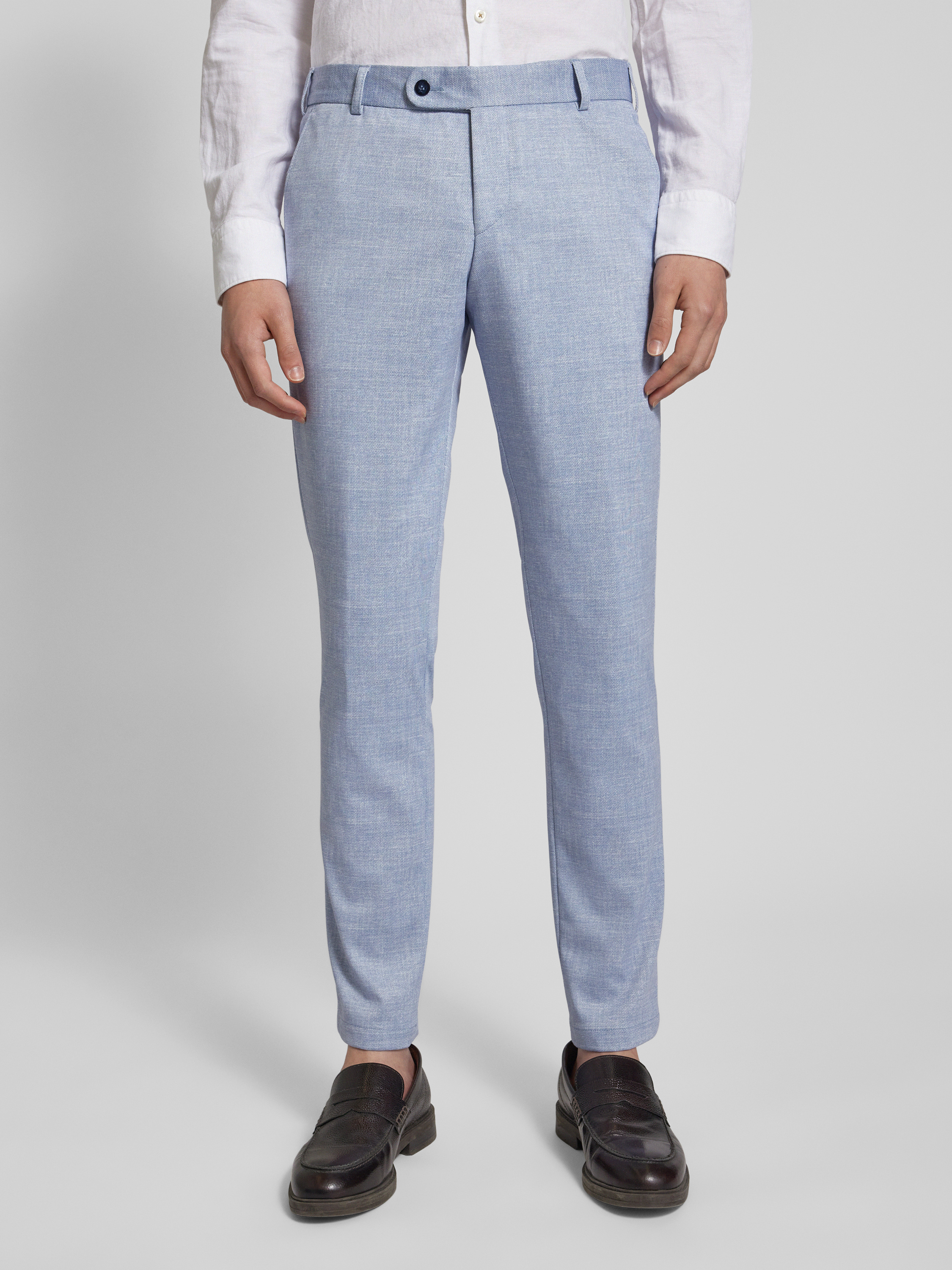 Spodnie materiałowe z fakturowanym wzorem - błękitny